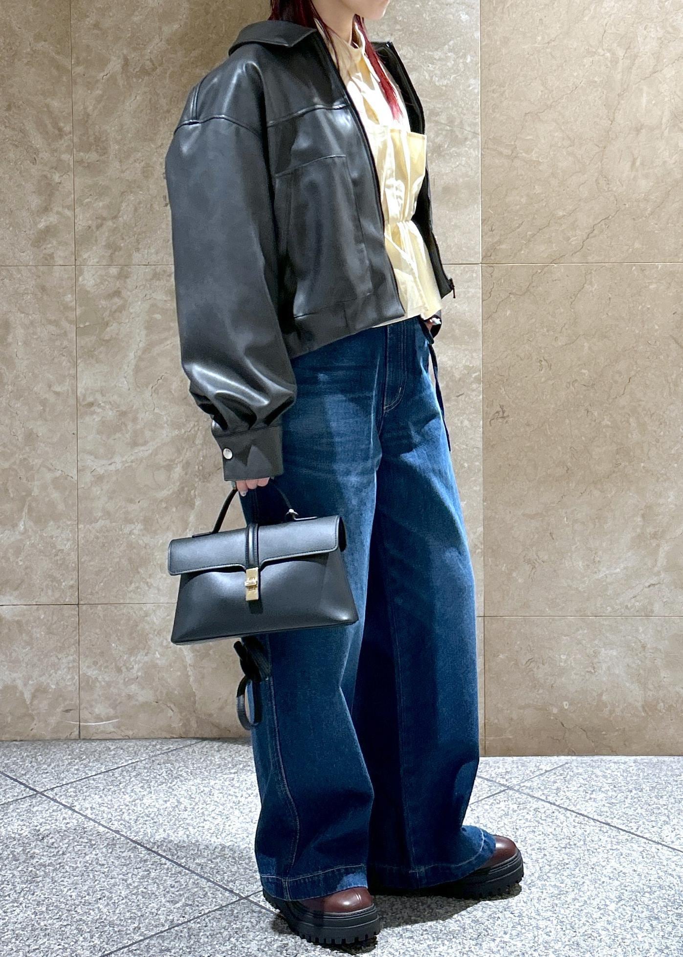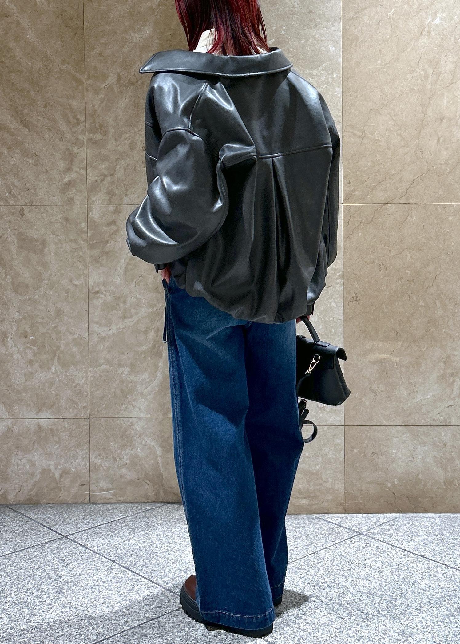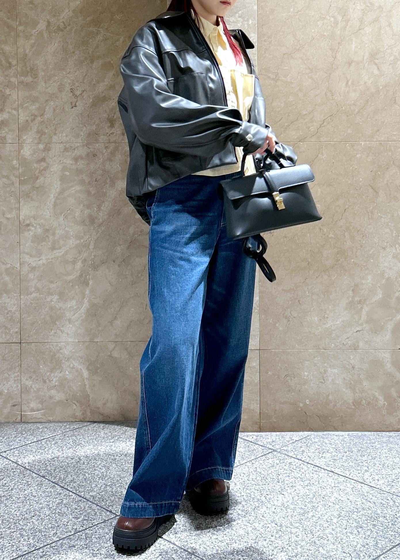 ワイドですがストレートに落ちるシルエットで、カジュアルになりすぎず◎