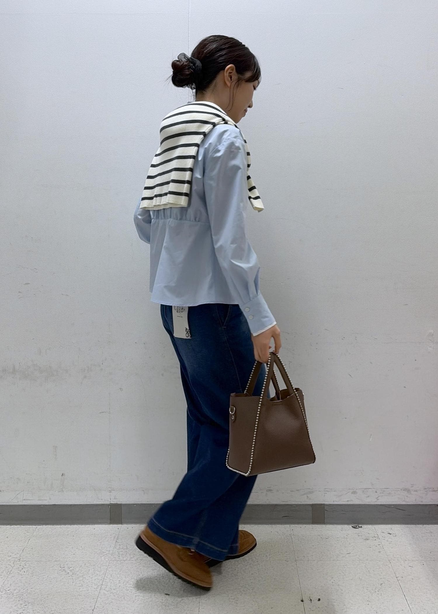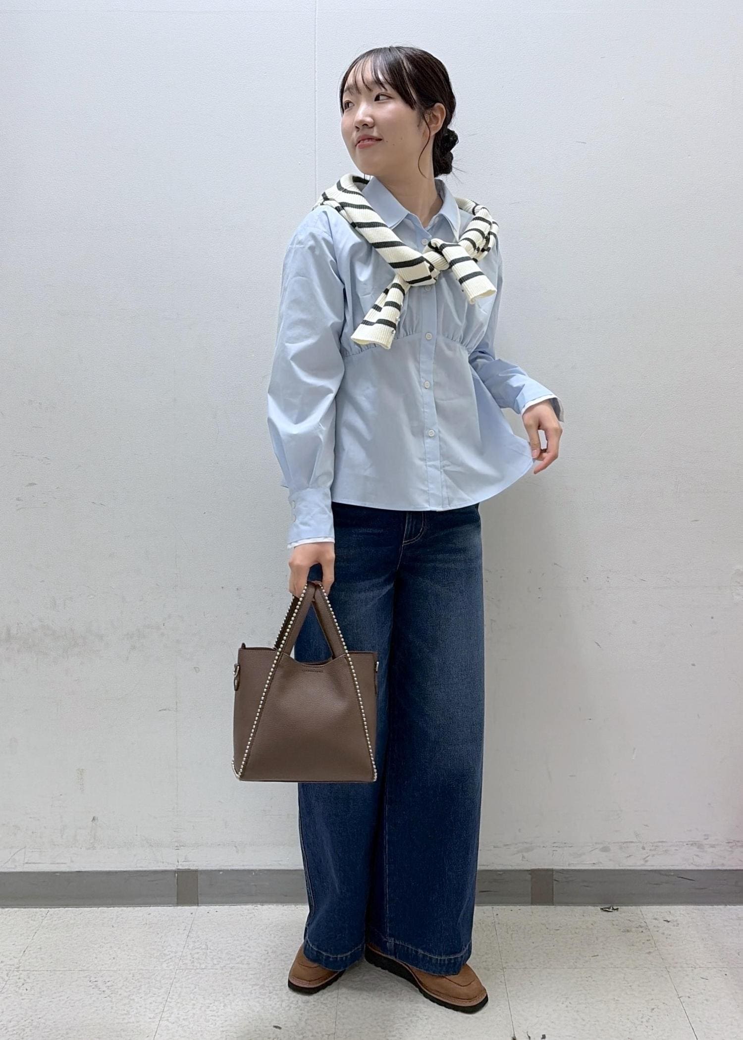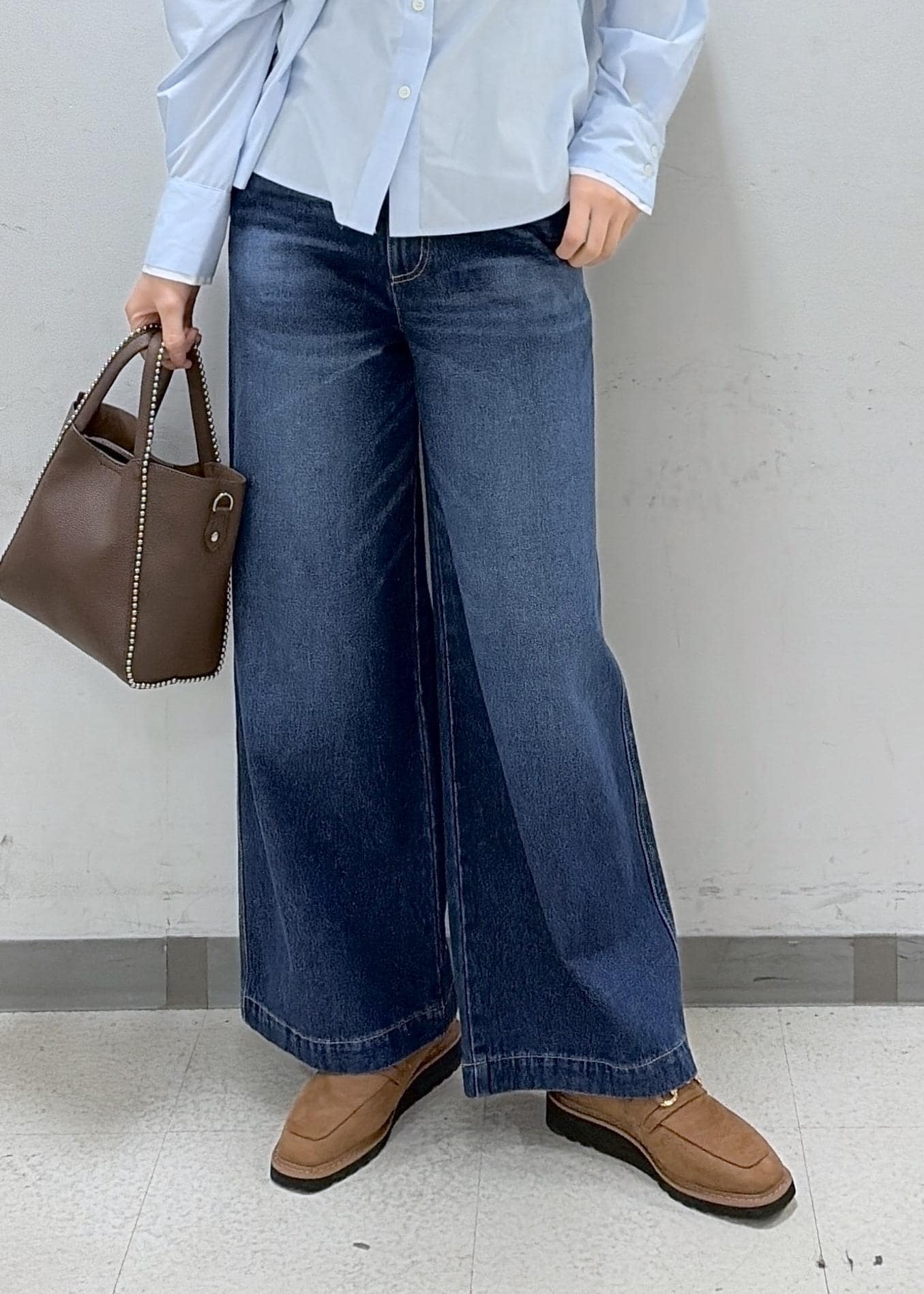 裾が広めのデニムになっていて大きめですがおしゃれなデザインになっています!