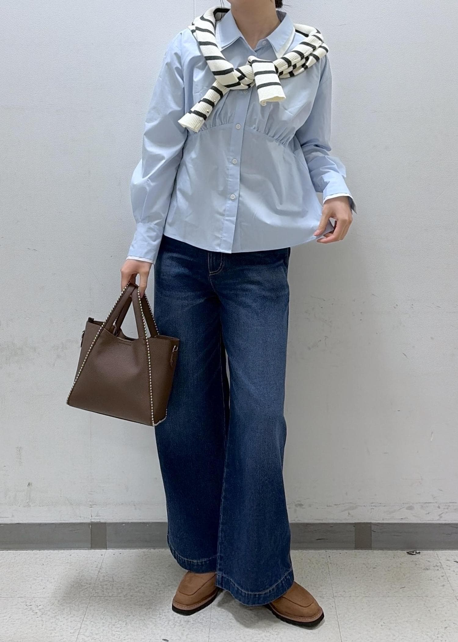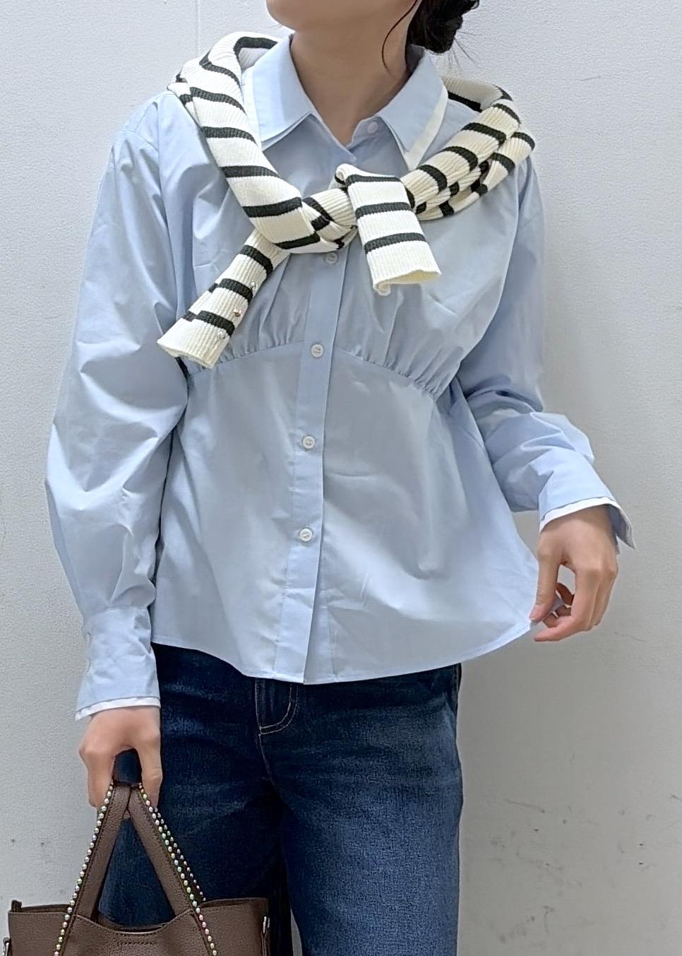 VIS無地&ストライプダブルカラーウエスト切り替えシャツサックス / F¥5,489レビューダブルカラーのウエスト切り替えブラウス。
