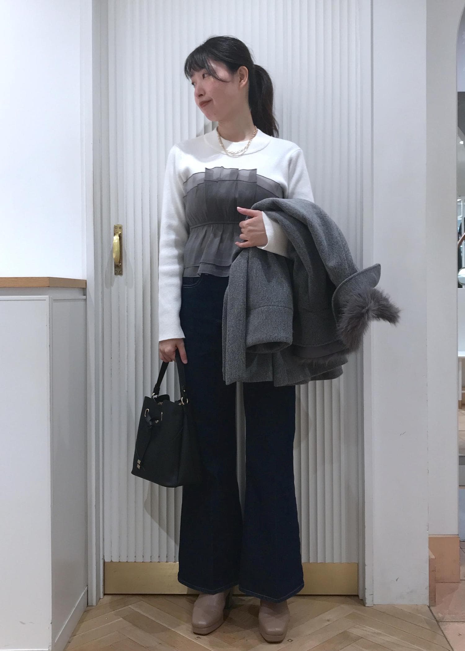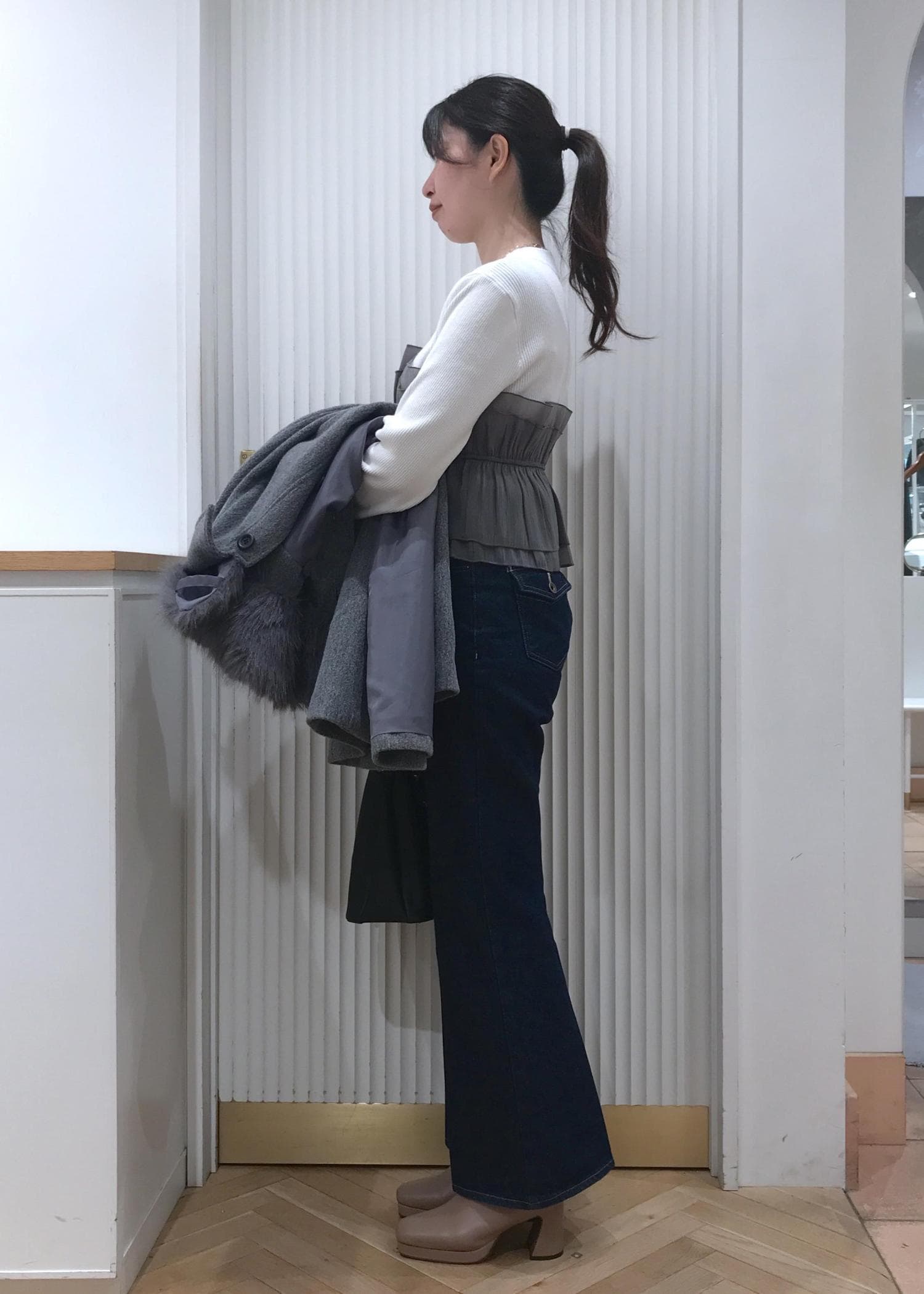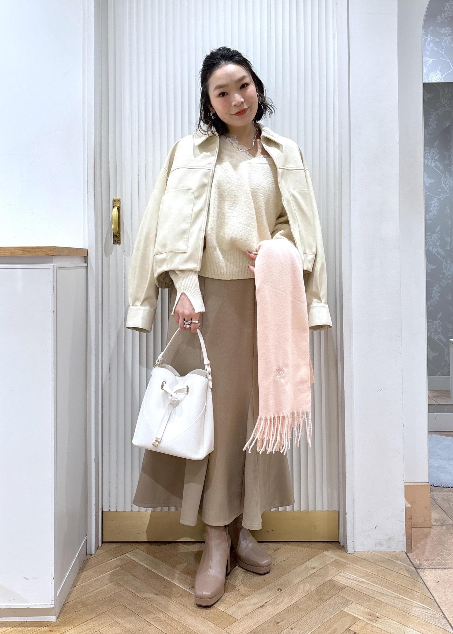 ファー部分は取り外しが出来るので、フェミニンコーデにもカジュアルコーデにもオンオフ両方共に着回しが出来るのでおすすめですよ。