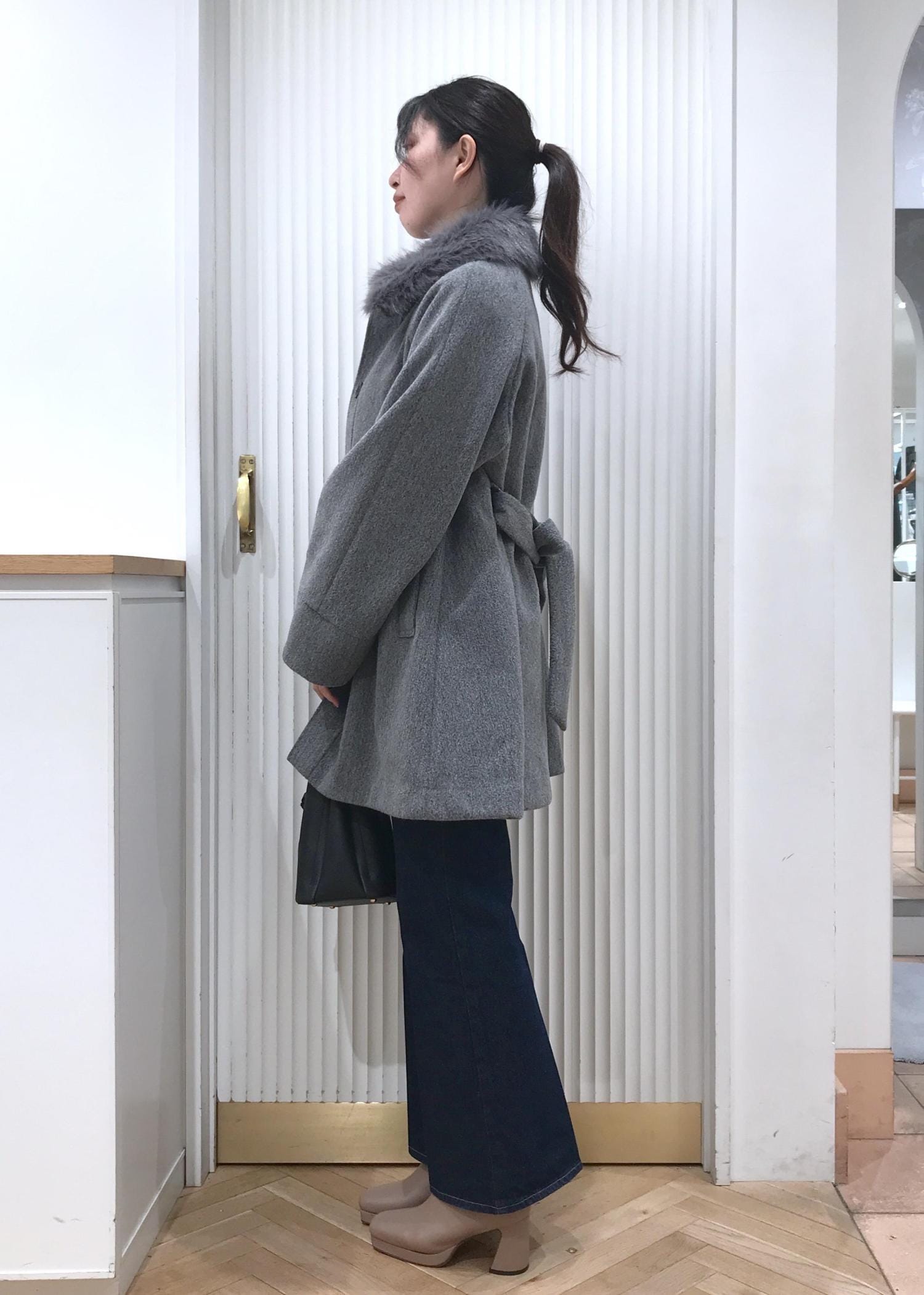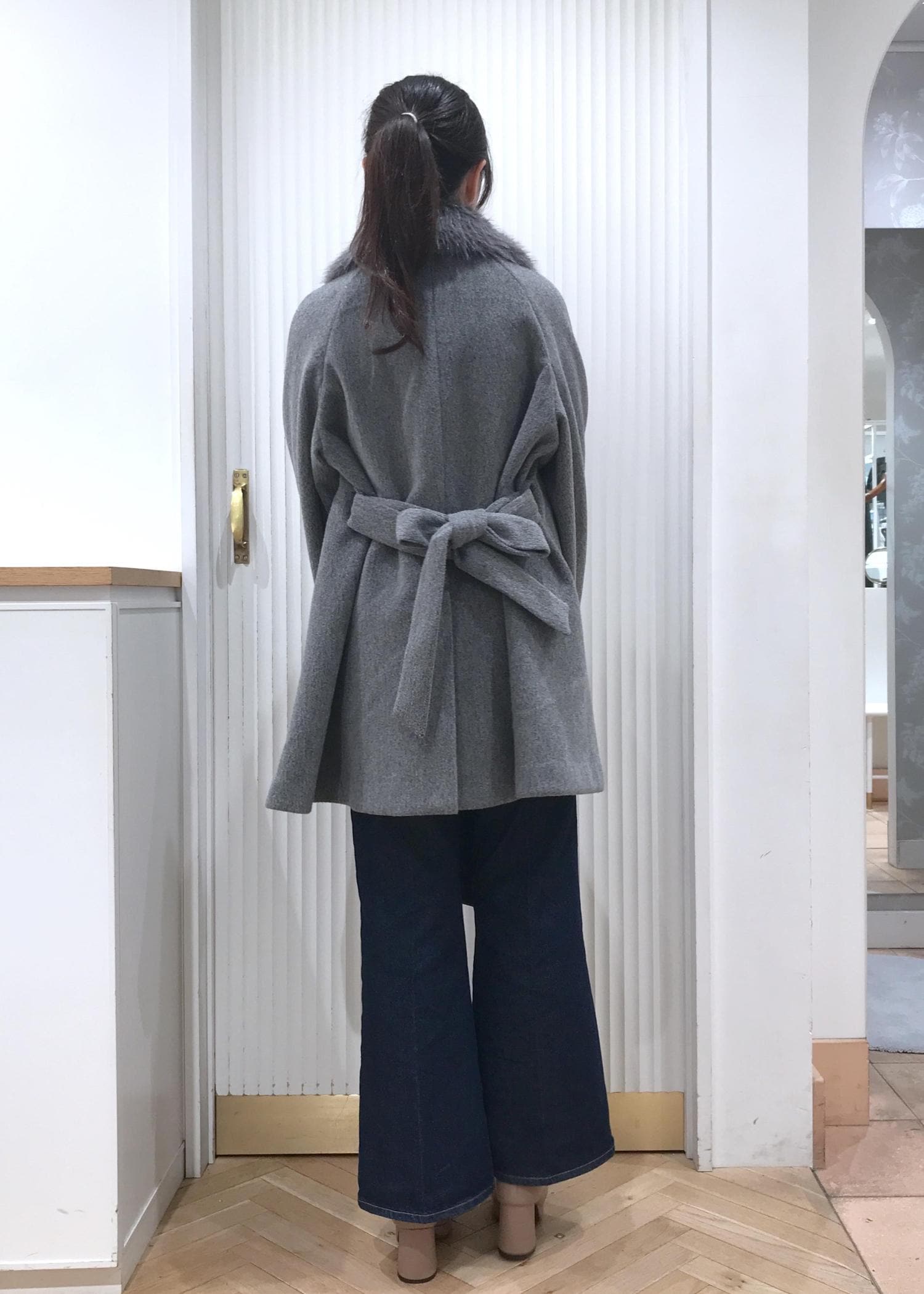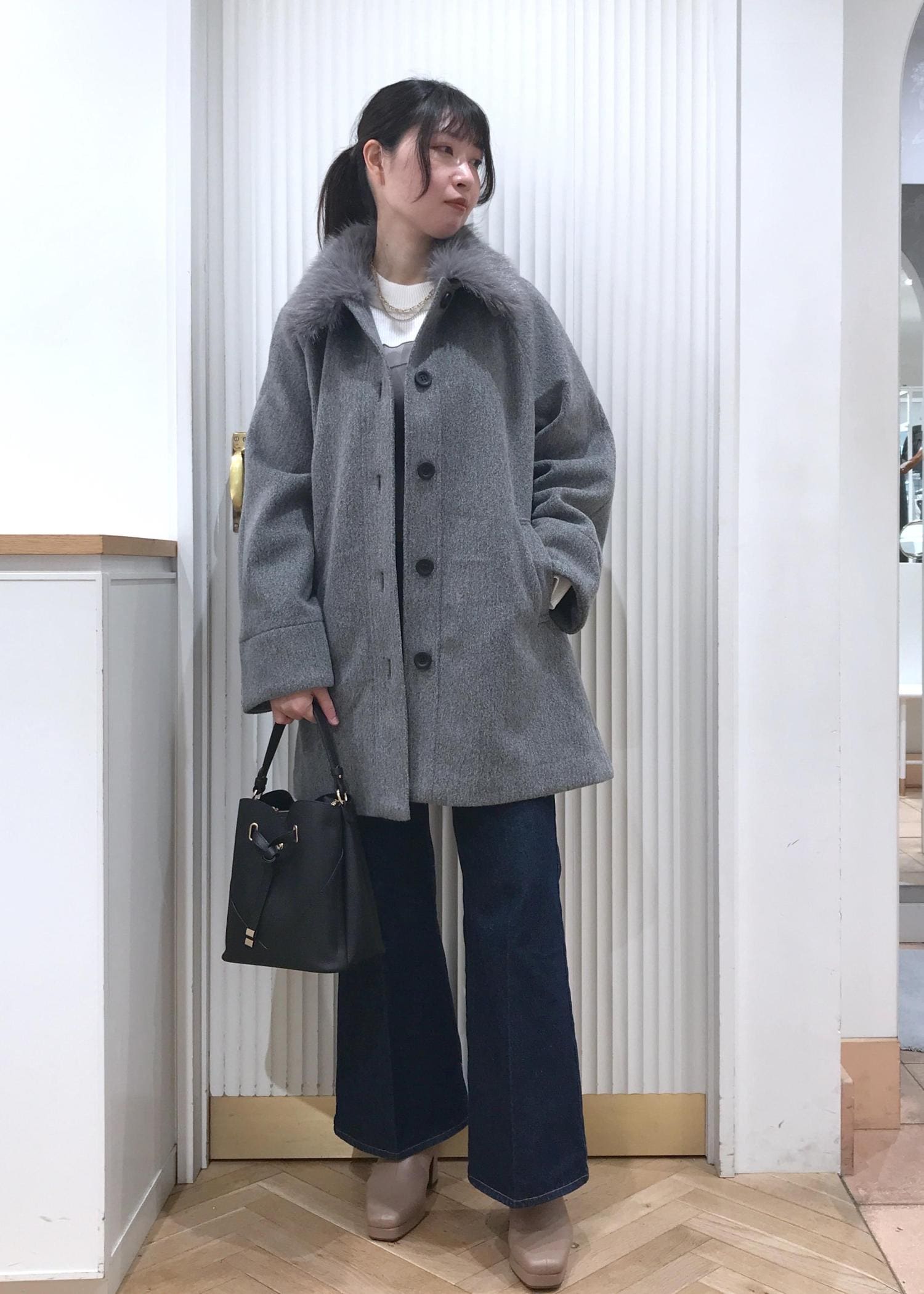 襟部分のファーは取り外しが出来るので、コーデによって着回しが効くコートです。 -