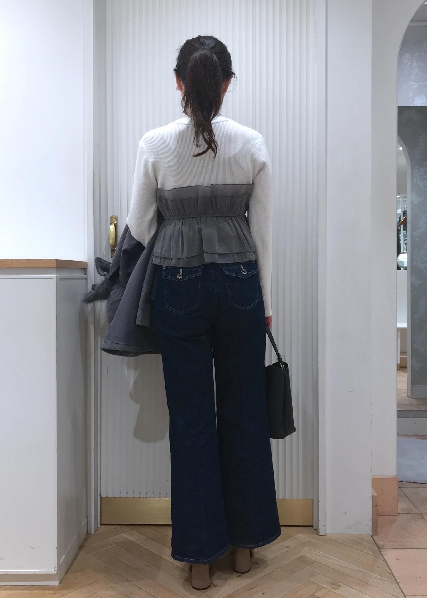 身幅や腕周りはゆったりしているので、厚手のニット等を着ても嵩張りにくく、腰にリボンも付いているのでスッキリシルエットで着用出来ます。