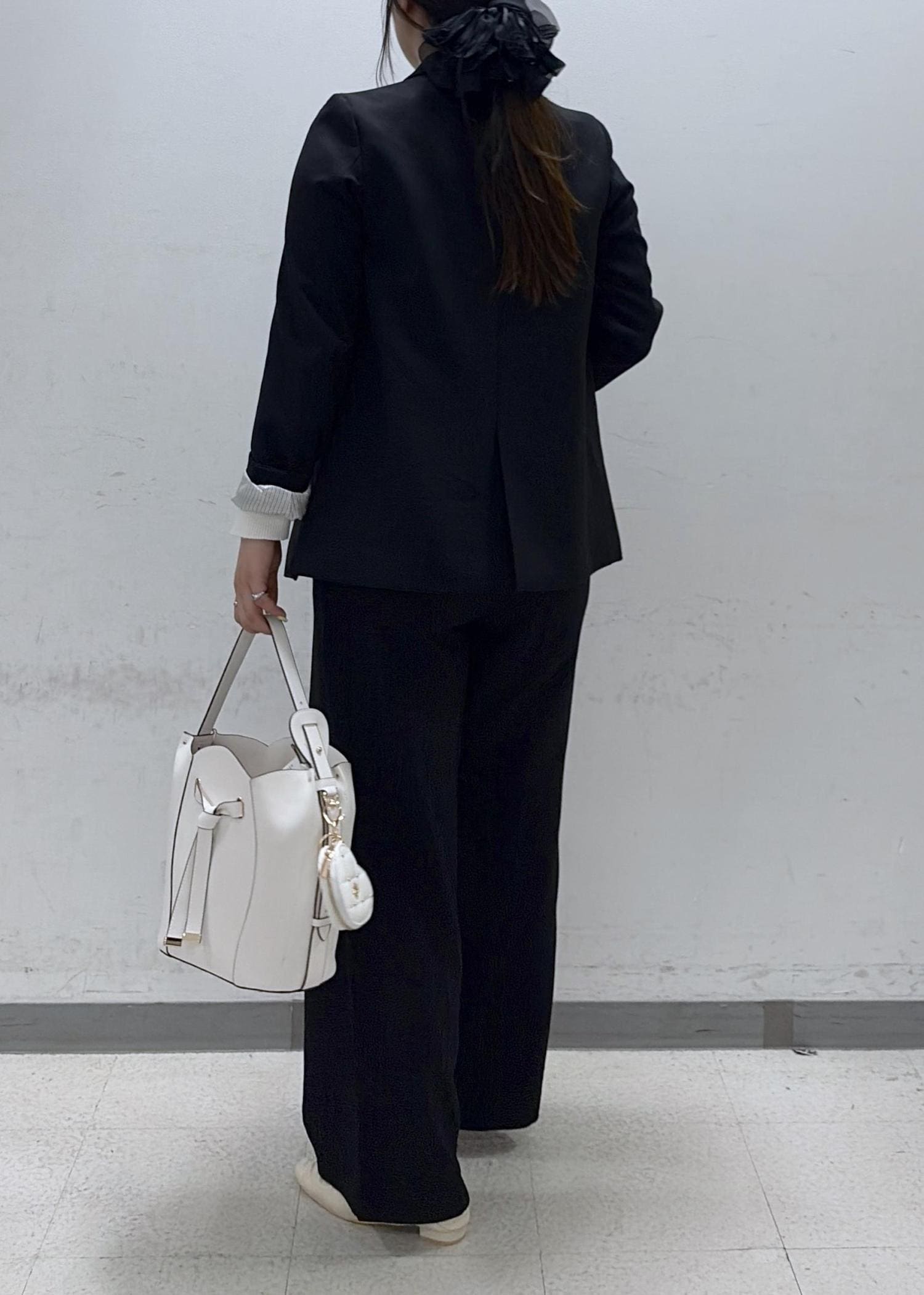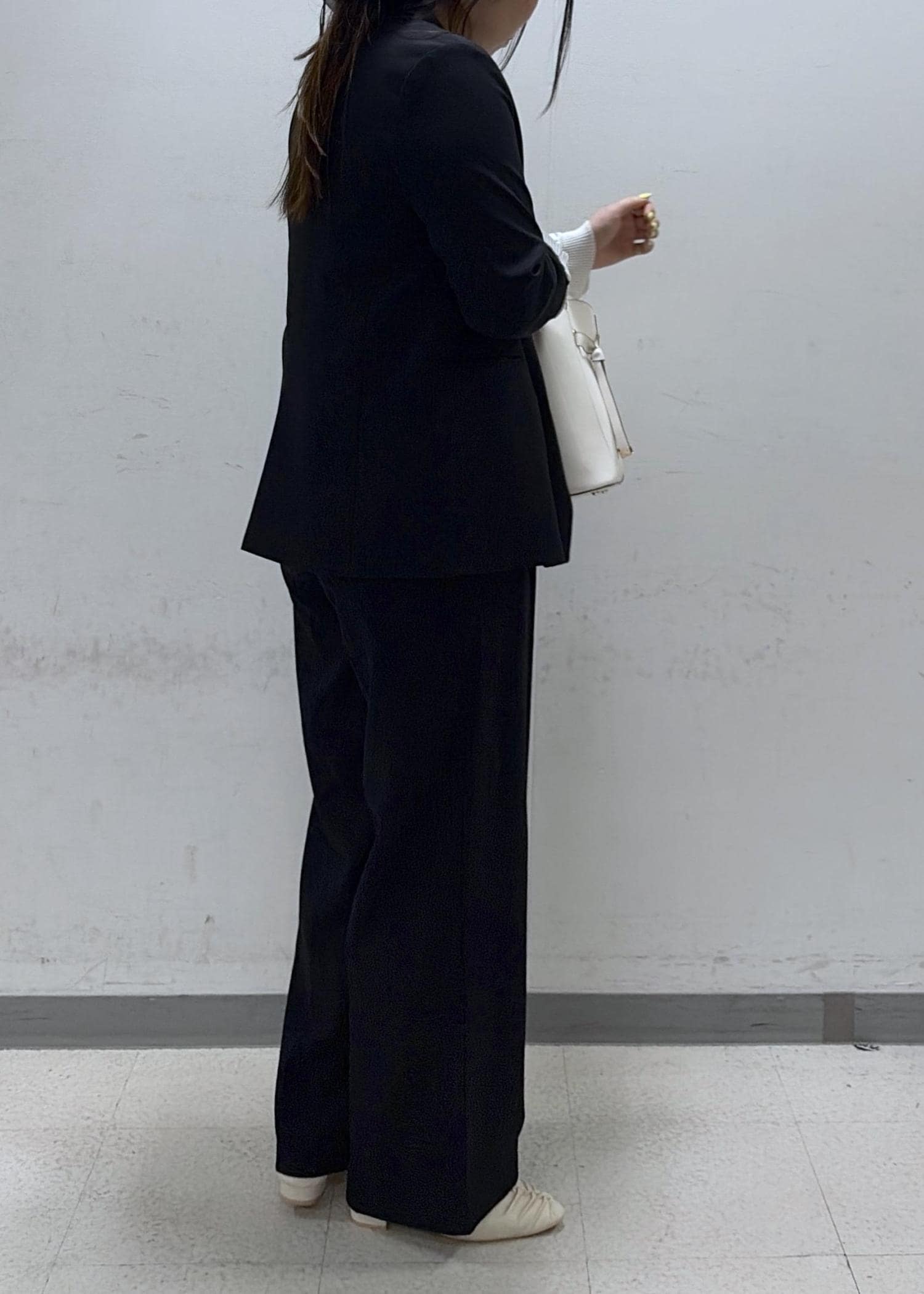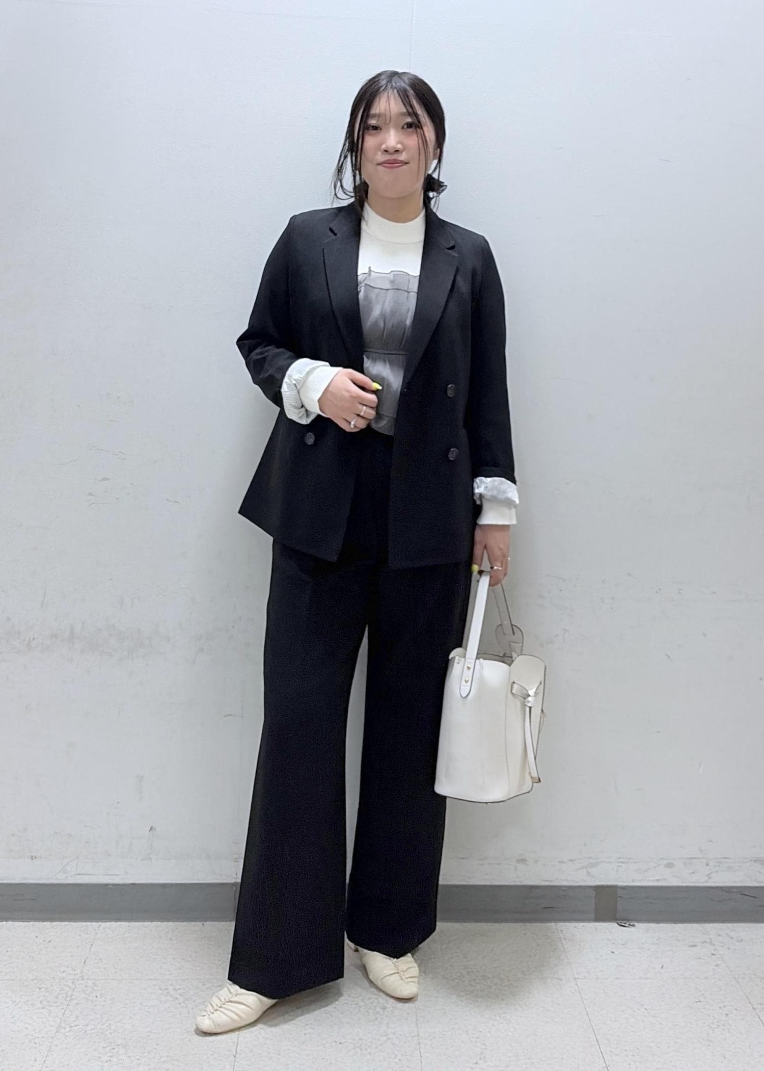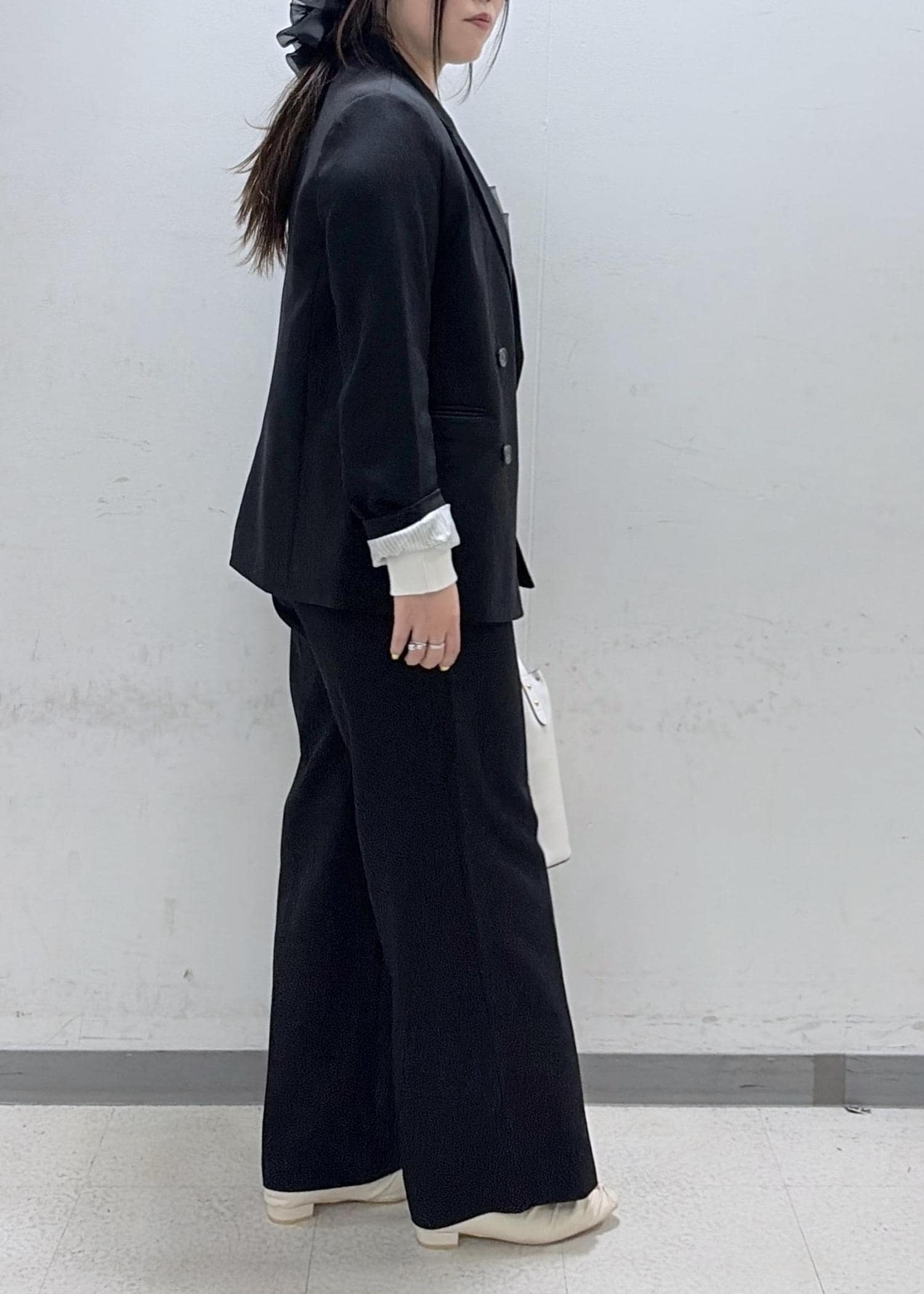 きちんとしたシーンでも着やすいセットアップスタイルです。