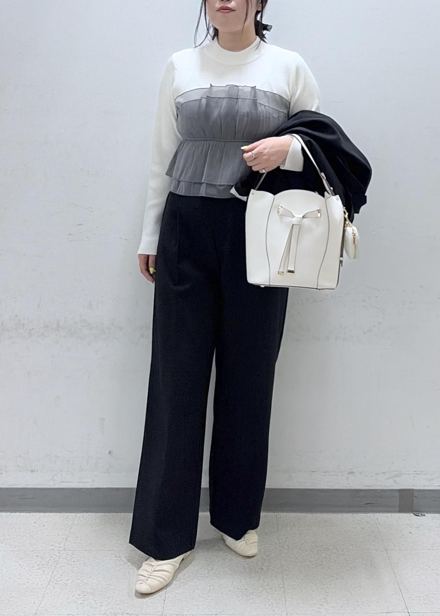 ウエストがマークされるデザインなので、オーバーなアウターを合わせても腰位置を高く見せやすいです。 -
