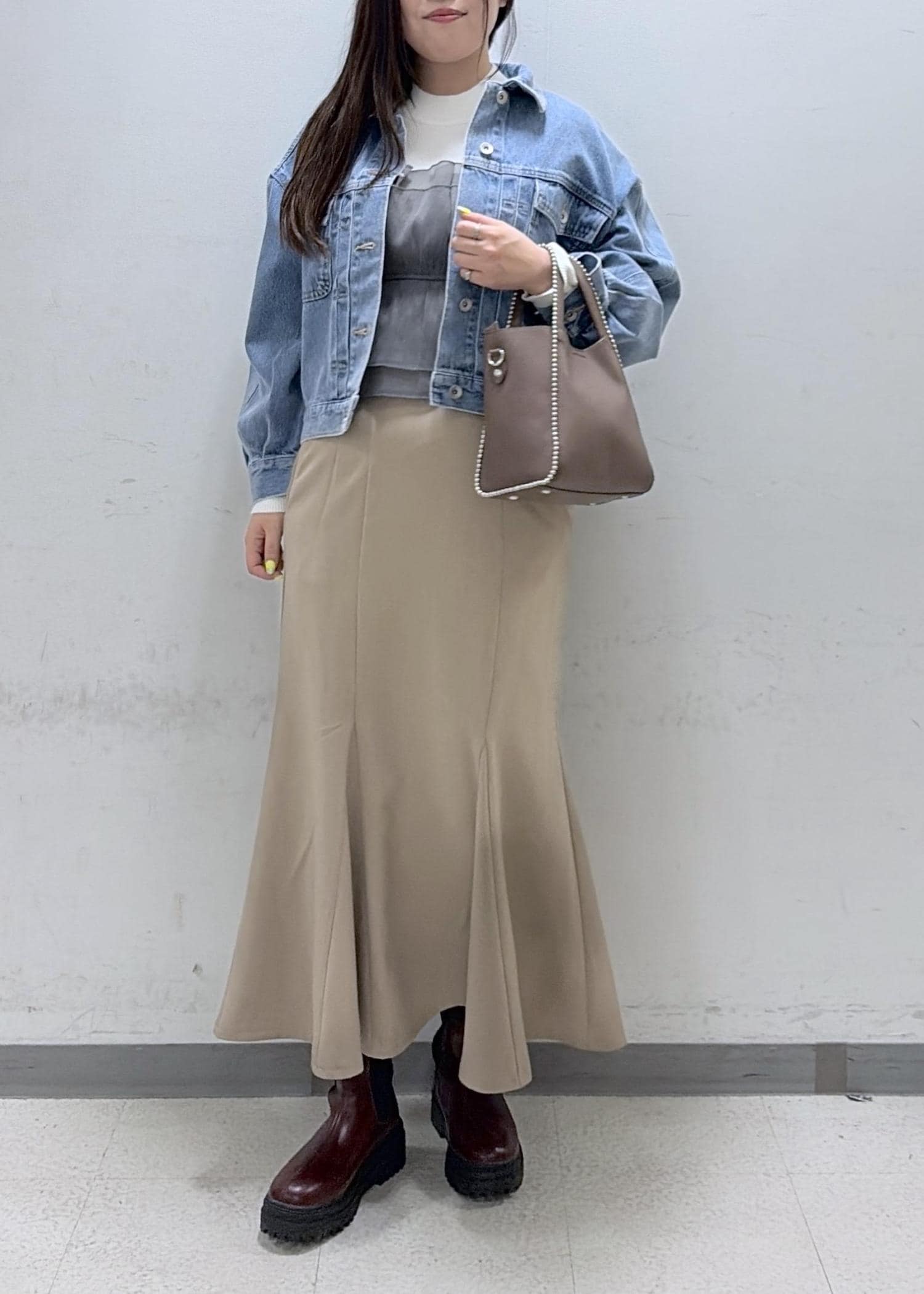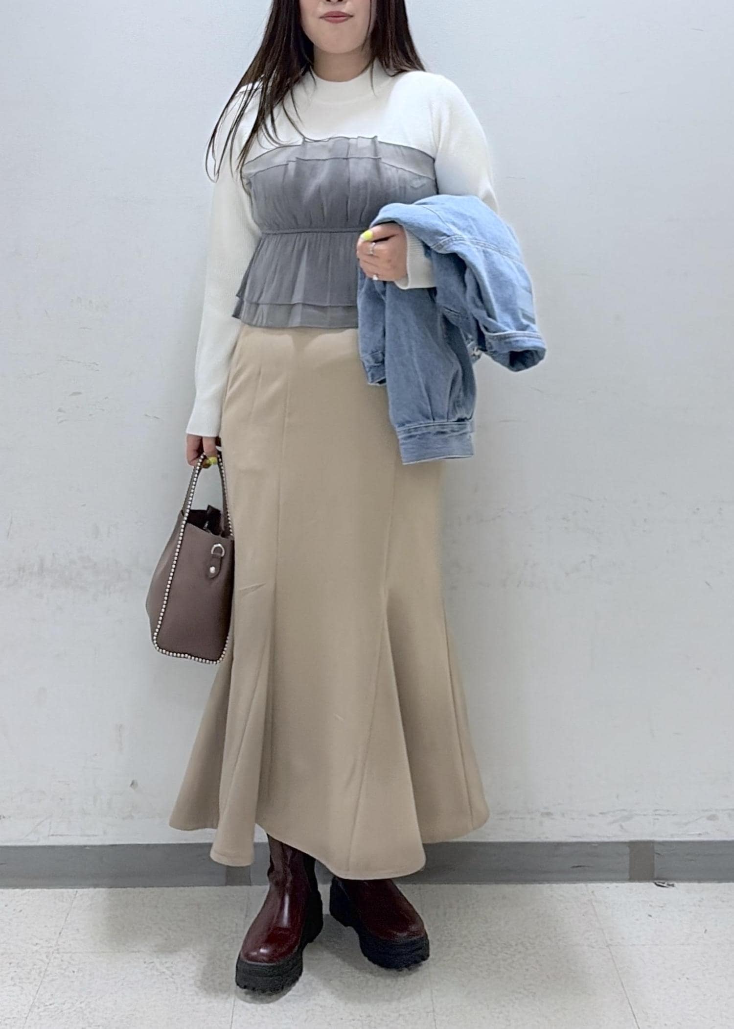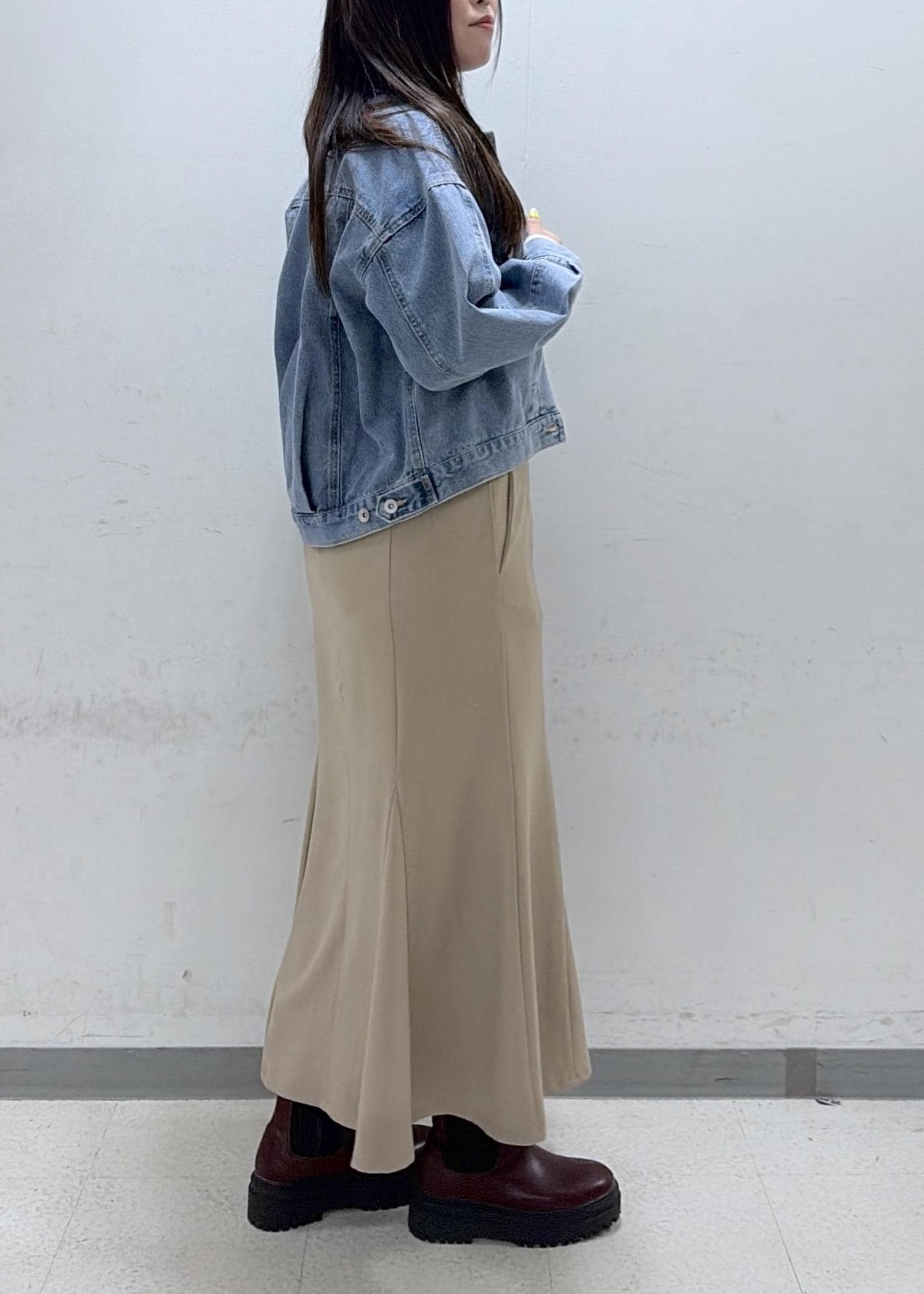 ウエストがマークされるデザインなので、オーバーなアウターを合わせても腰位置を高く見せやすいです。 -