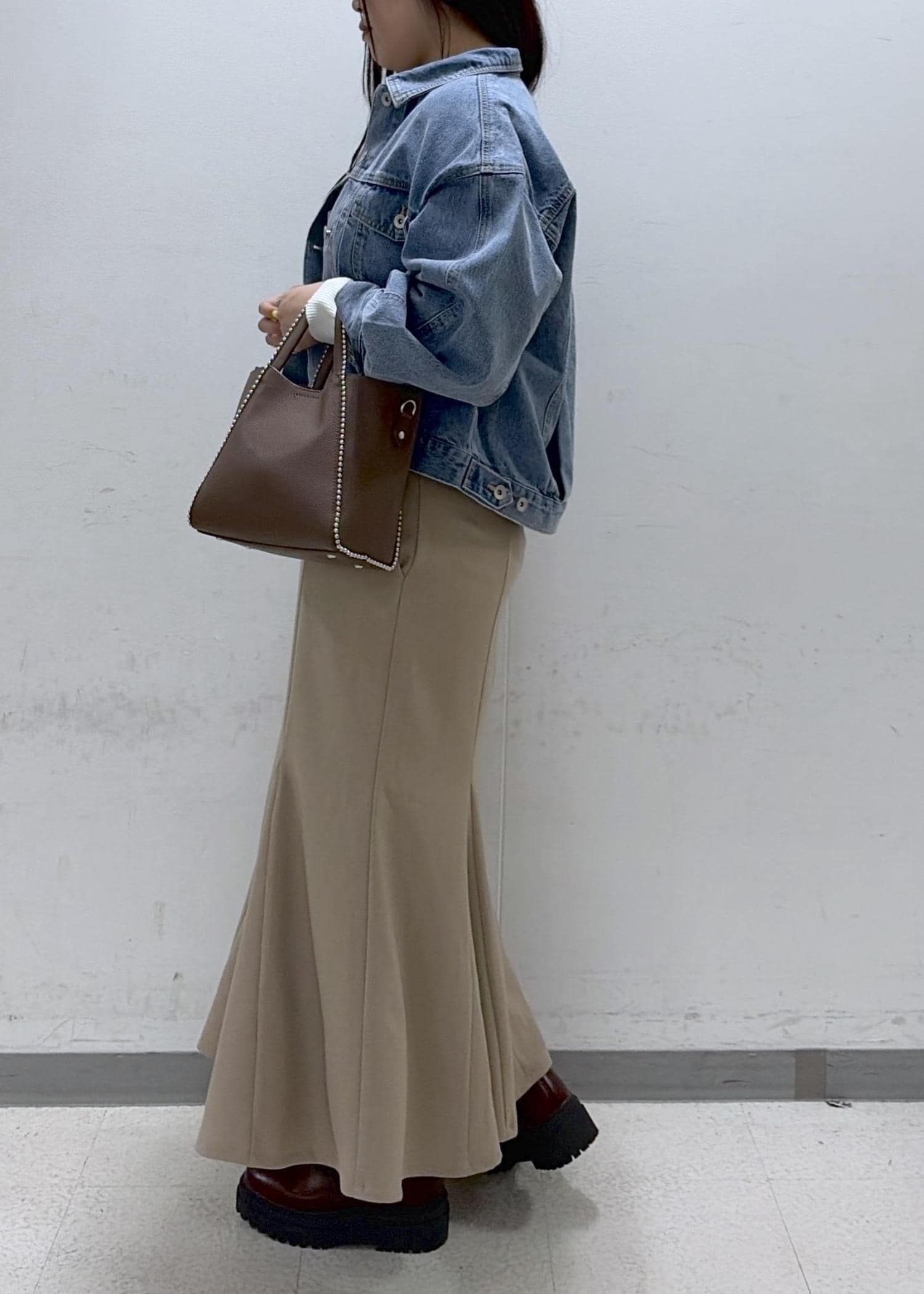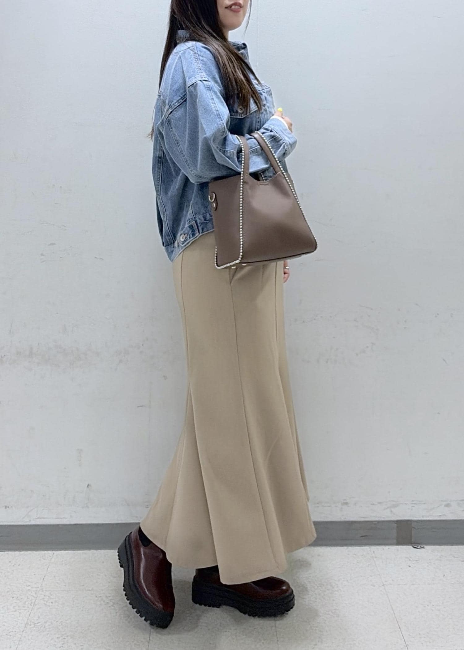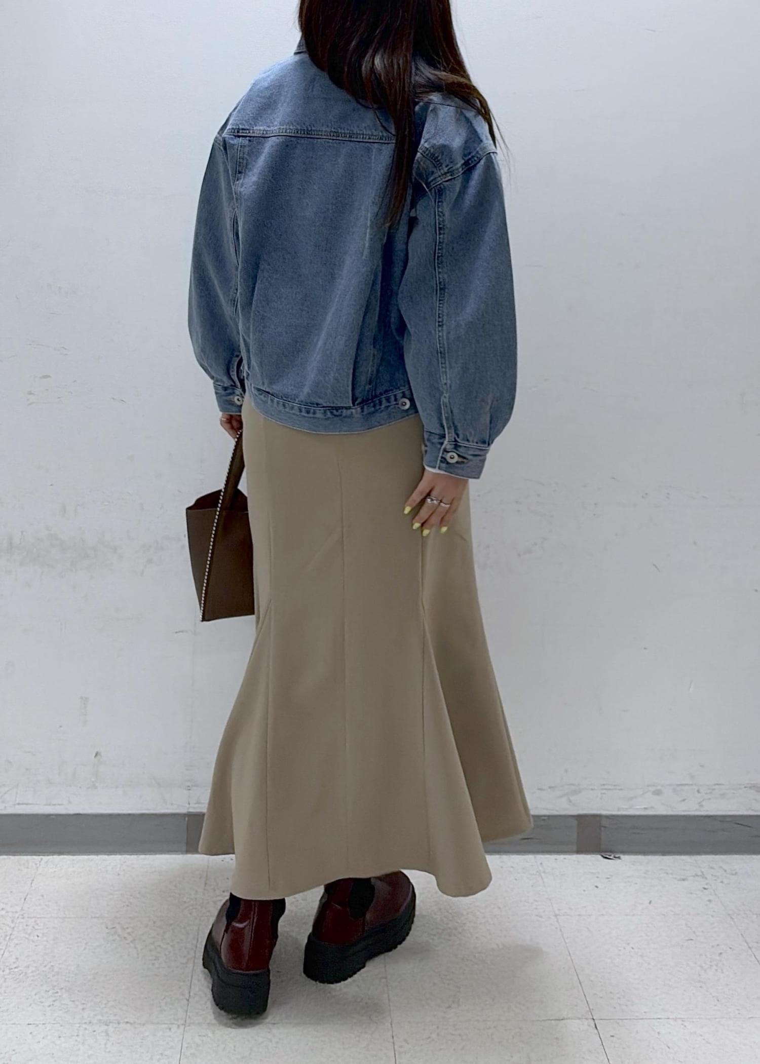 ウエストがマークされるデザインなので、オーバーなアウターを合わせても腰位置を高く見せやすいです。 -
