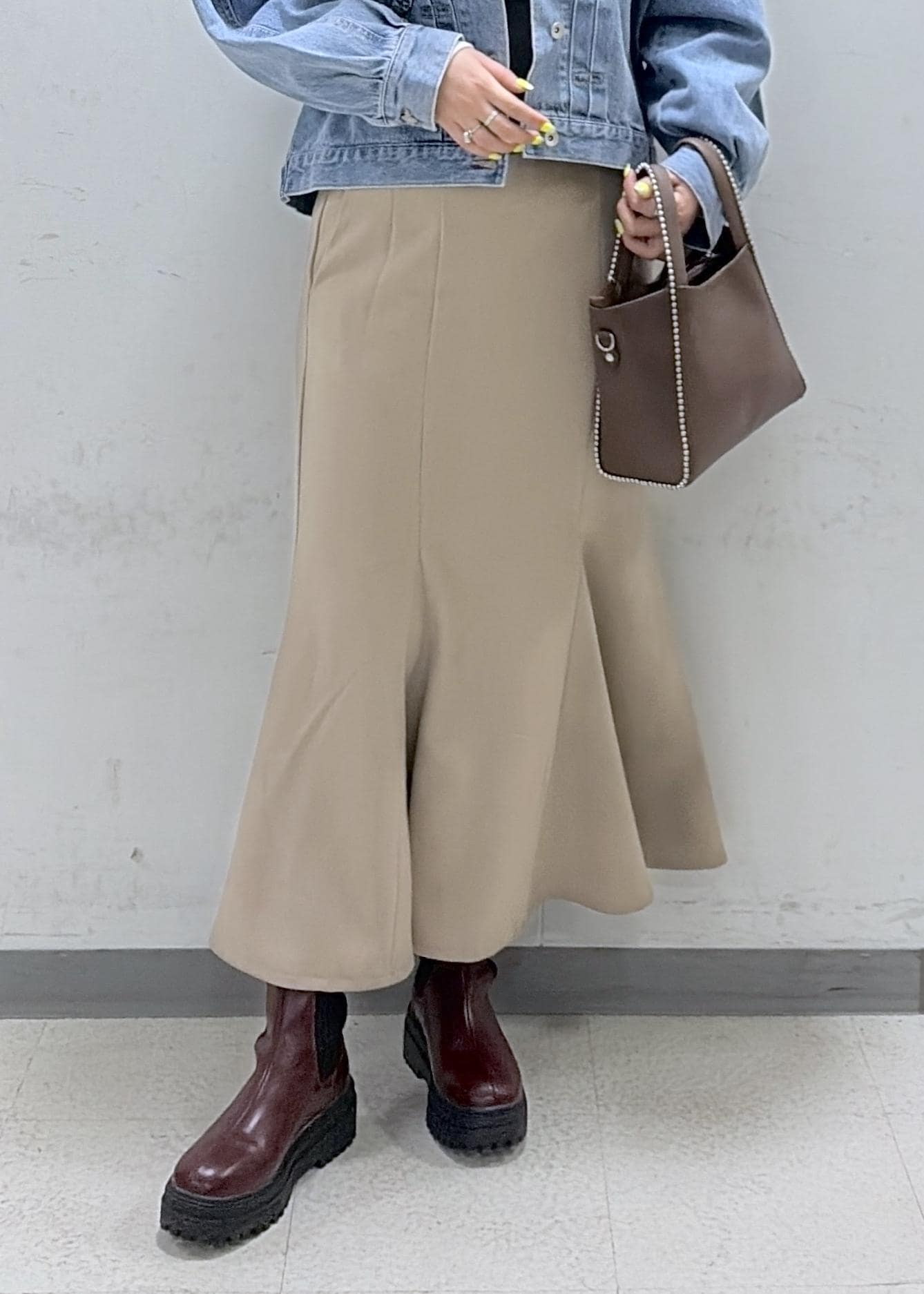 VIS【期間限定価格】美easyウーリッシュマーメイドスカート/セットアップ対応・イージーケアベージュ / L¥5,930レビュー柔らかめな生地で、女性らしいラインを出しやすいです。
