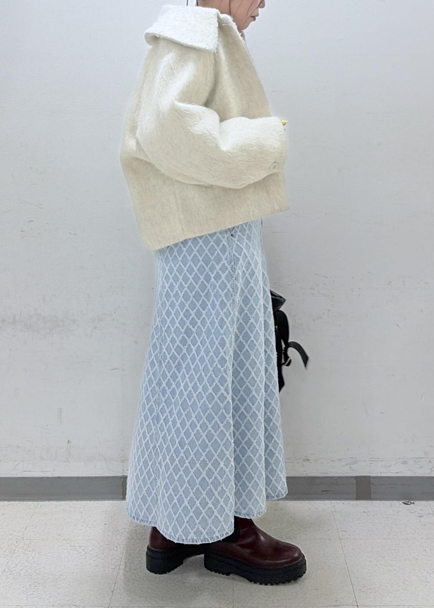 まだまだ寒い季節ですが、少し春を意識して淡目なデニムスカートを合わせました♪