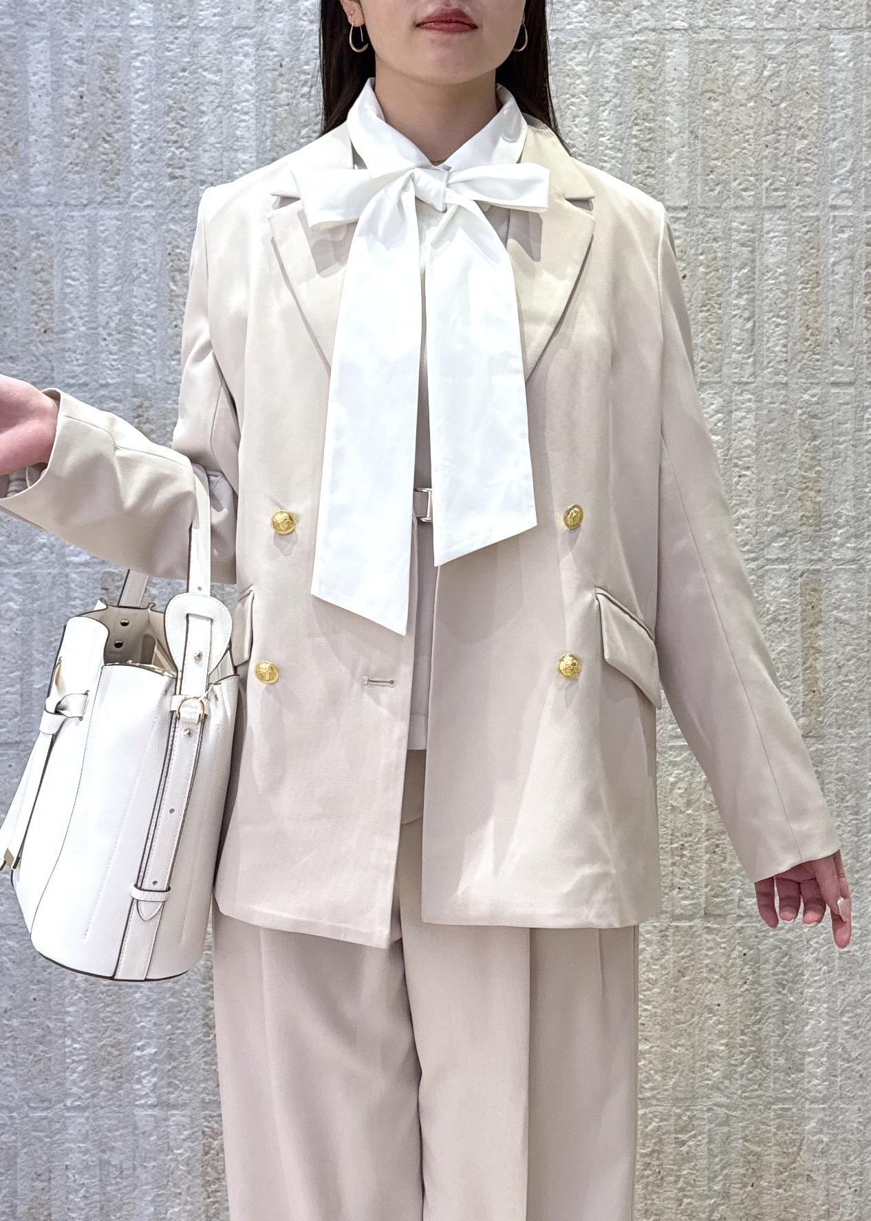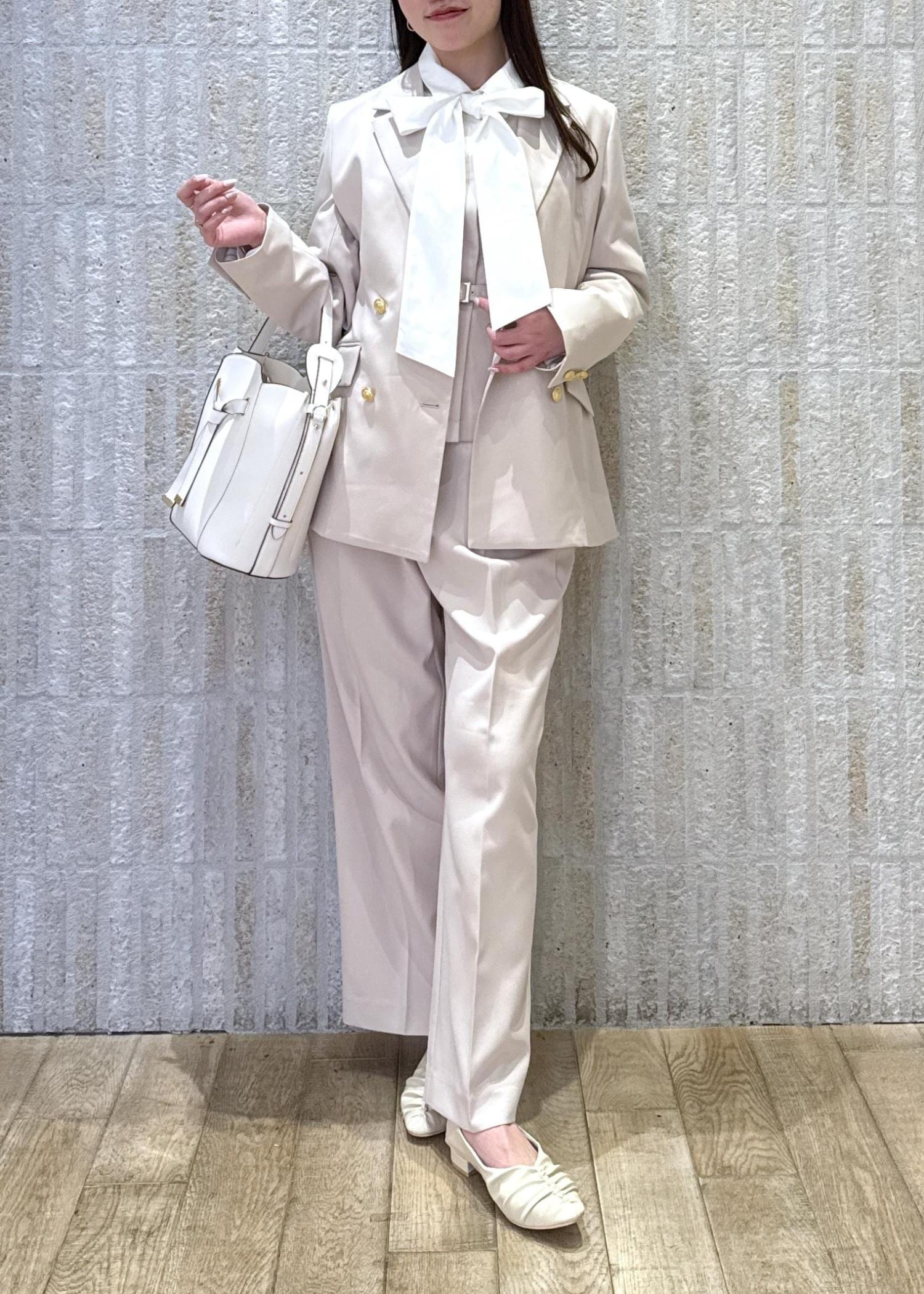 3セットアップで、キレイめだけど華やかに女性らしいベージュのワントーンコーデにしました◎