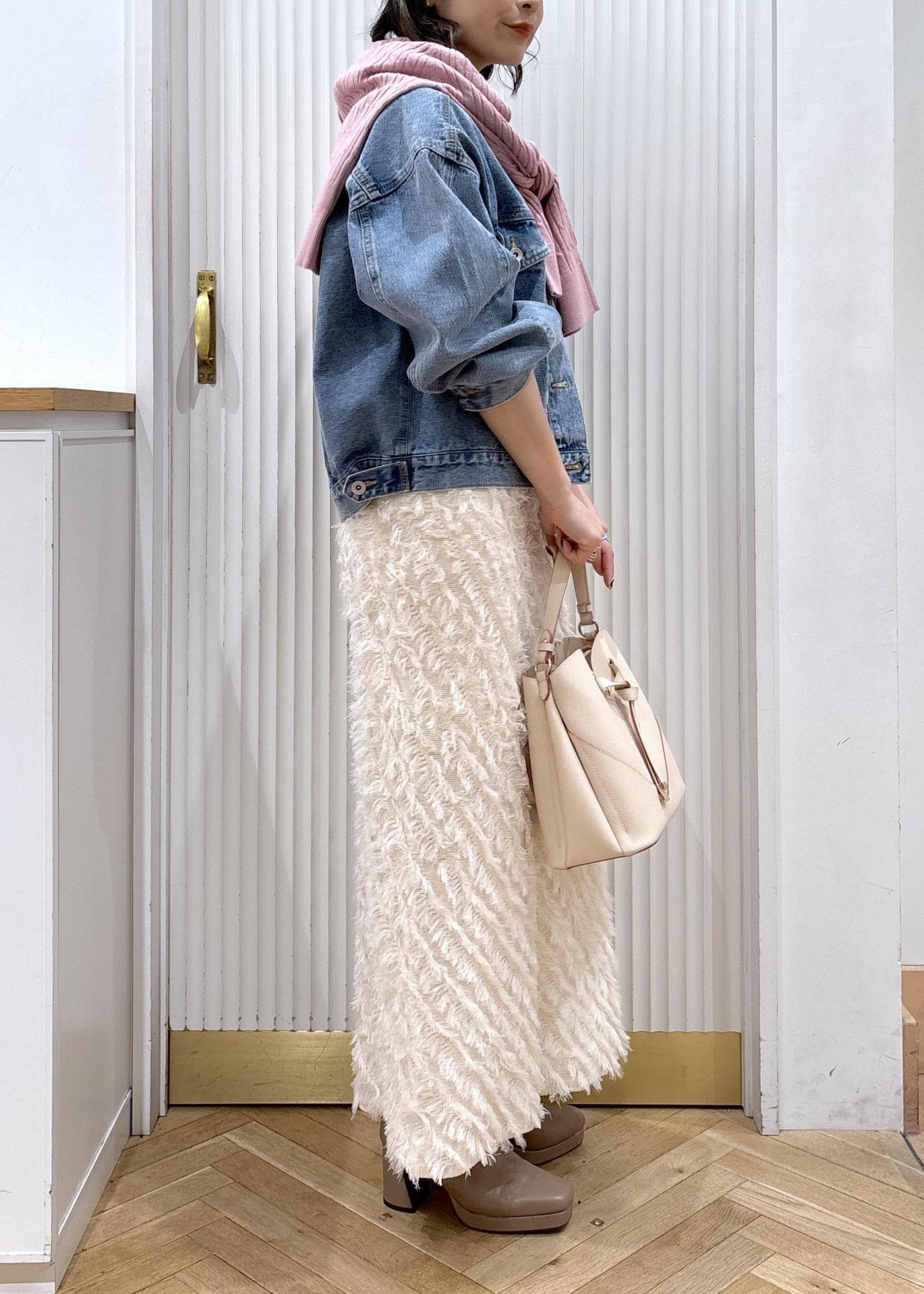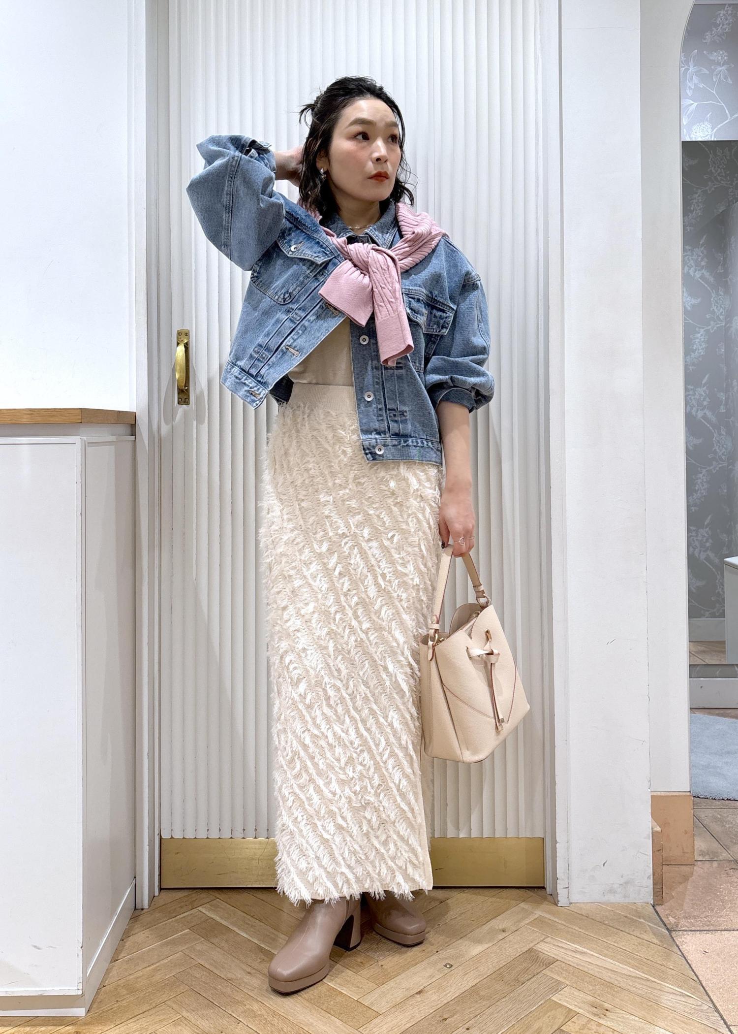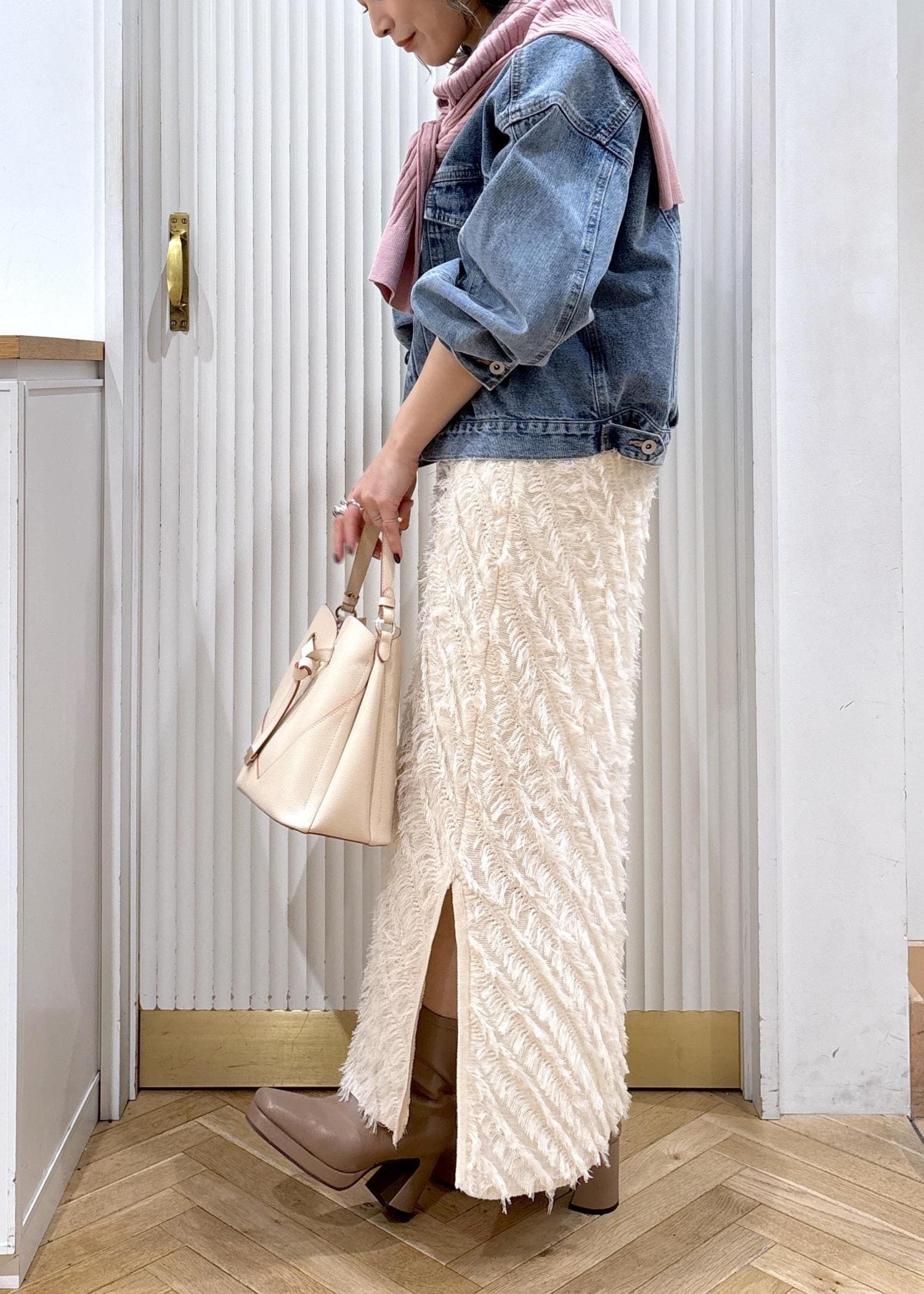 フリンジスカートでキャッチーなスカートに合わせたり、少し手首を覗かせて着るだけで大人可愛く着れちゃいますよ♫