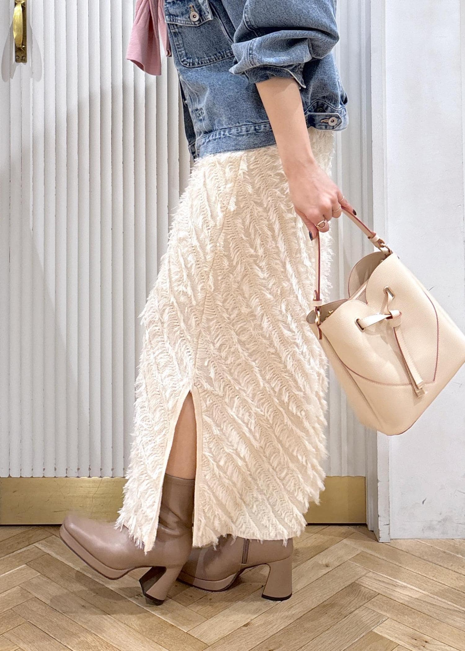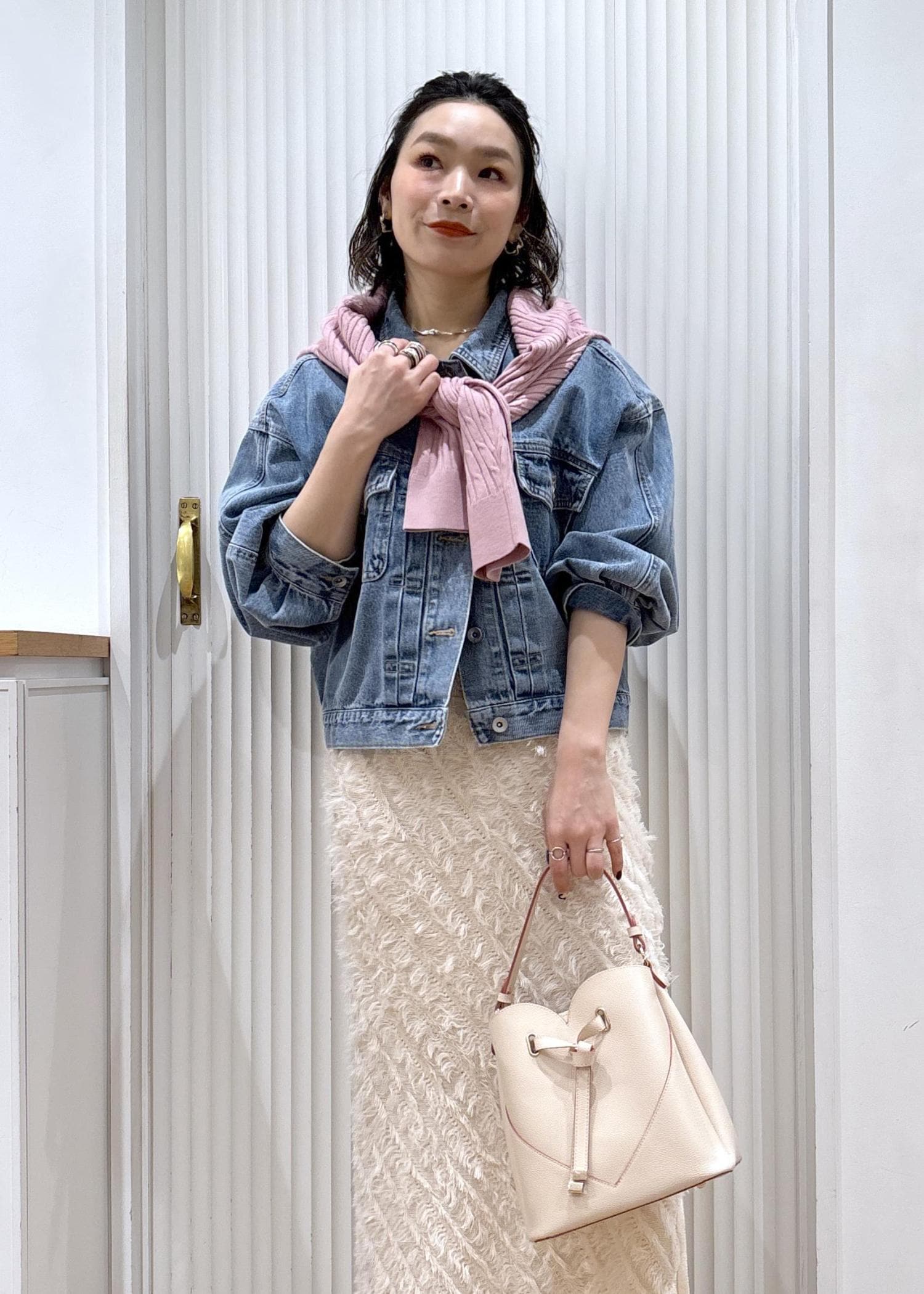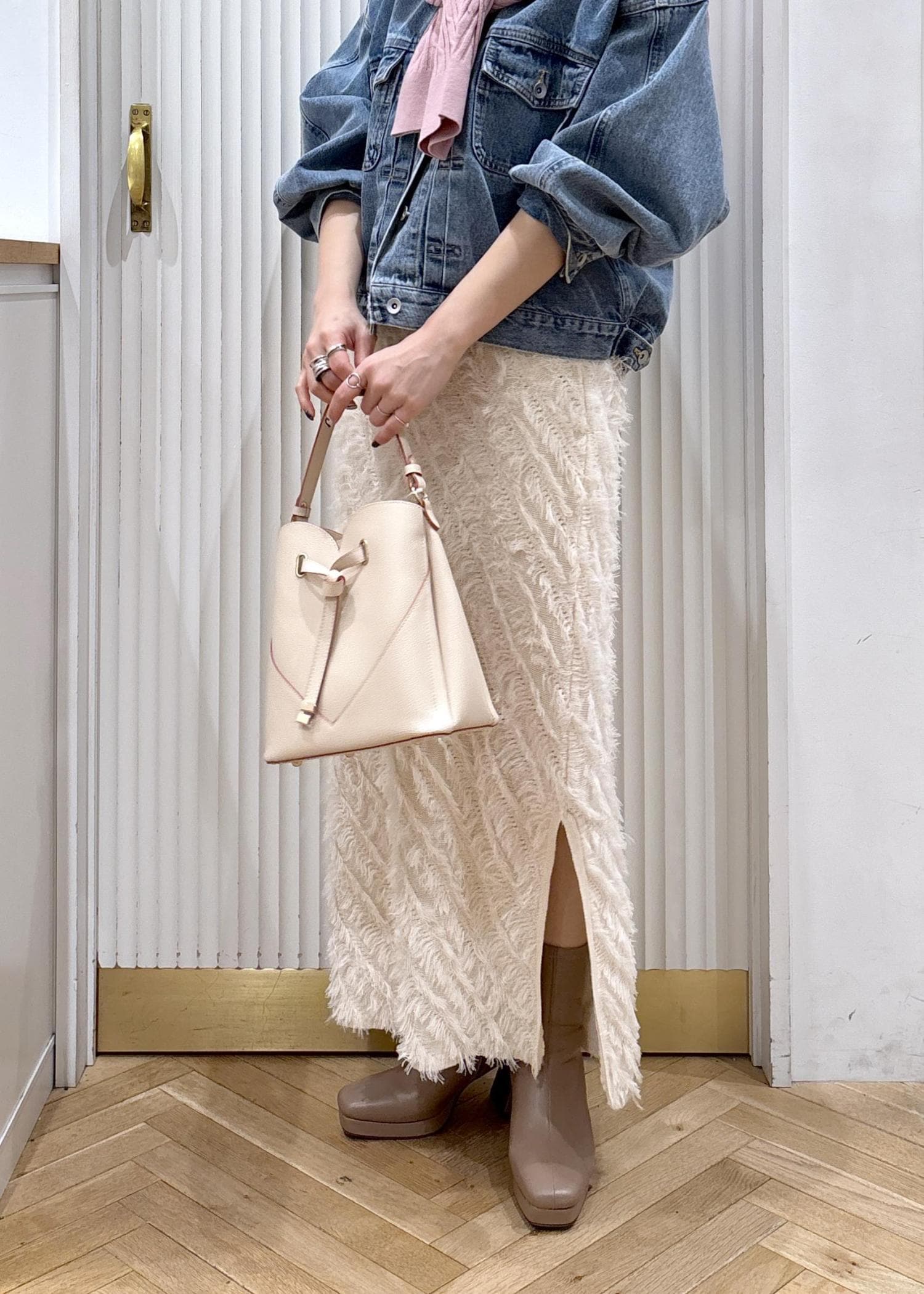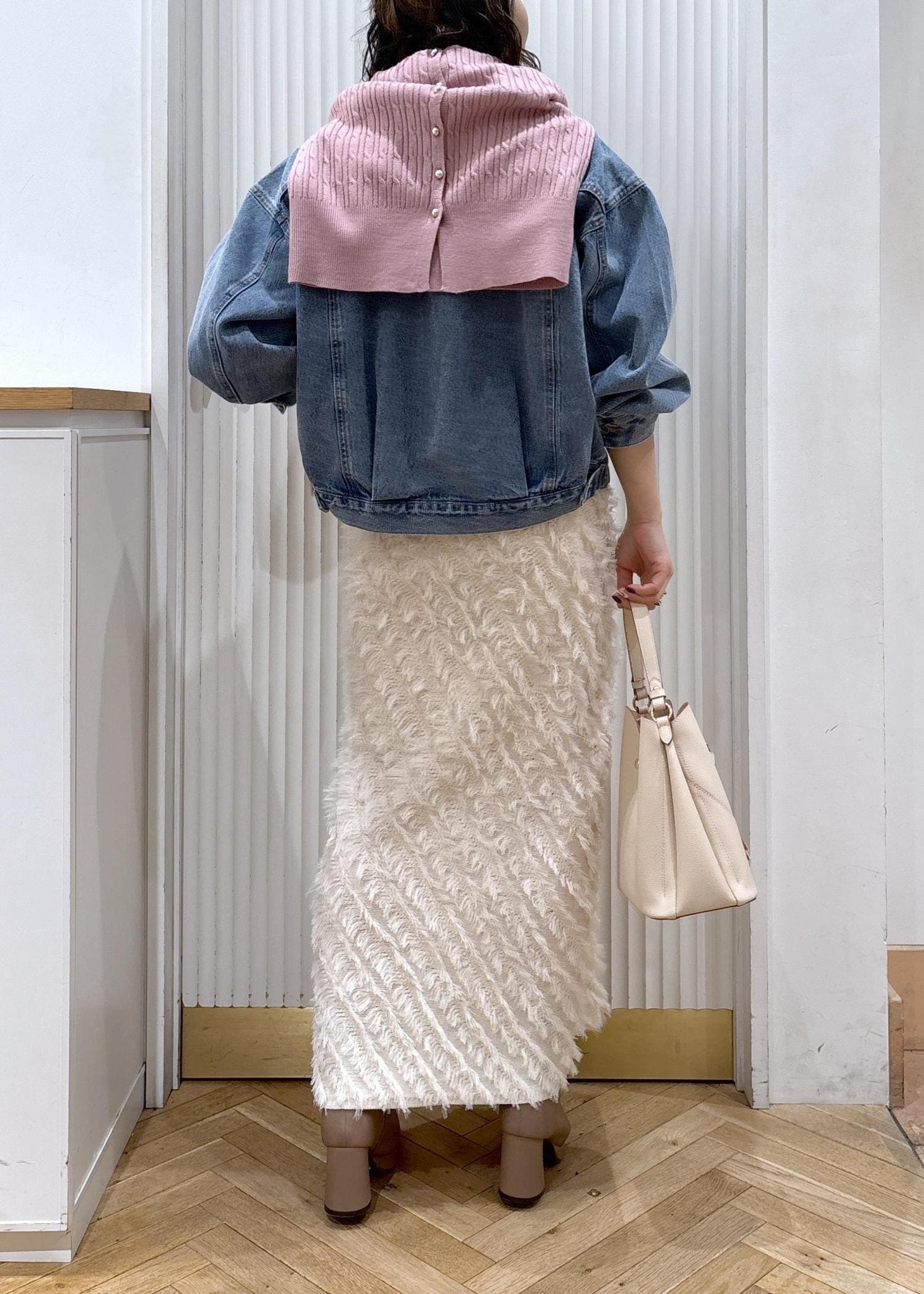 フリンジスカートでキャッチーなスカートに合わせたり、少し手首を覗かせて着るだけで大人可愛く着れちゃいますよ♫