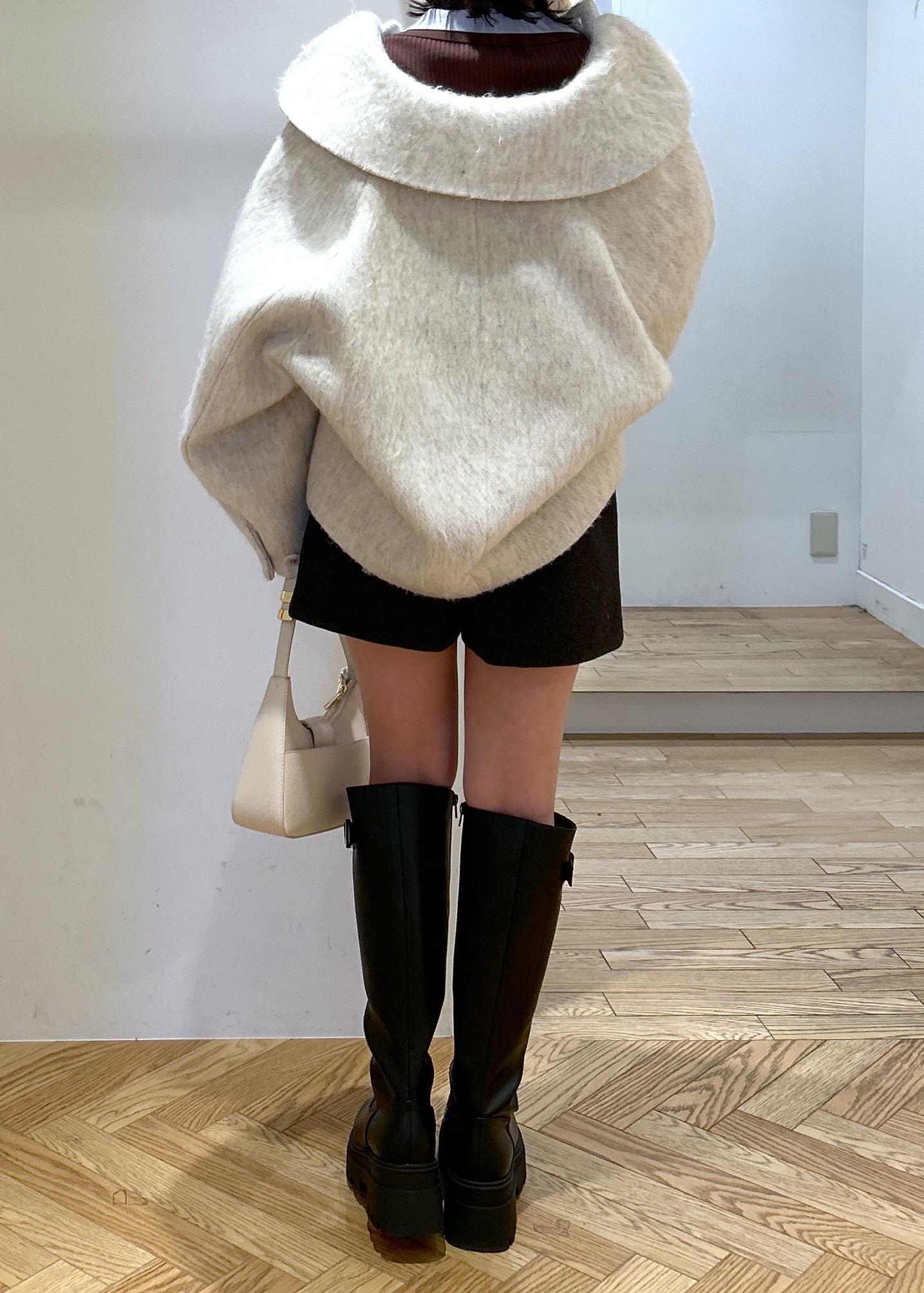 2BUY10%OFFVIS【アウター総選挙1位】ビッグカラーモモンガシャギーショートコートオフホワイト / S¥8,791レビュー157センチでSサイズ着用。