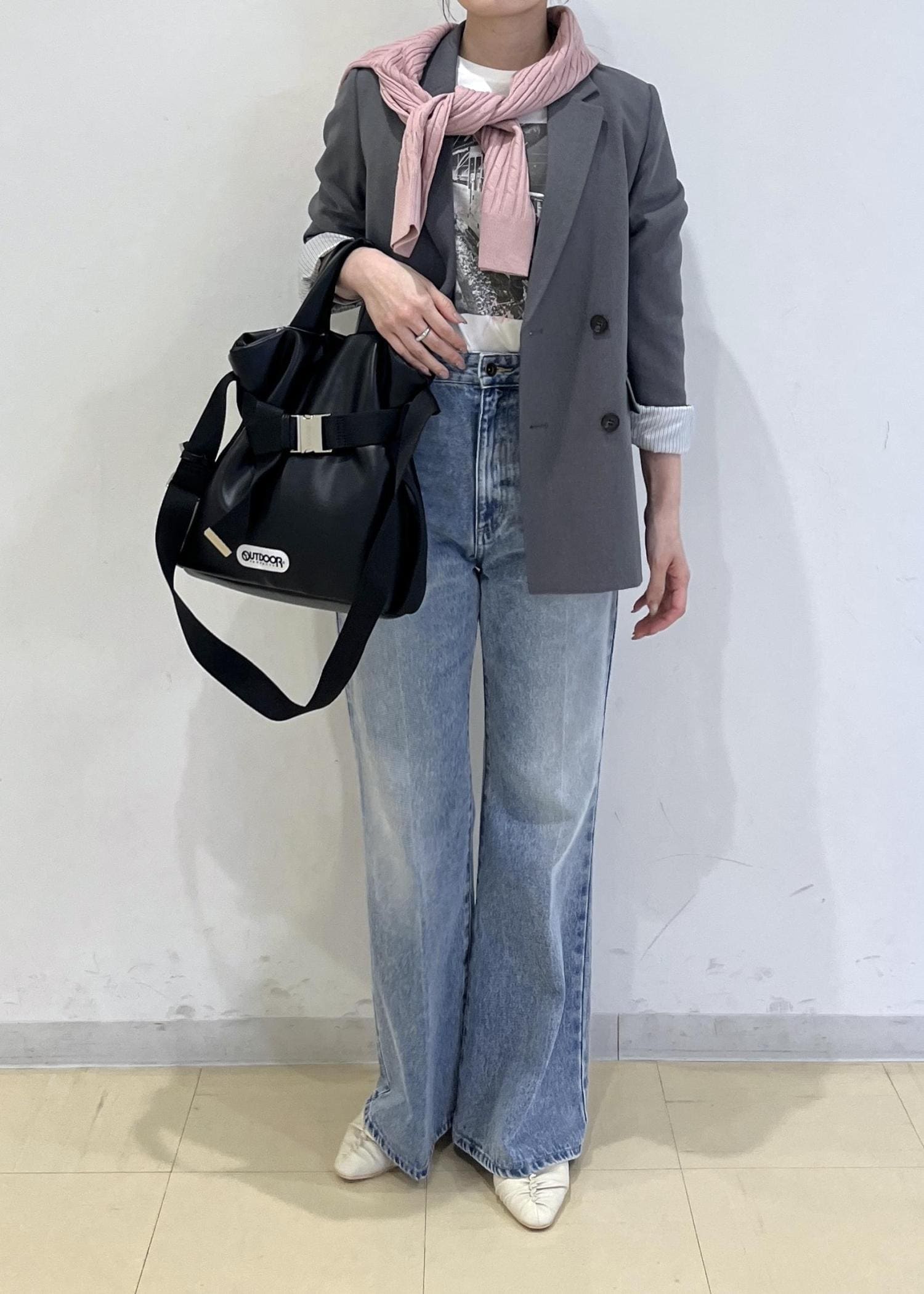 春を意識した、きれいめカジュアルコーデです。