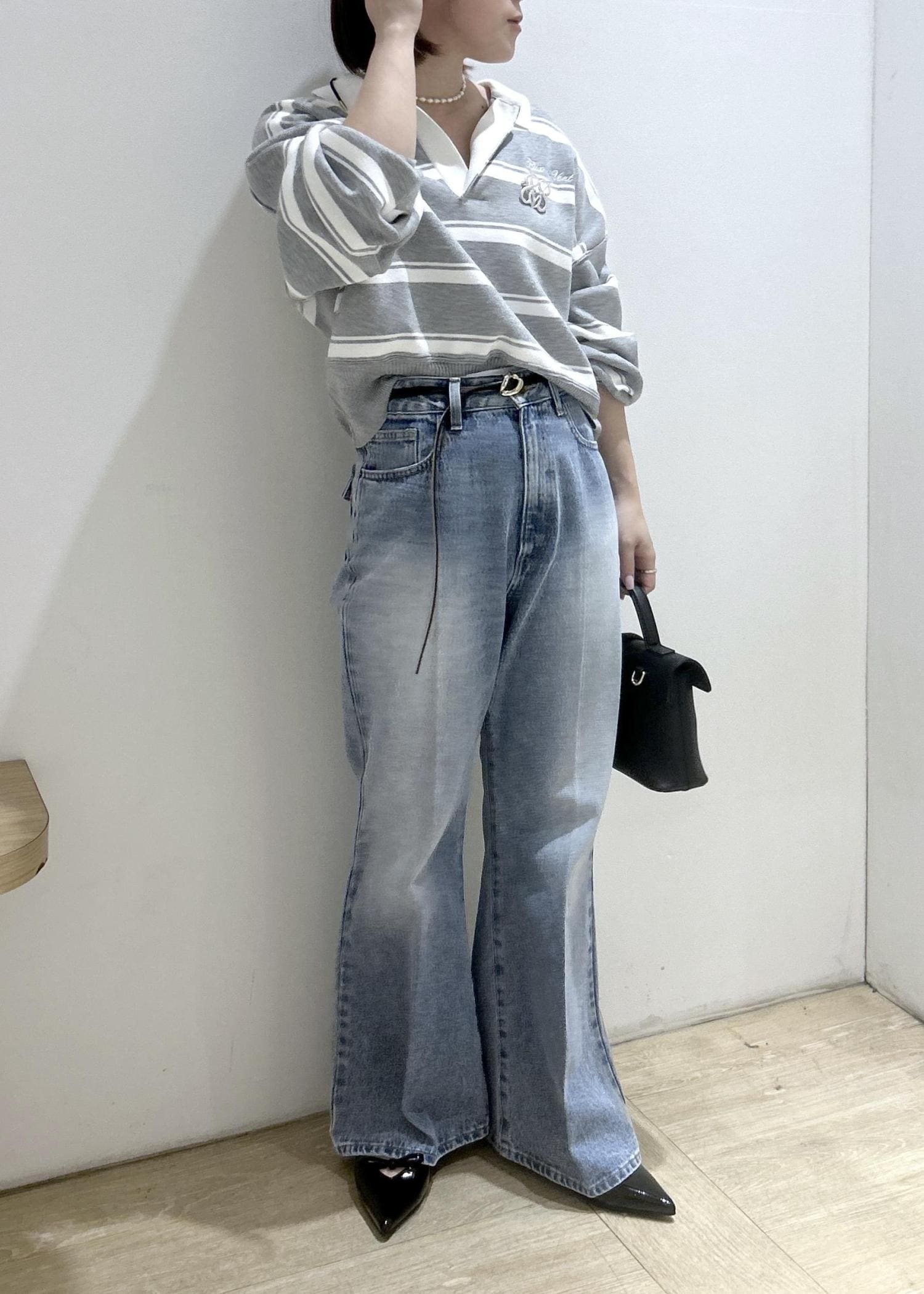 VISフレアシルエットデニムパンツサックス / S¥8,899レビュー脚長効果抜群のフレアデニムです。オールシーズン履きやすい素材で、Sサイズでジャストサイズでした。丈はヒールを履いて丁度良い長さです。