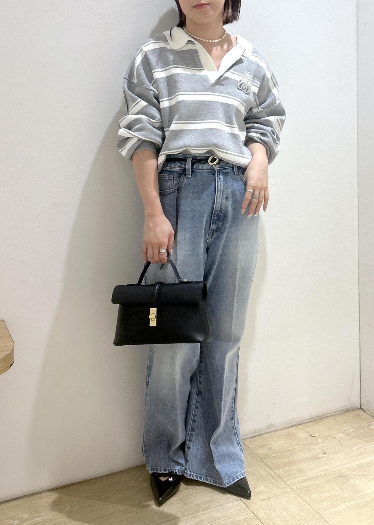 ショート丈ですが、ワイドパンツやスカートなど幅広いボトムに合わせやすいです。 -