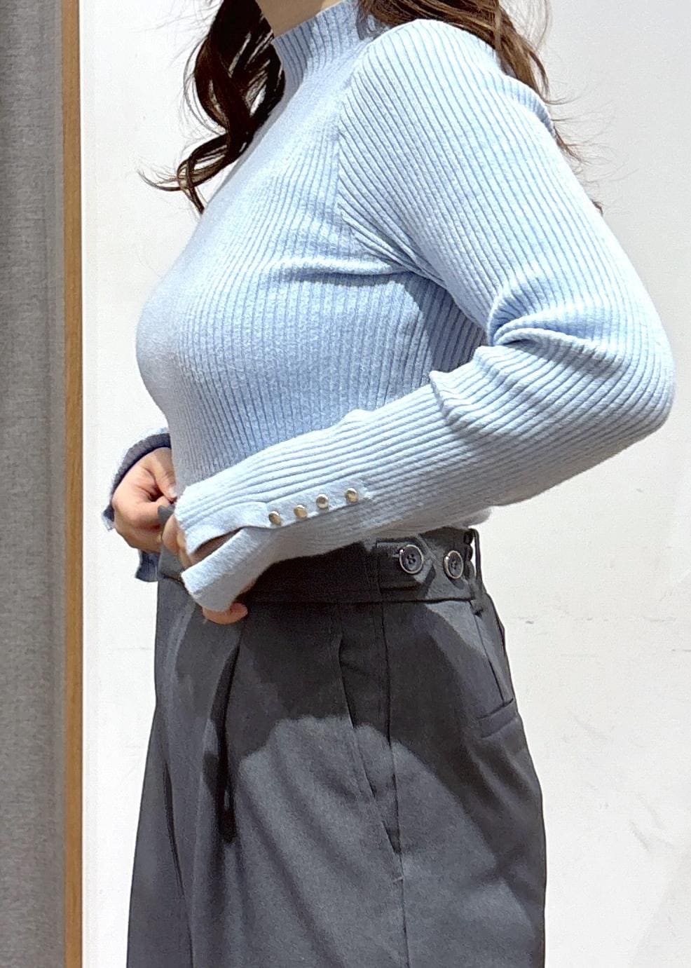 VIS【美得】スリーブ釦アクセントリブニット/WEB限定FSサイズ・静電気防止サックス / F¥4,389レビュー【着用感】