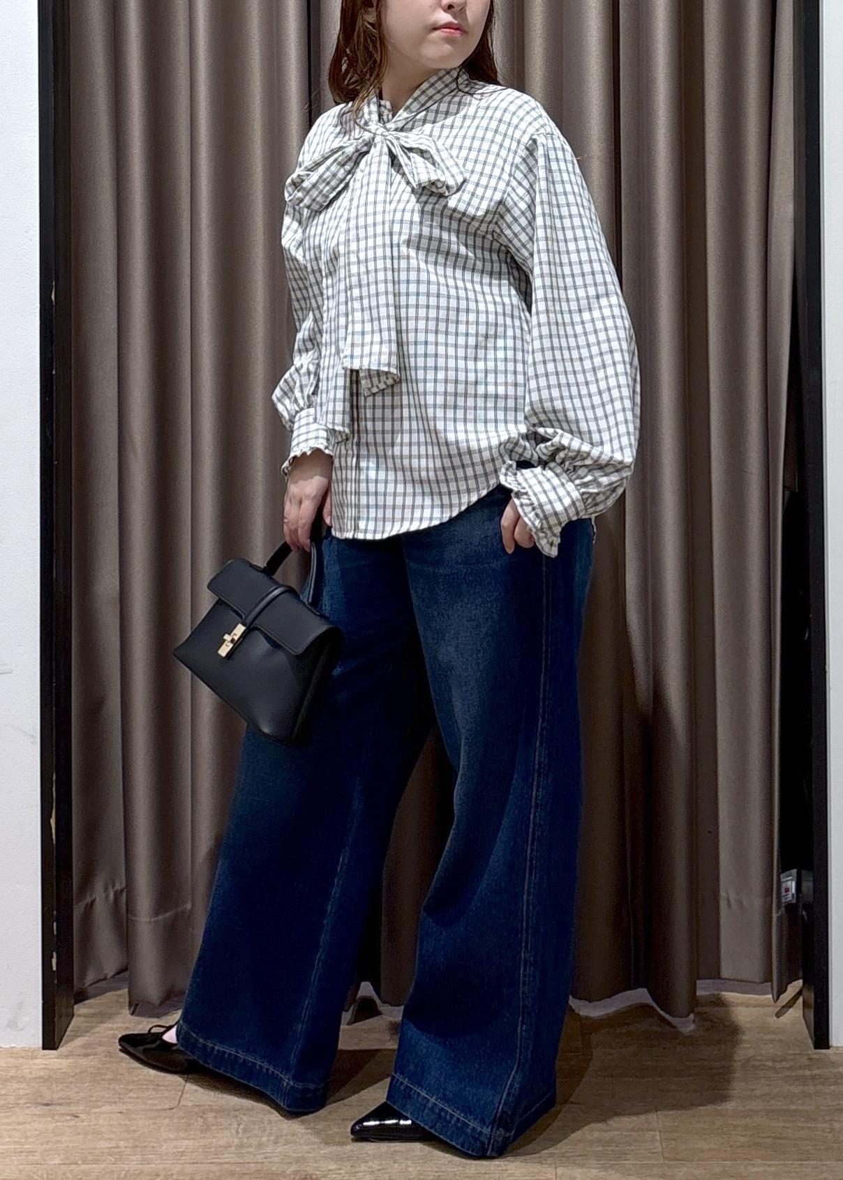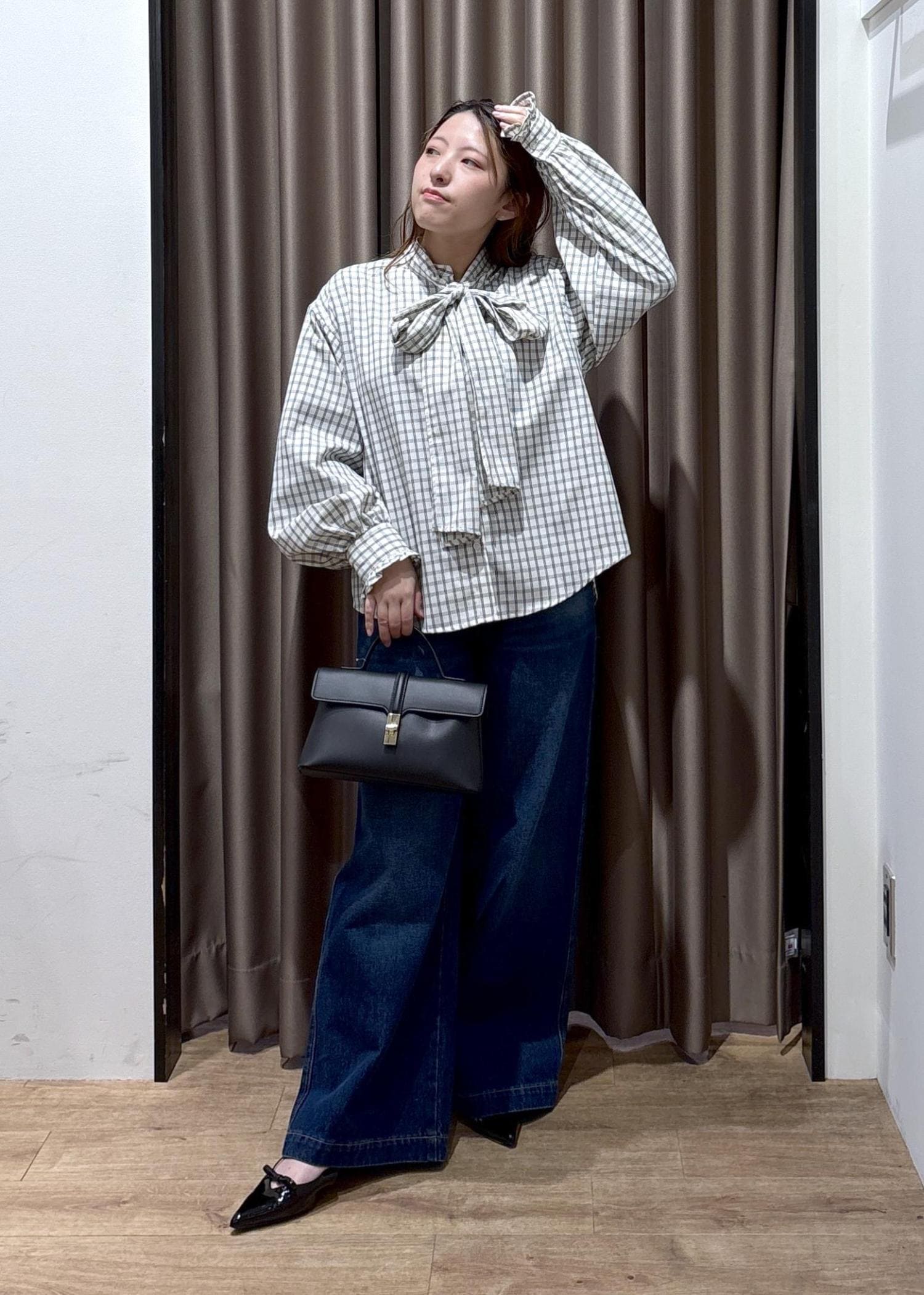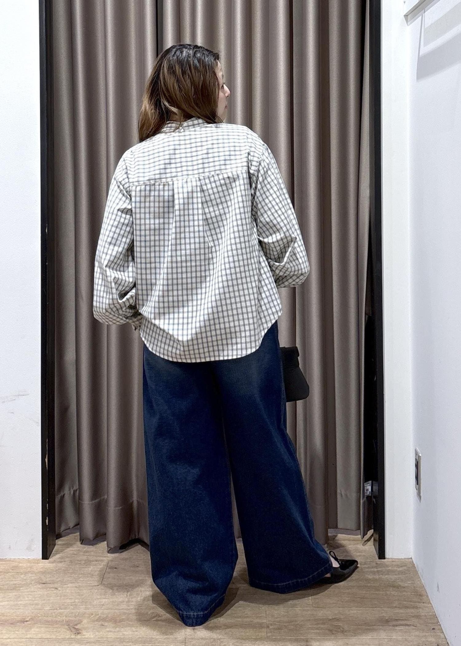 VISチェック&デニムアソートボウタイリボン付きスタンドカラーシャツオフホワイト / F¥6,589レビューハリ感のある素材感で1枚で着映えするシャツ!