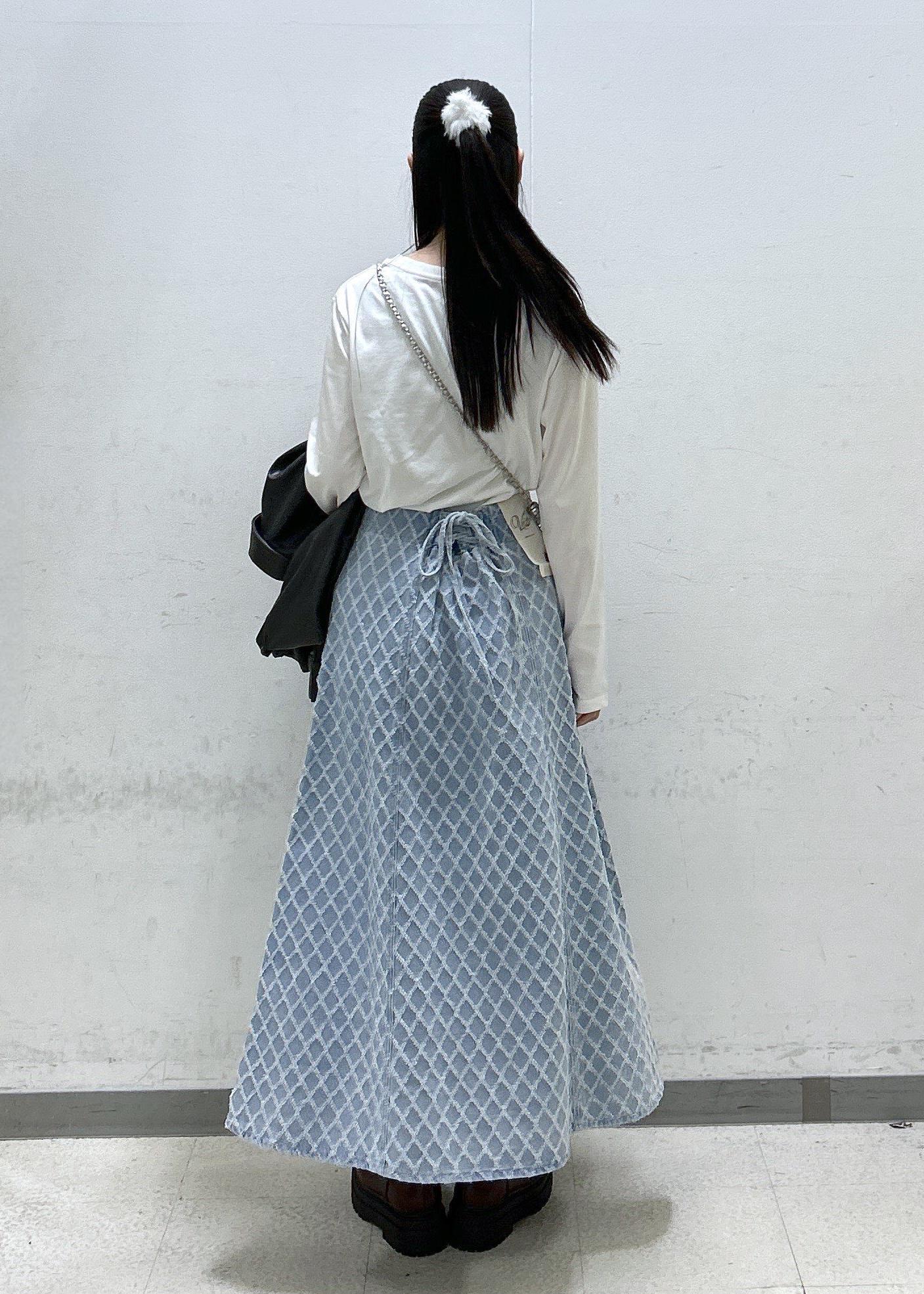 VISバックレースアップフレアデニムスカート/イージーケアブルー系 / M¥8,899レビュー腰周りをすっぽり隠してくれるのが嬉しいフレアスカート♡厚手デニムなので風がふいても体のラインに沿わないので安心♩全体的にカジュアルですが、バックの編み上げがさりげなくガーリーです☺︎