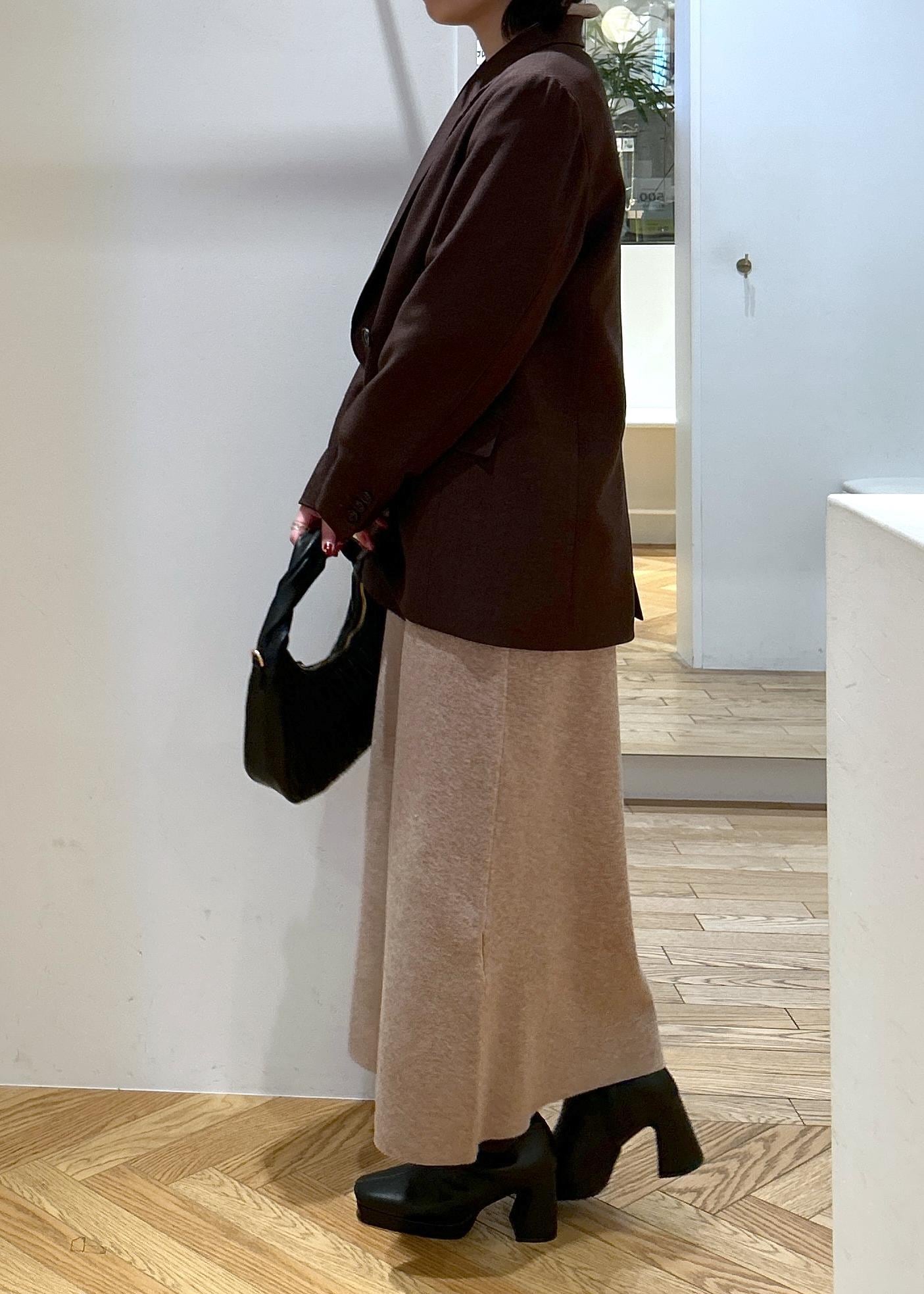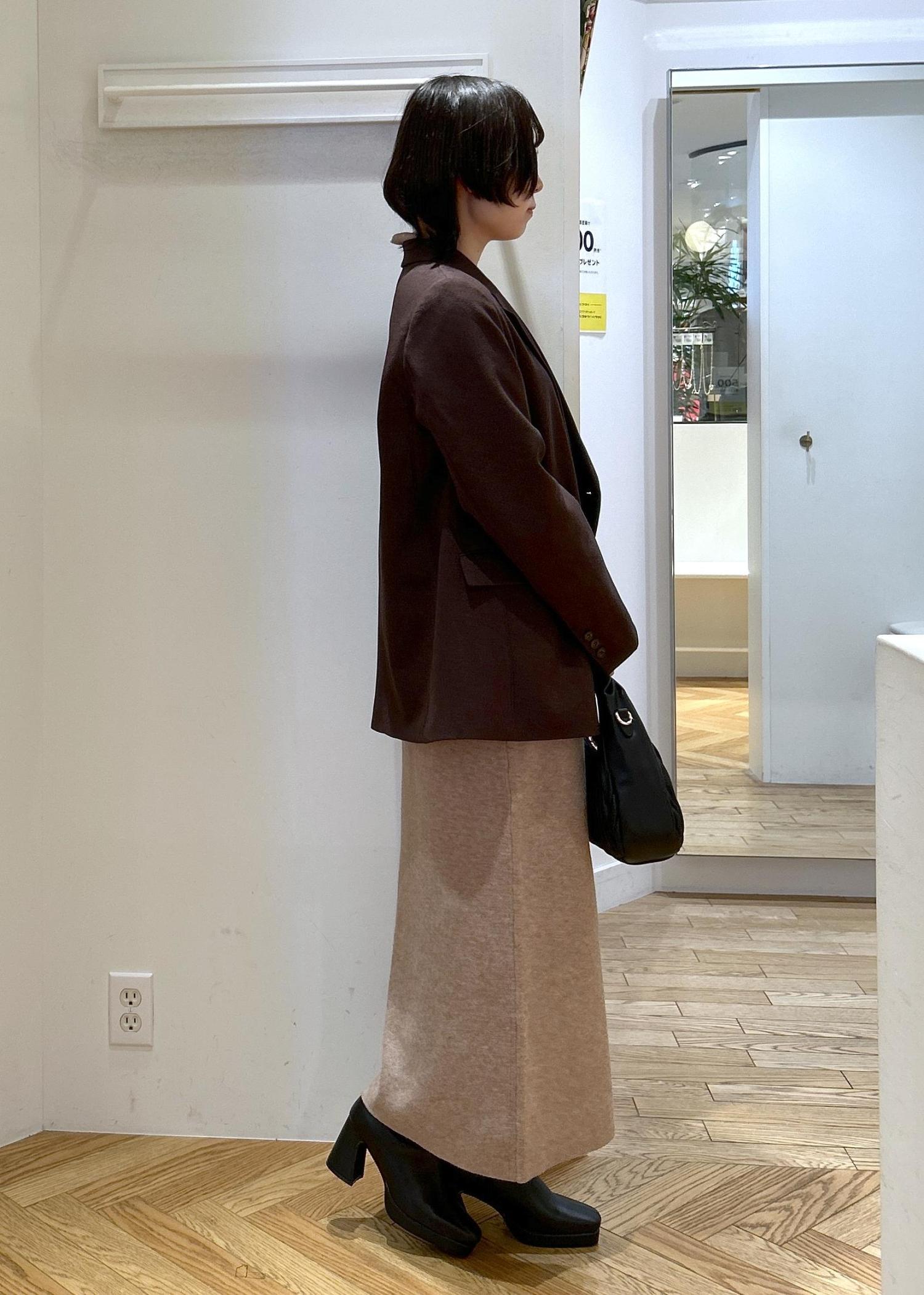ゆったりサイズでインナーを分厚めニットなどにしてもかさばらずに着られます。 -