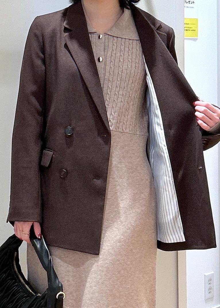 VIS美easyウーリッシュダブルブレストテーラードジャケット【セットアップ対応/洗える】ダークブラウン / S¥8,009レビュー身長157センチSサイズでヒップにかかる丈感。