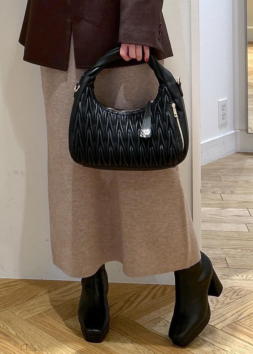 VIS【2WAY】ねじりハンドルキルティングバッグブラック / F¥6,327レビューペットボトルや長財布も楽々収納!