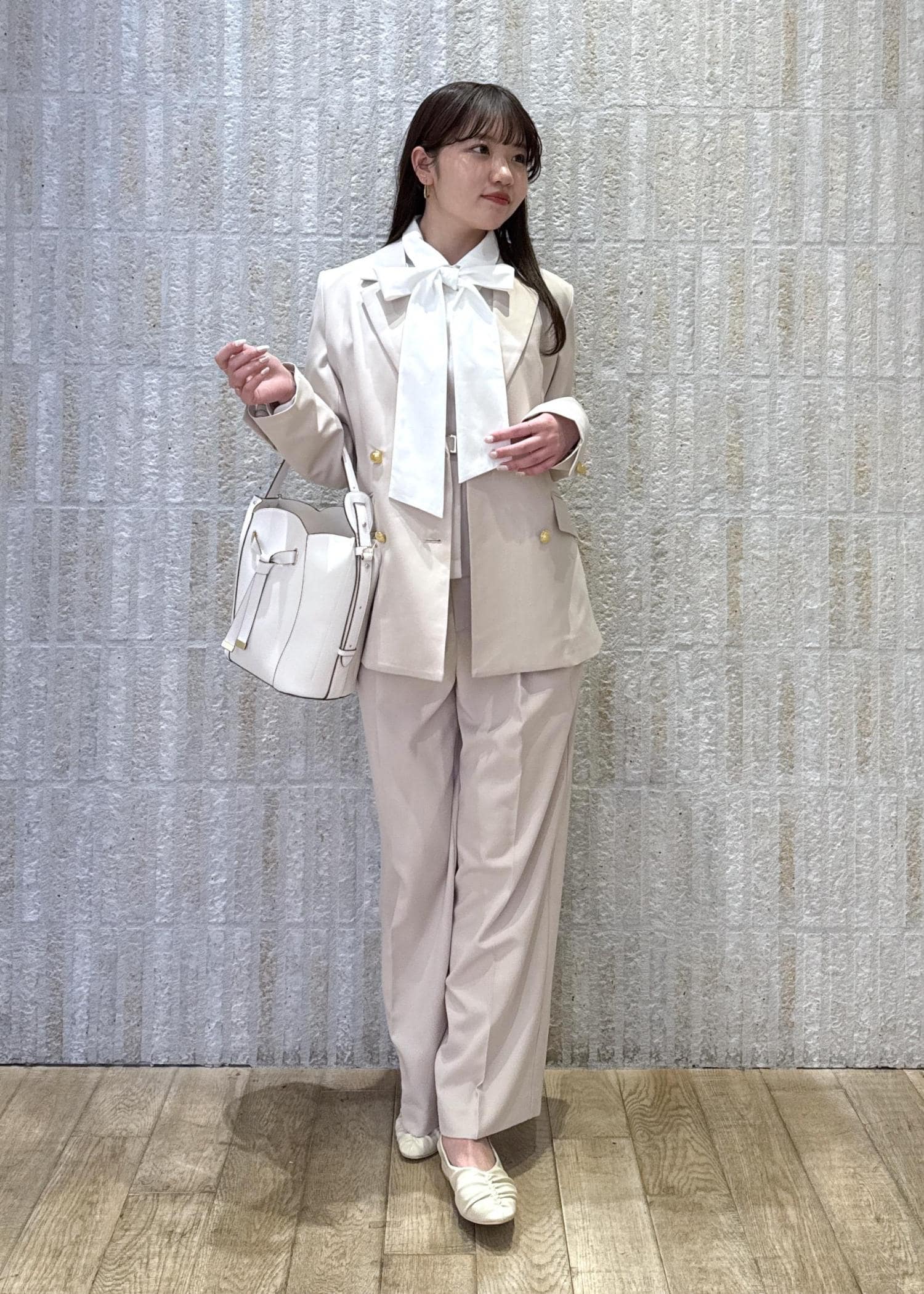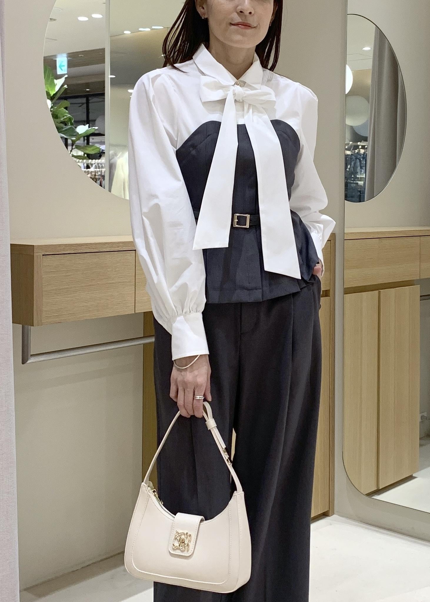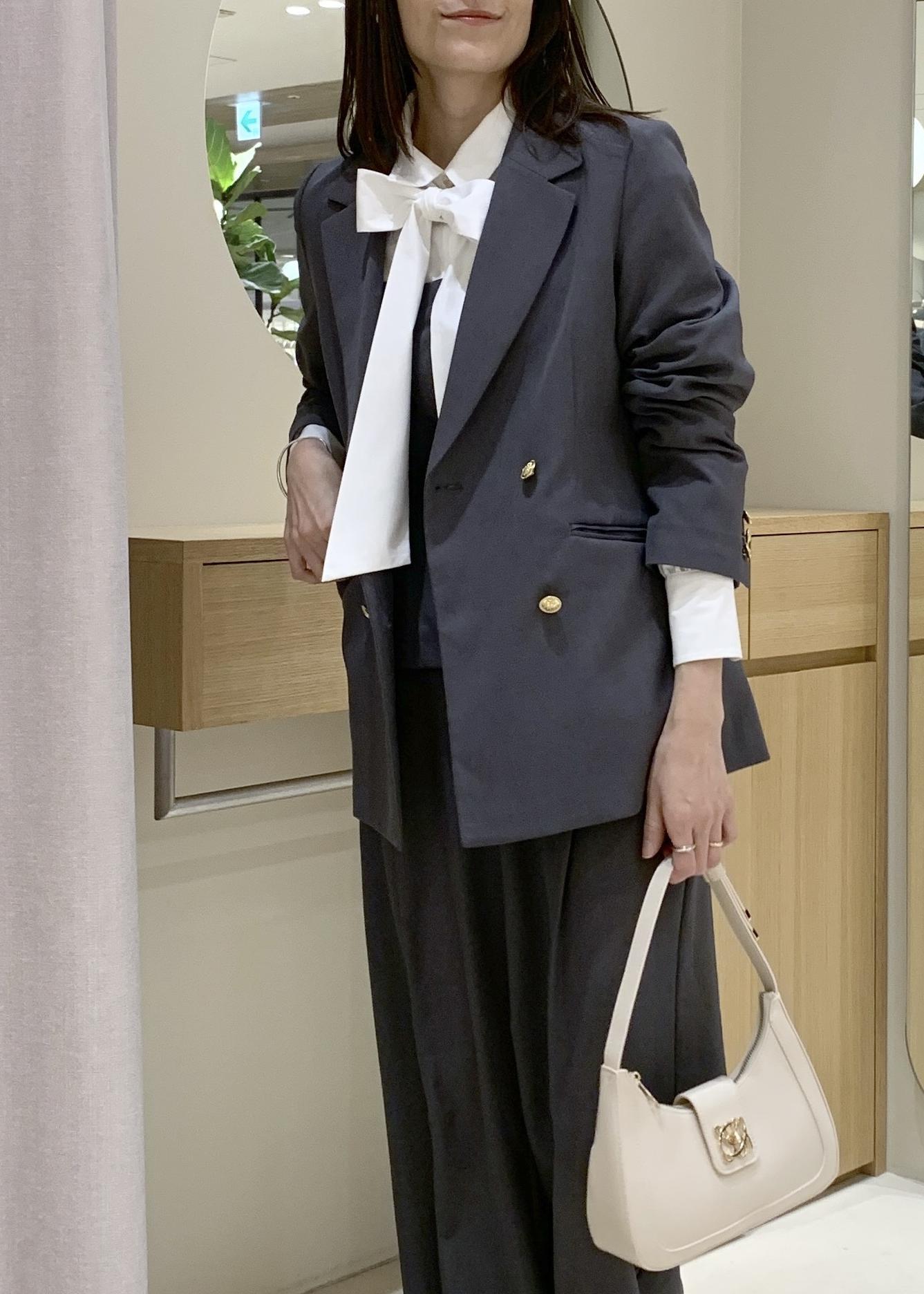 程よいハリ感とリボン使いがきちんとさを出してくれます。リボンは簡単に取り外しができるので、印象を変えられますよ。