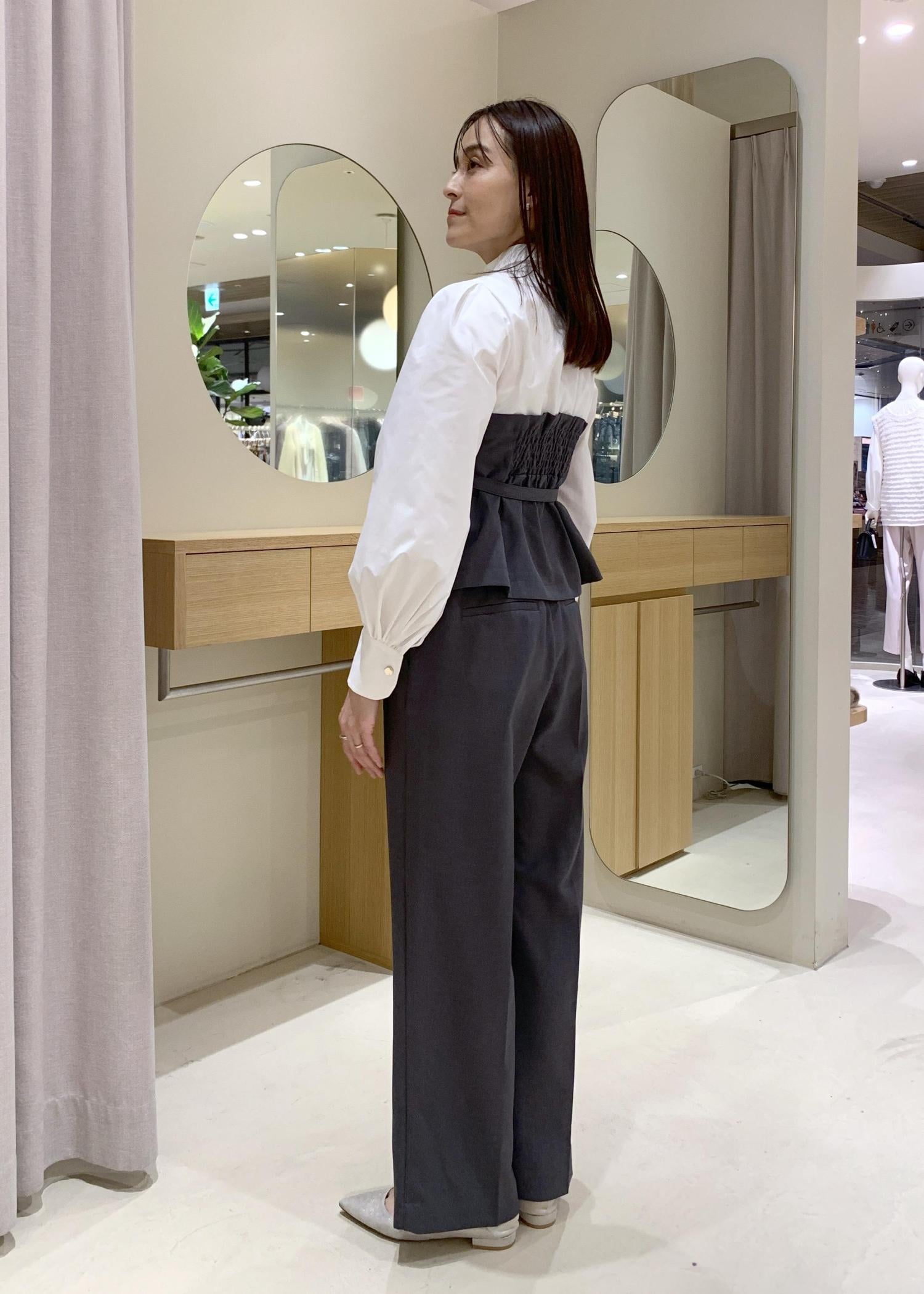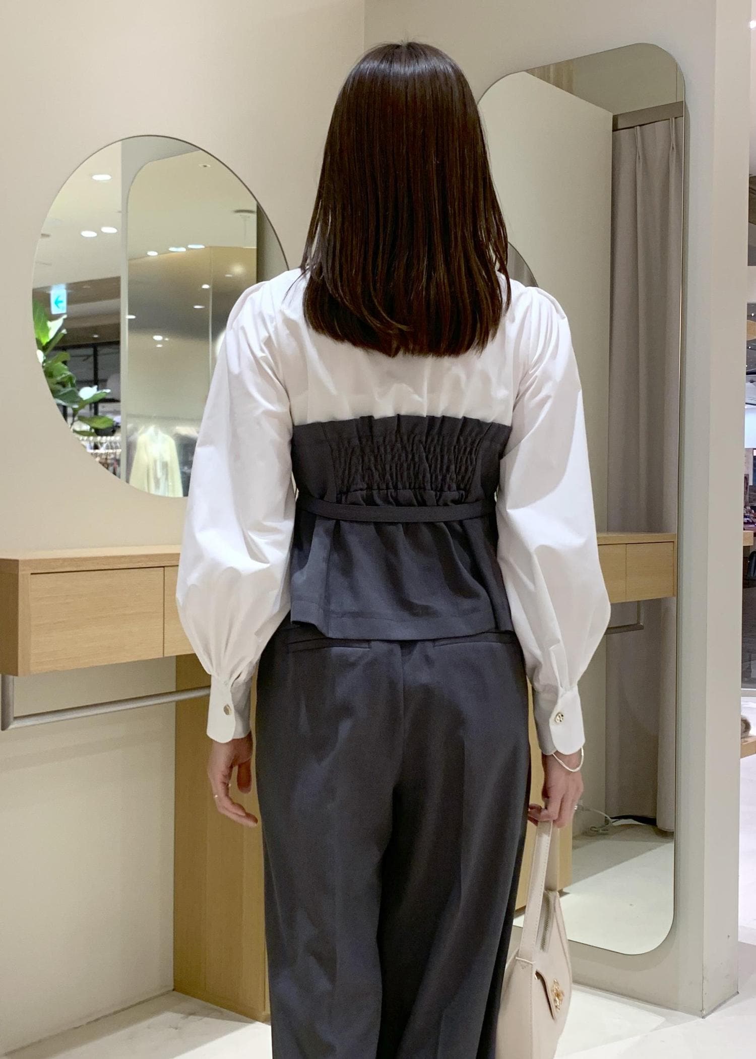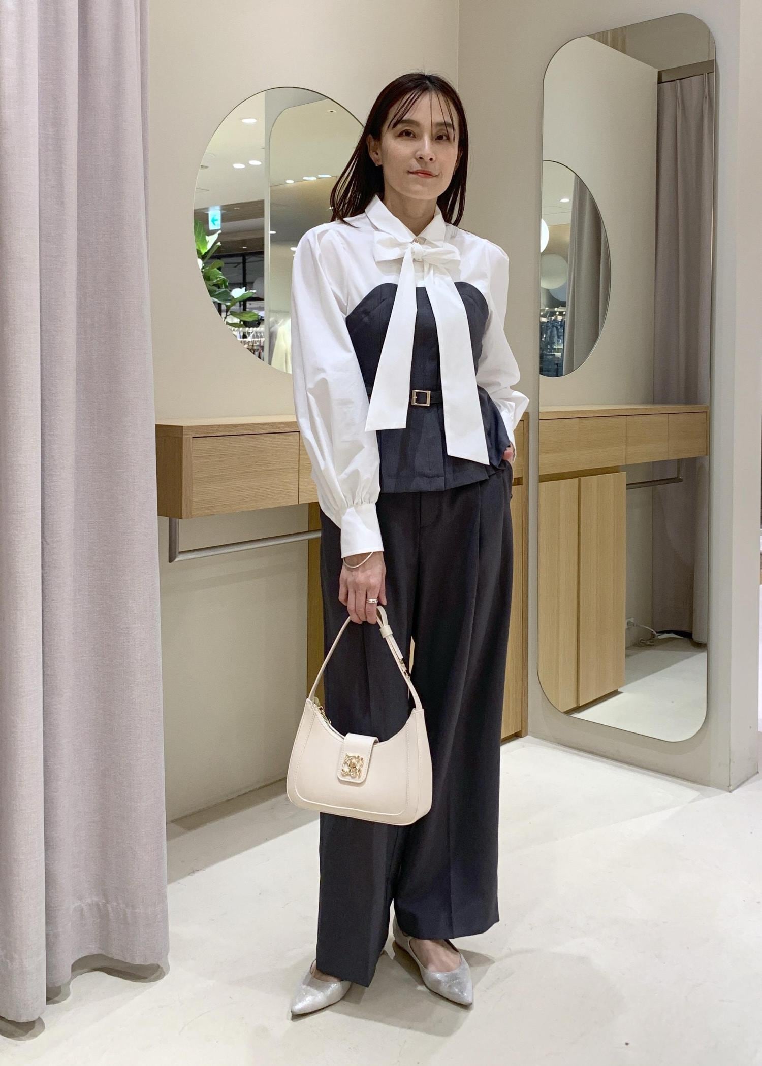 程よいハリ感とリボン使いがきちんとさを出してくれます。リボンは簡単に取り外しができるので、印象を変えられますよ。