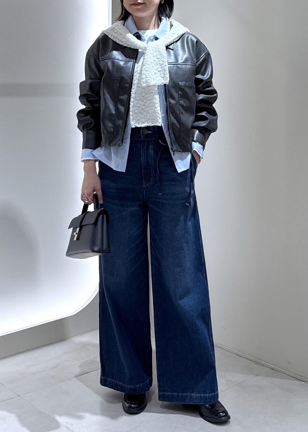 タック無しのハイウエストのデザインなのでスッキリとした印象で着れます!
