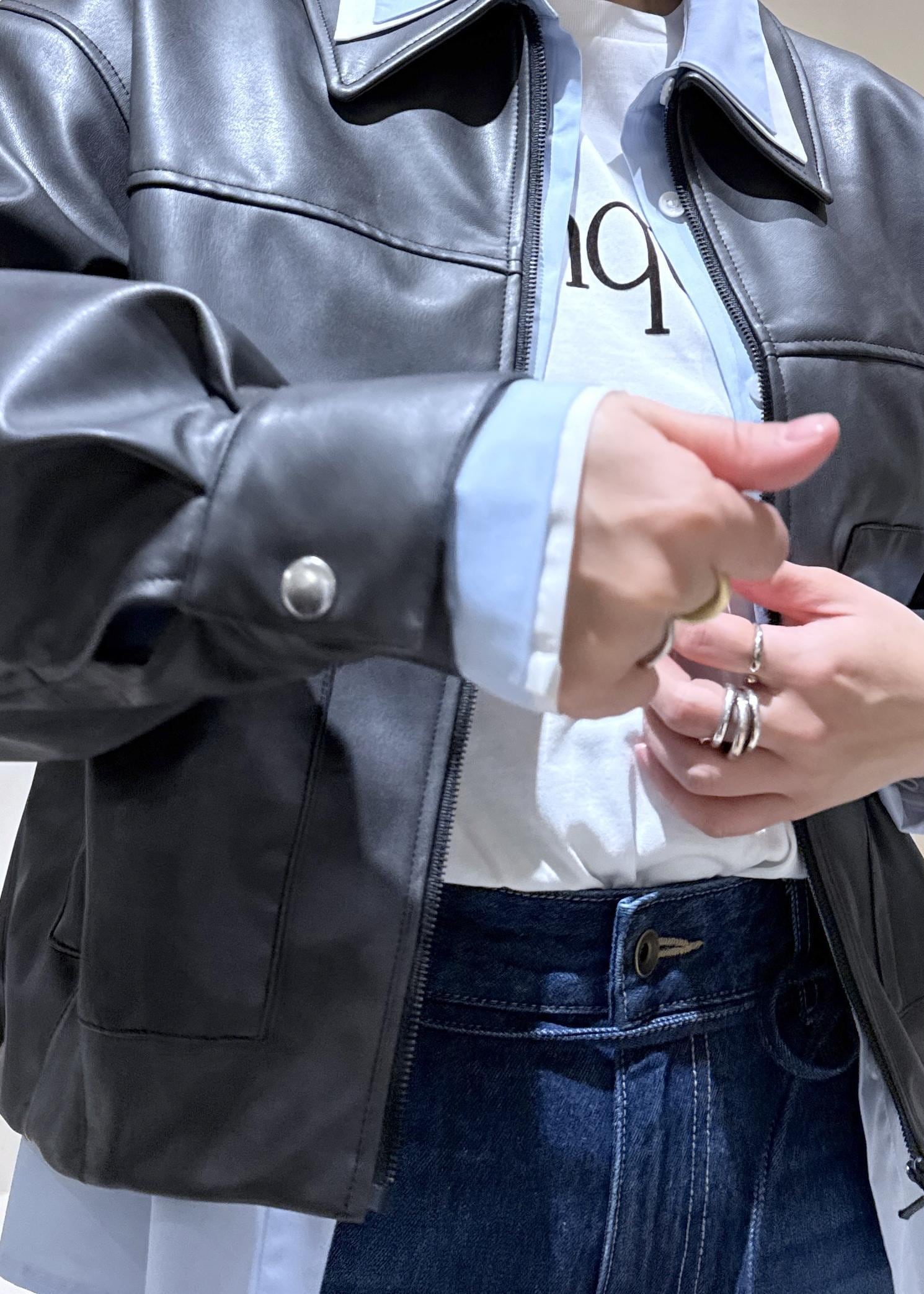 2BUY10%OFFVISアウトポケット合皮ブルゾンブラック / F¥10,989レビュー165cm身長で腰骨くらいまでの丈です!