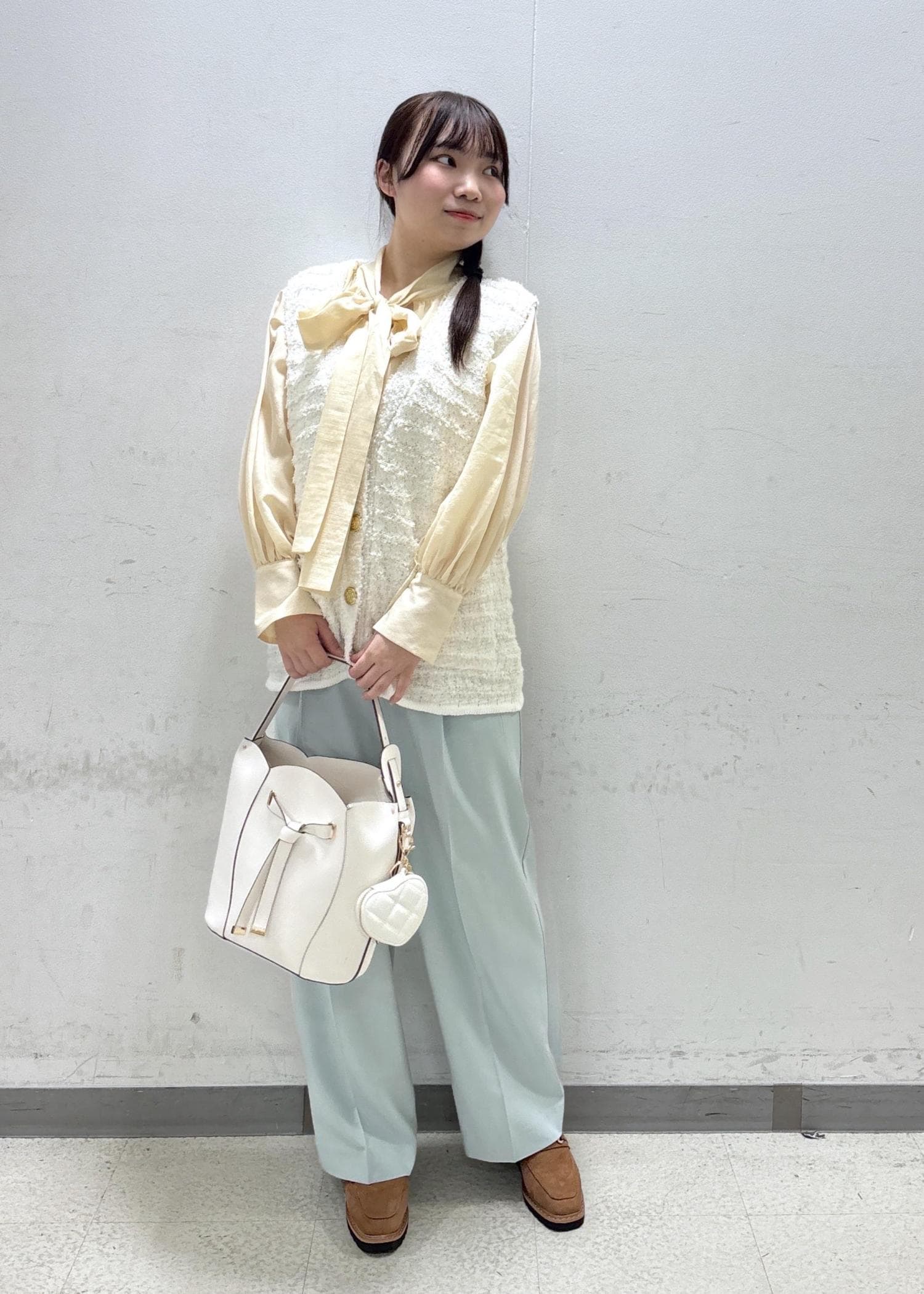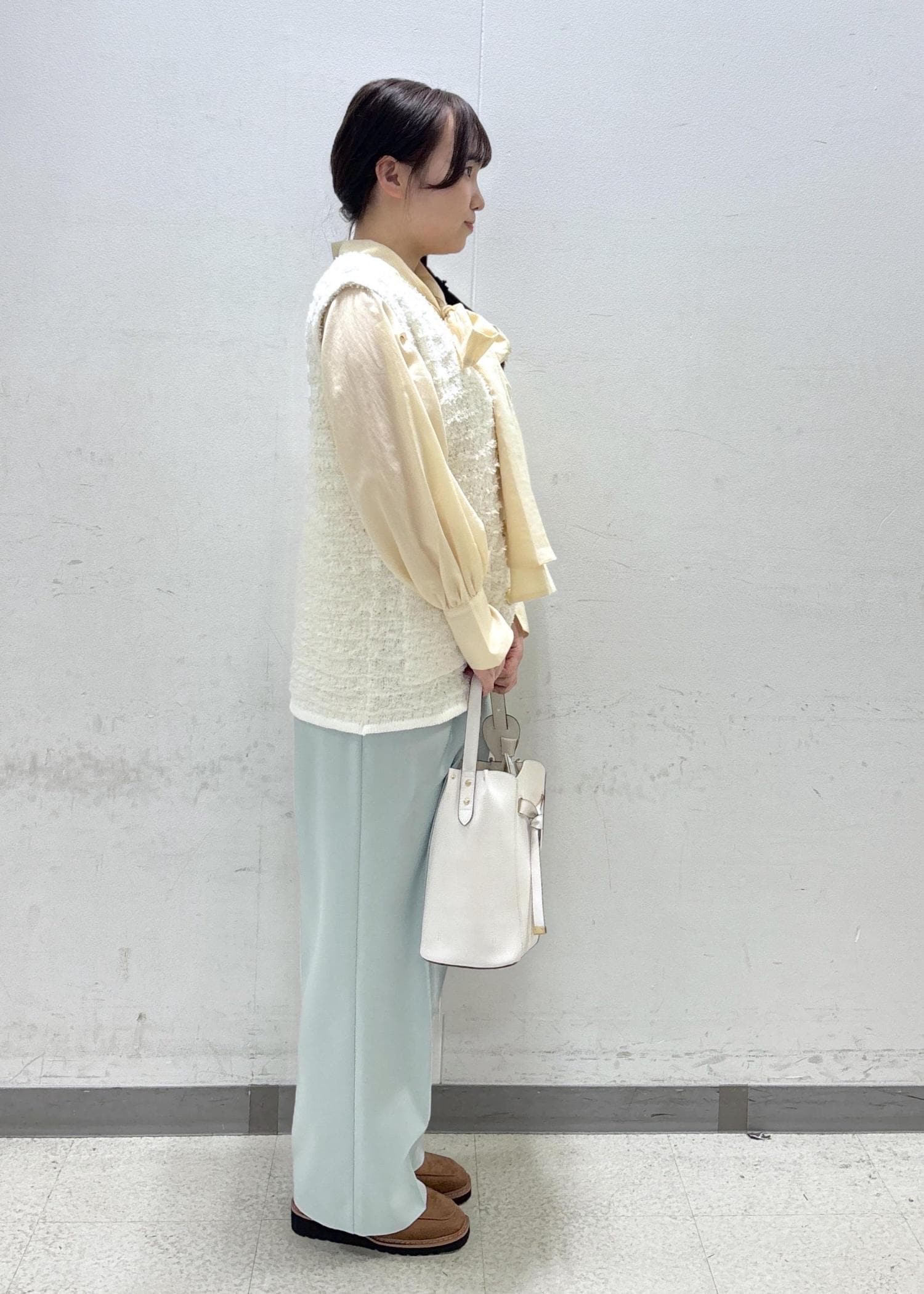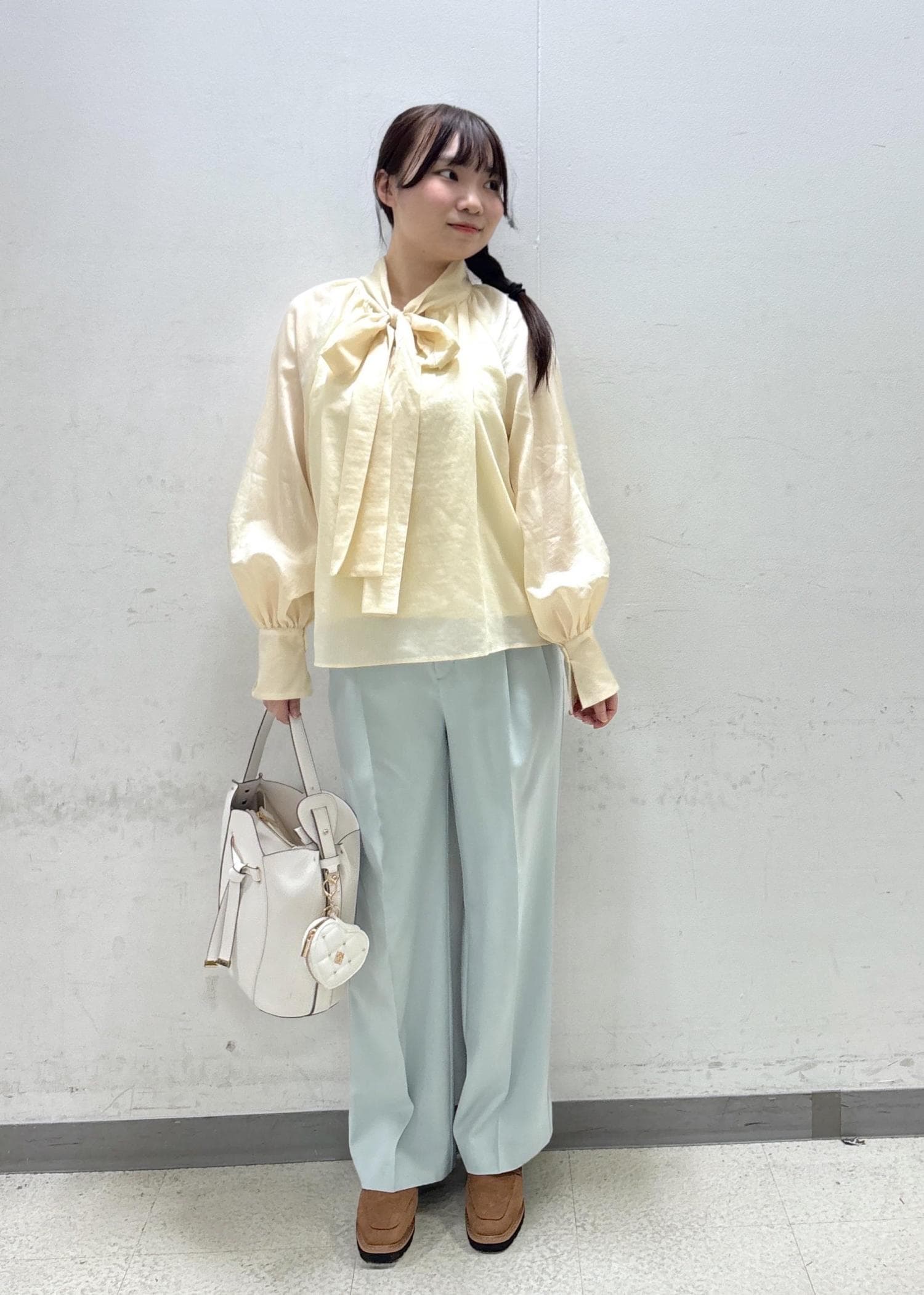 春先、ボウタイブラウスなどとのレイヤードコーデがオススメです^ - ^ -