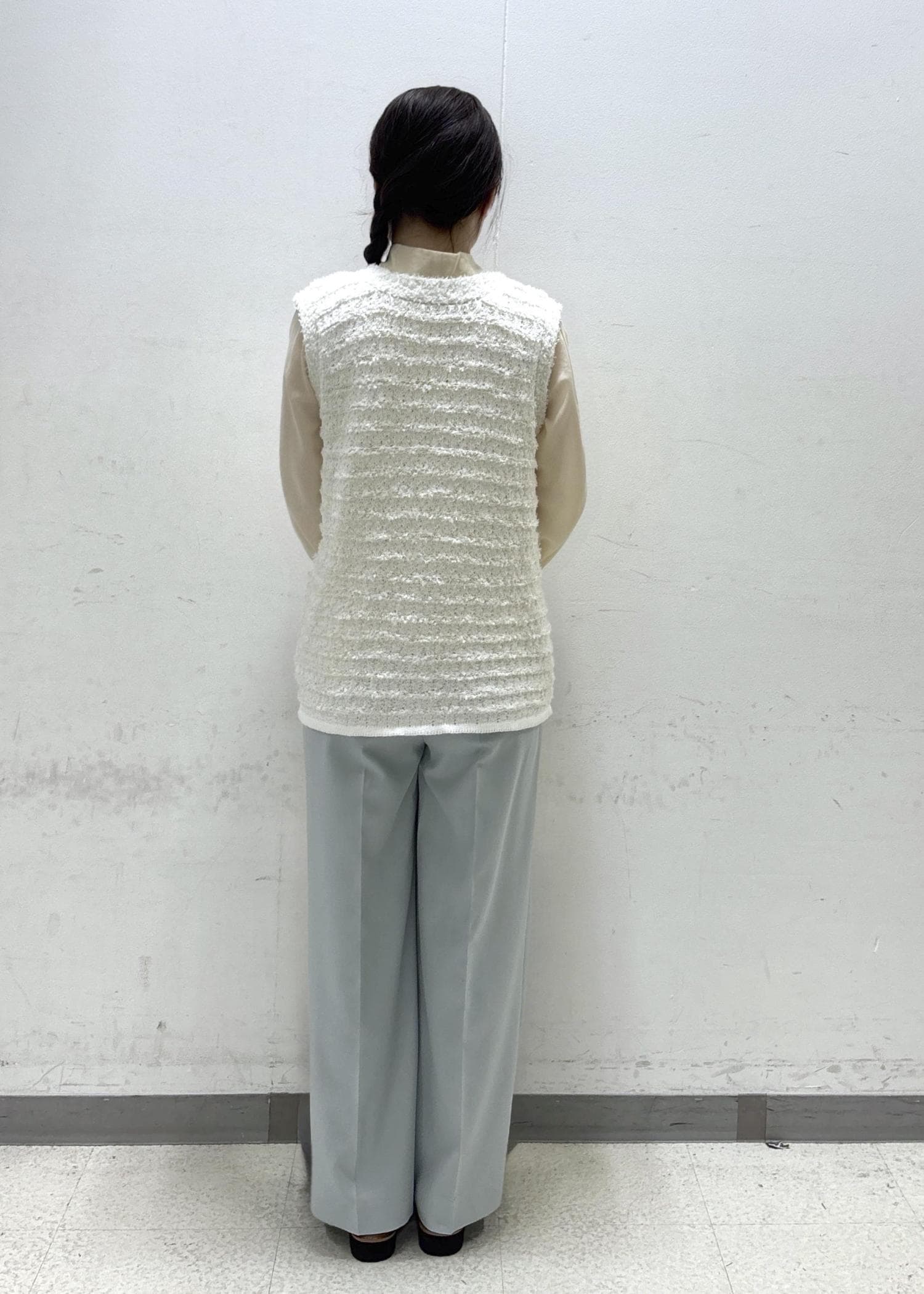 NEW!VISツイードニットベスト/イージーケアキナリ系 / F¥6,589レビューゆったり目の着心地で丈はお尻にかかるくらいです。
