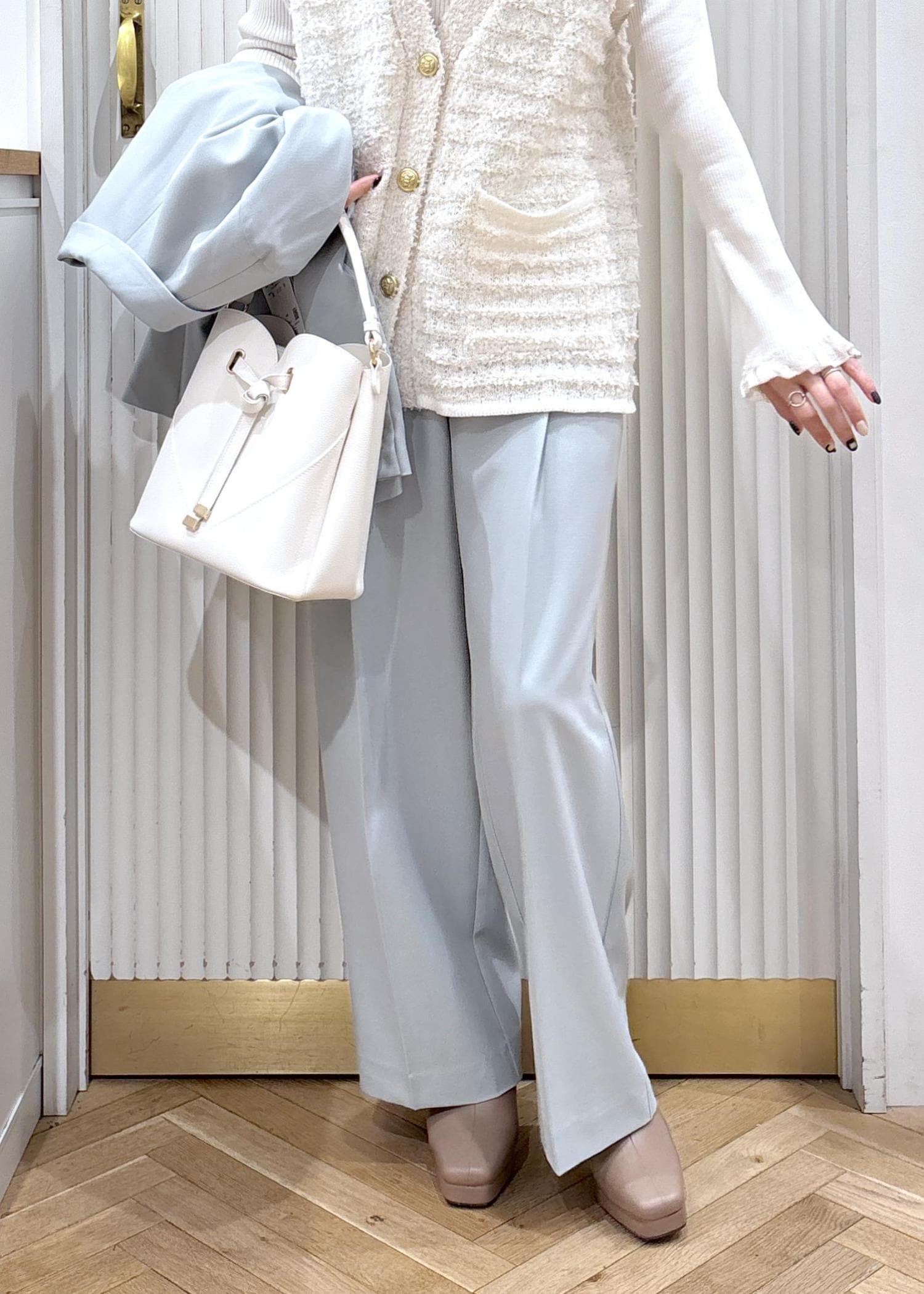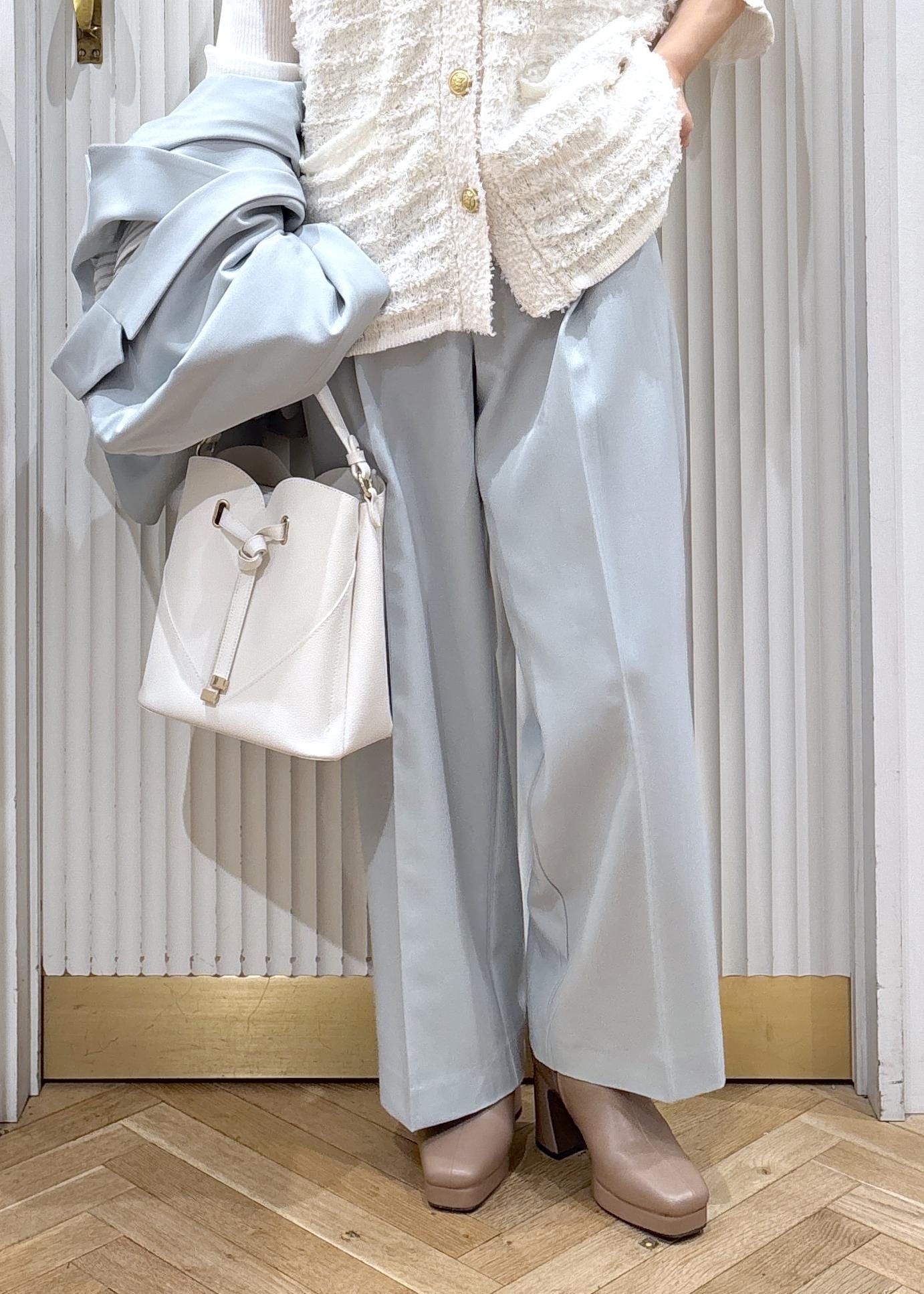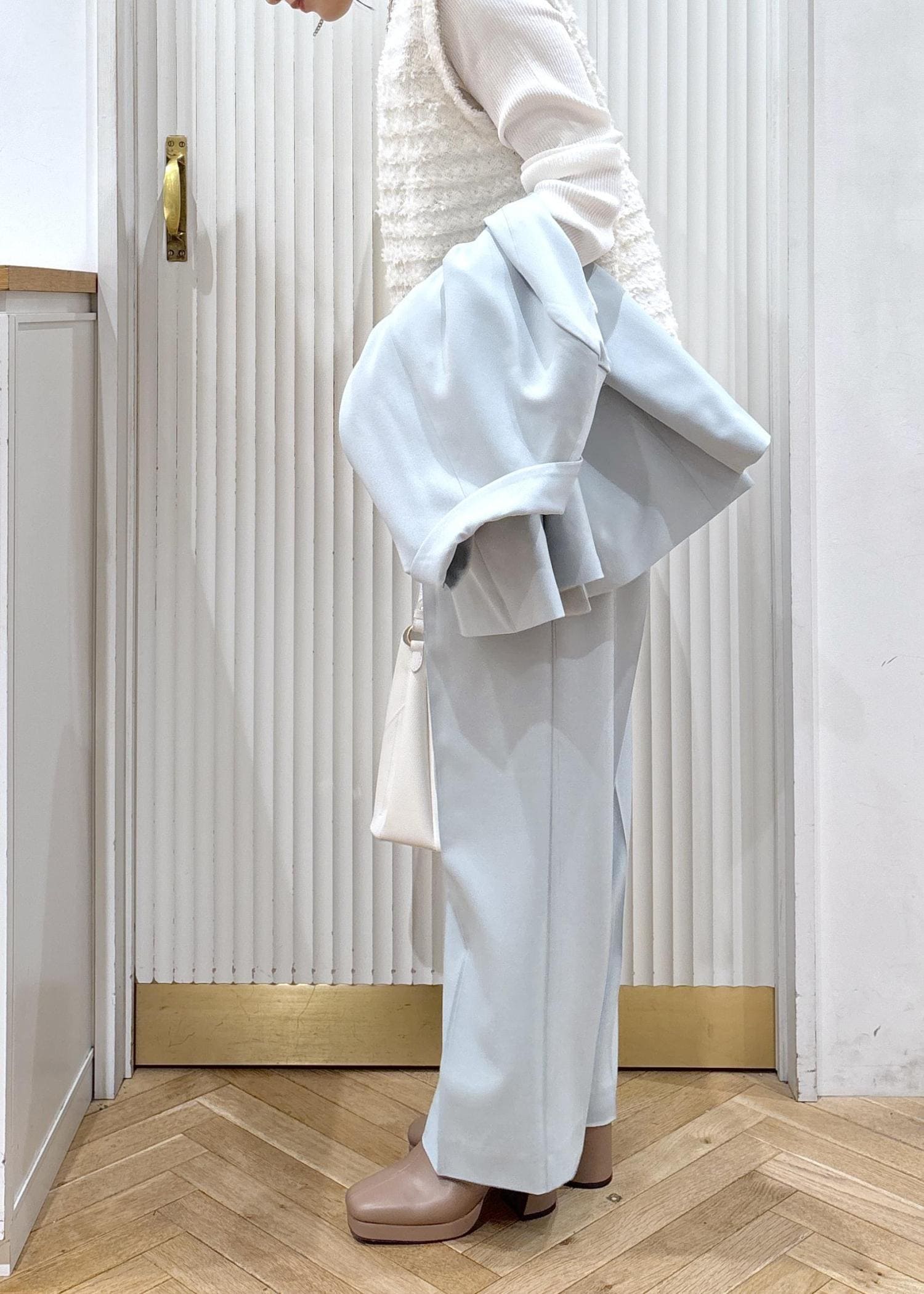 ゆるっとはきたい方や高身長の方はワンサイズアップして頂いてもウエストはアジャスト付きなので安心!ラインは程よい太さがありカジュアルにも綺麗めにも合わせられます。セットアップで着用出来るビスチェドッキングシャツやジャケットでのコーディネートがお勧め♡ -