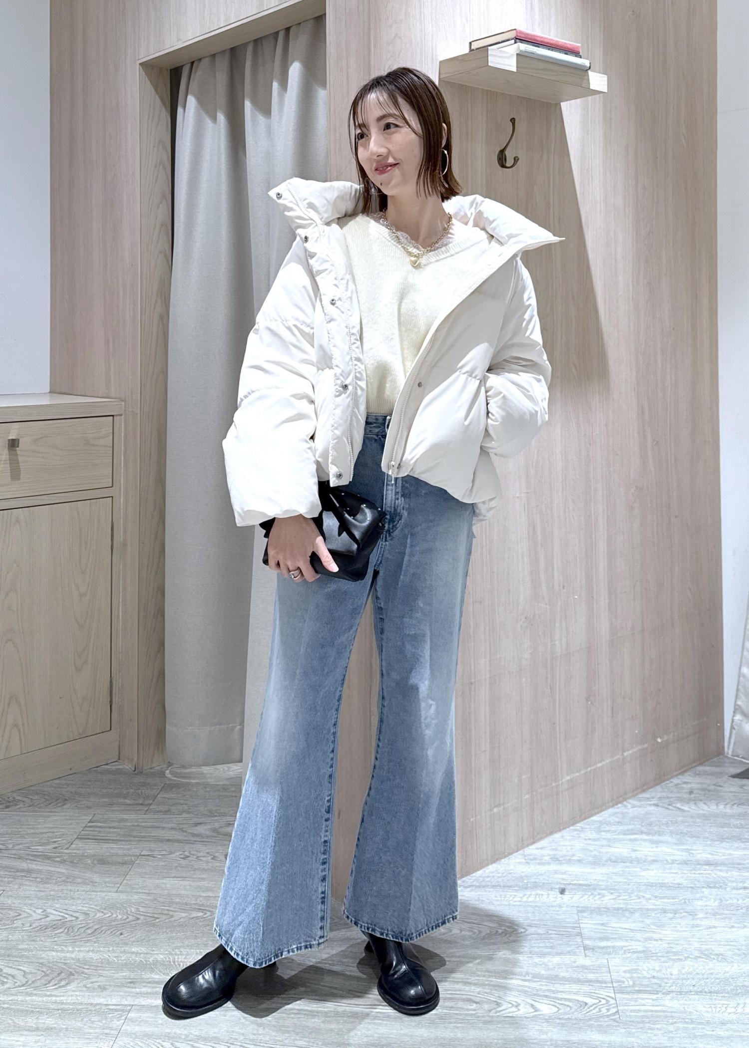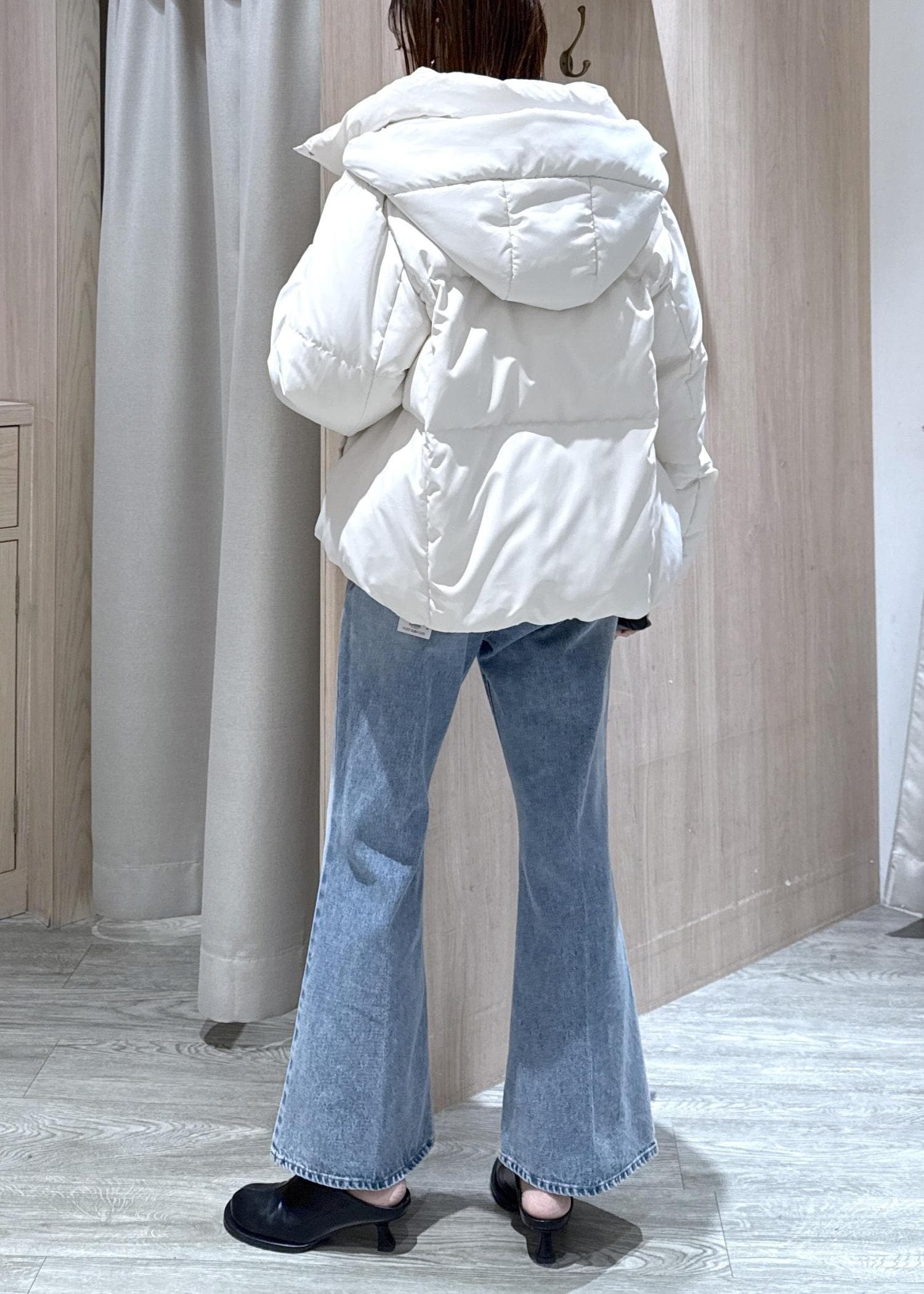 まだ寒い時期には白ダウンが春っぽく着られて重宝します♪