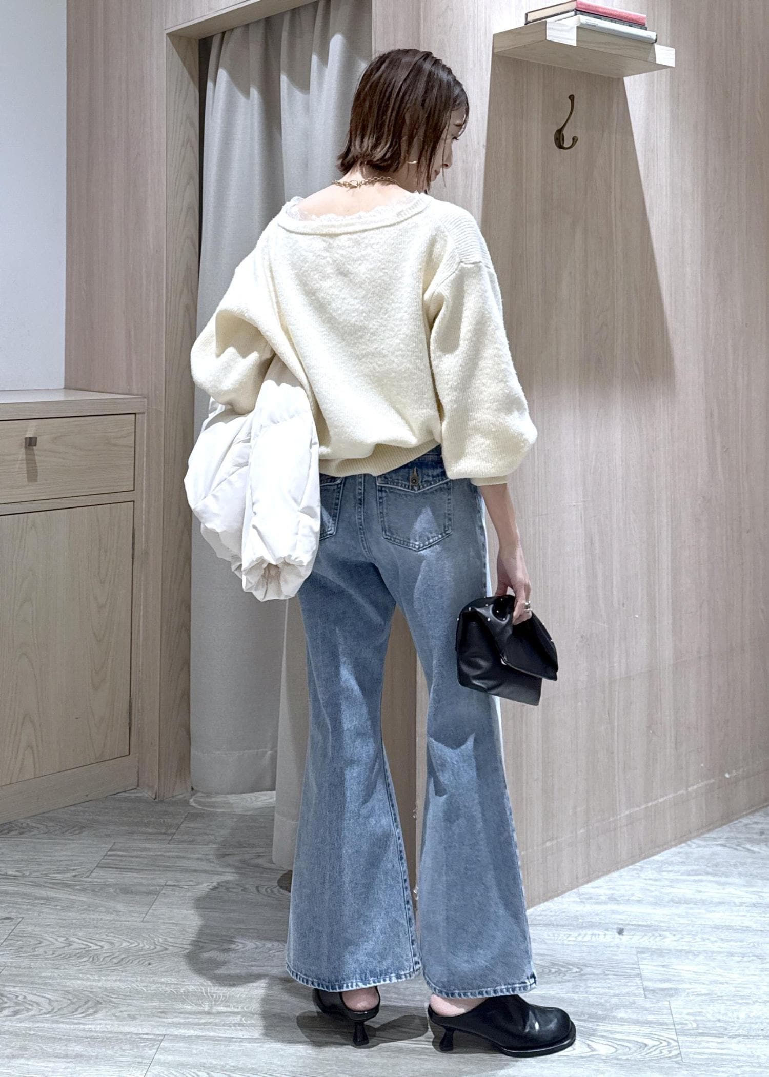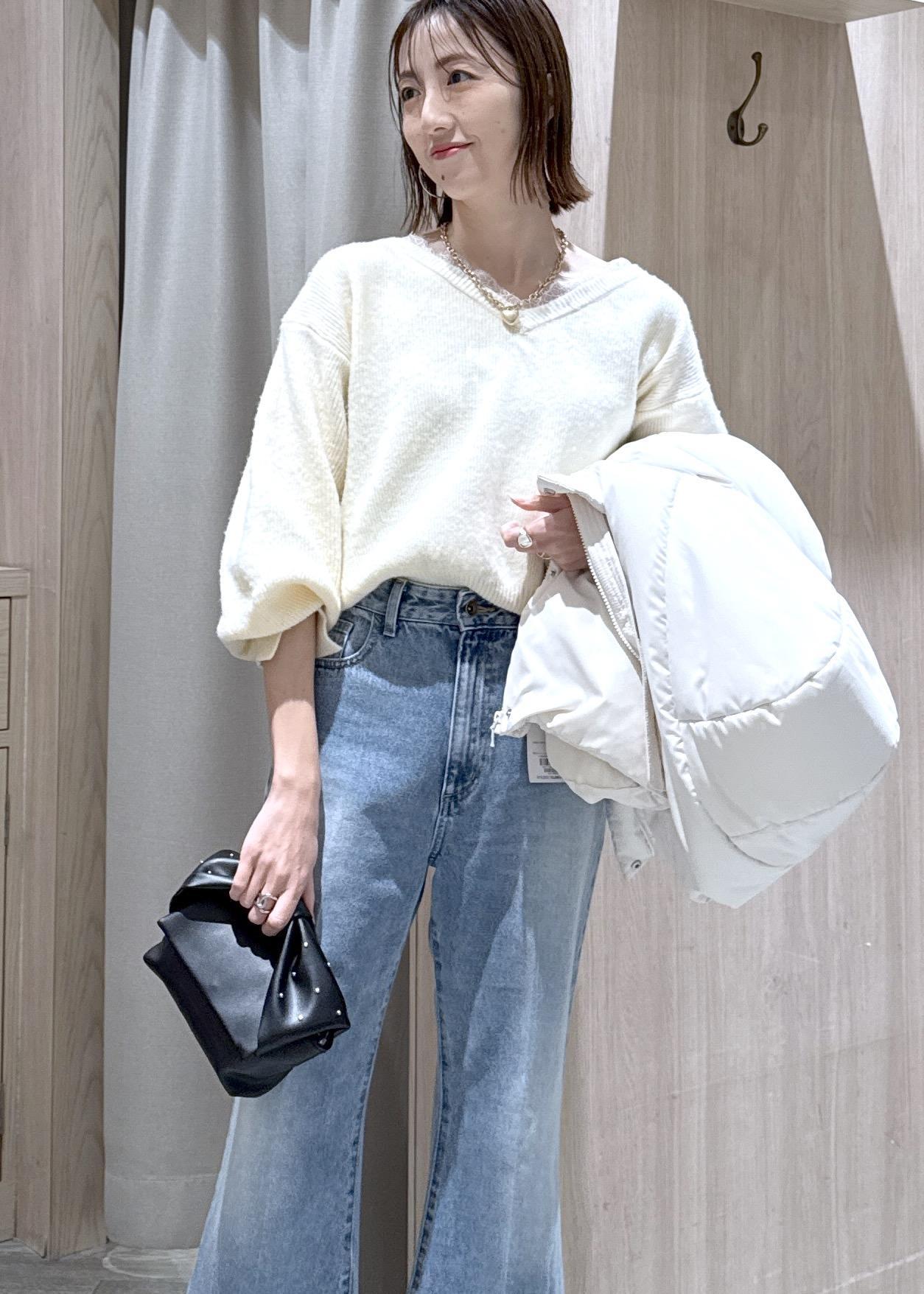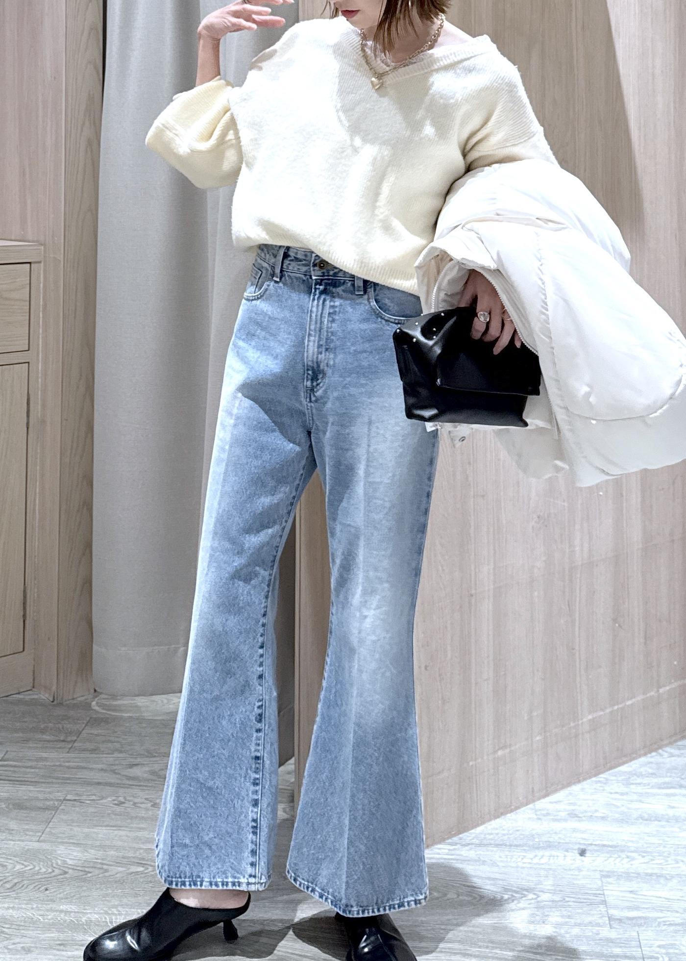 白ニット×デニムで春まで着られるデニムコーデにしました!