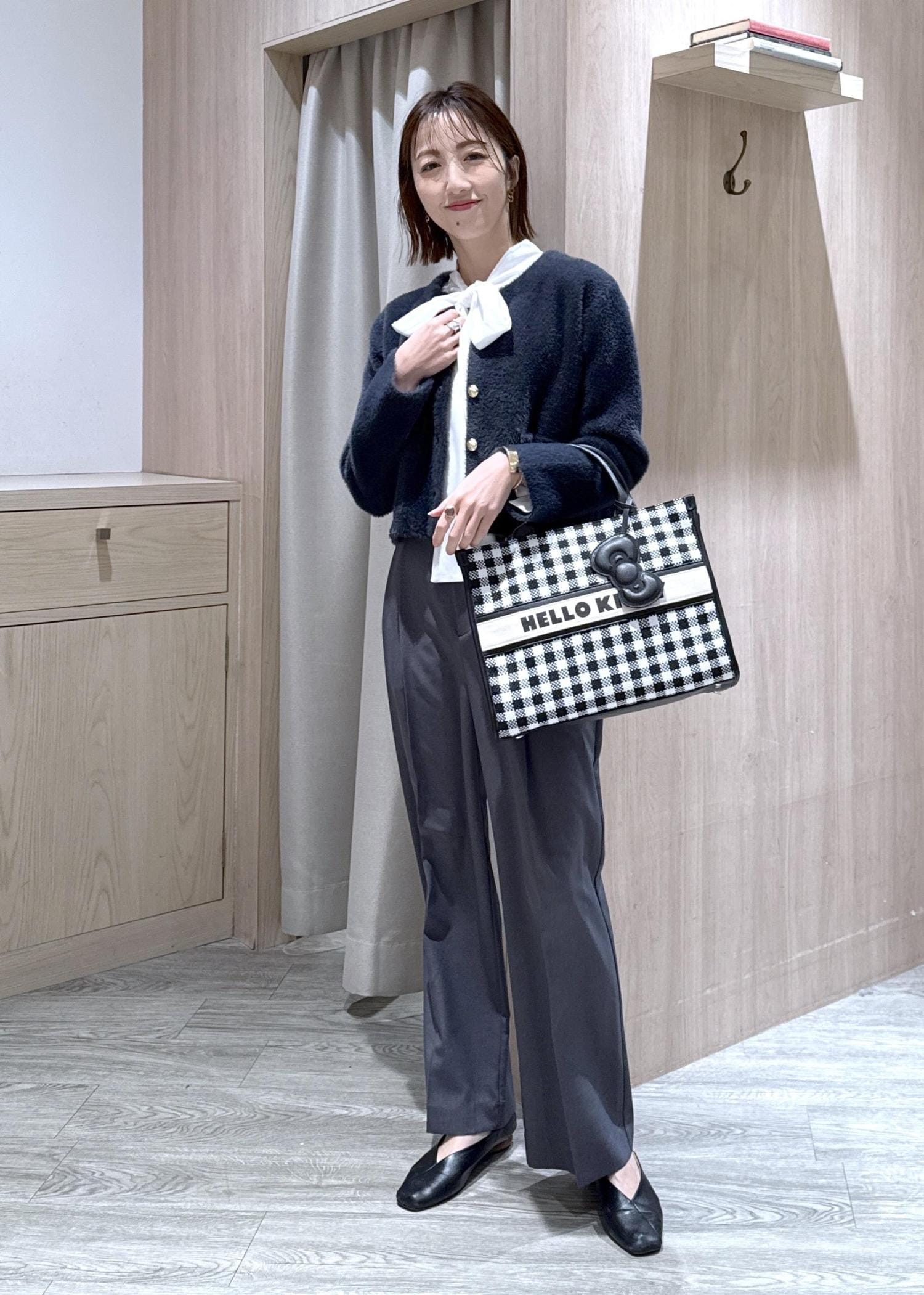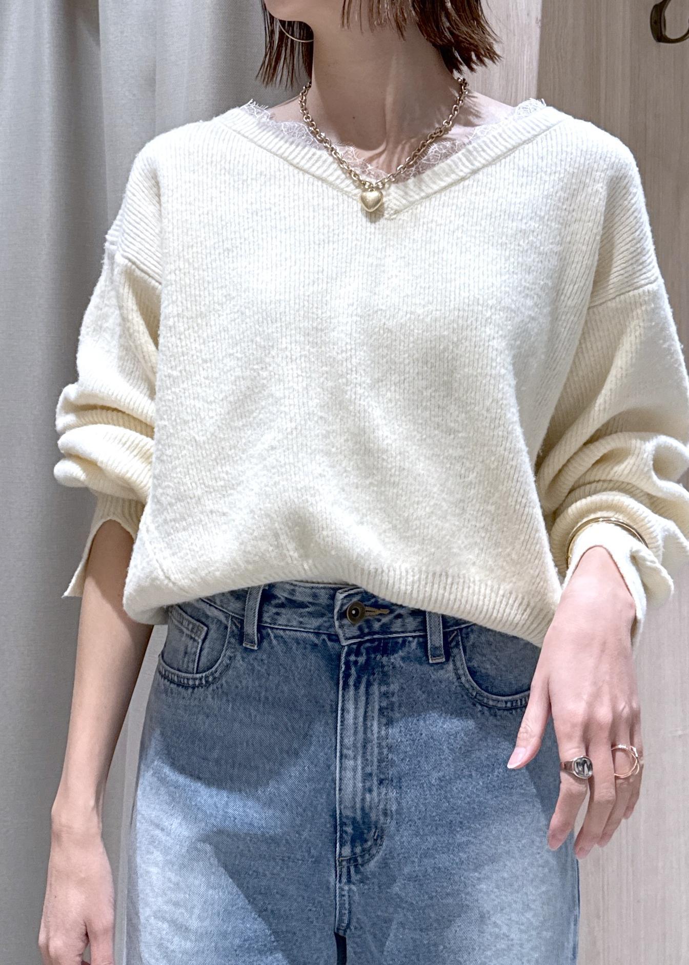 大きめのVネックが女性らしく柔らかい印象に見せてくれます。 -