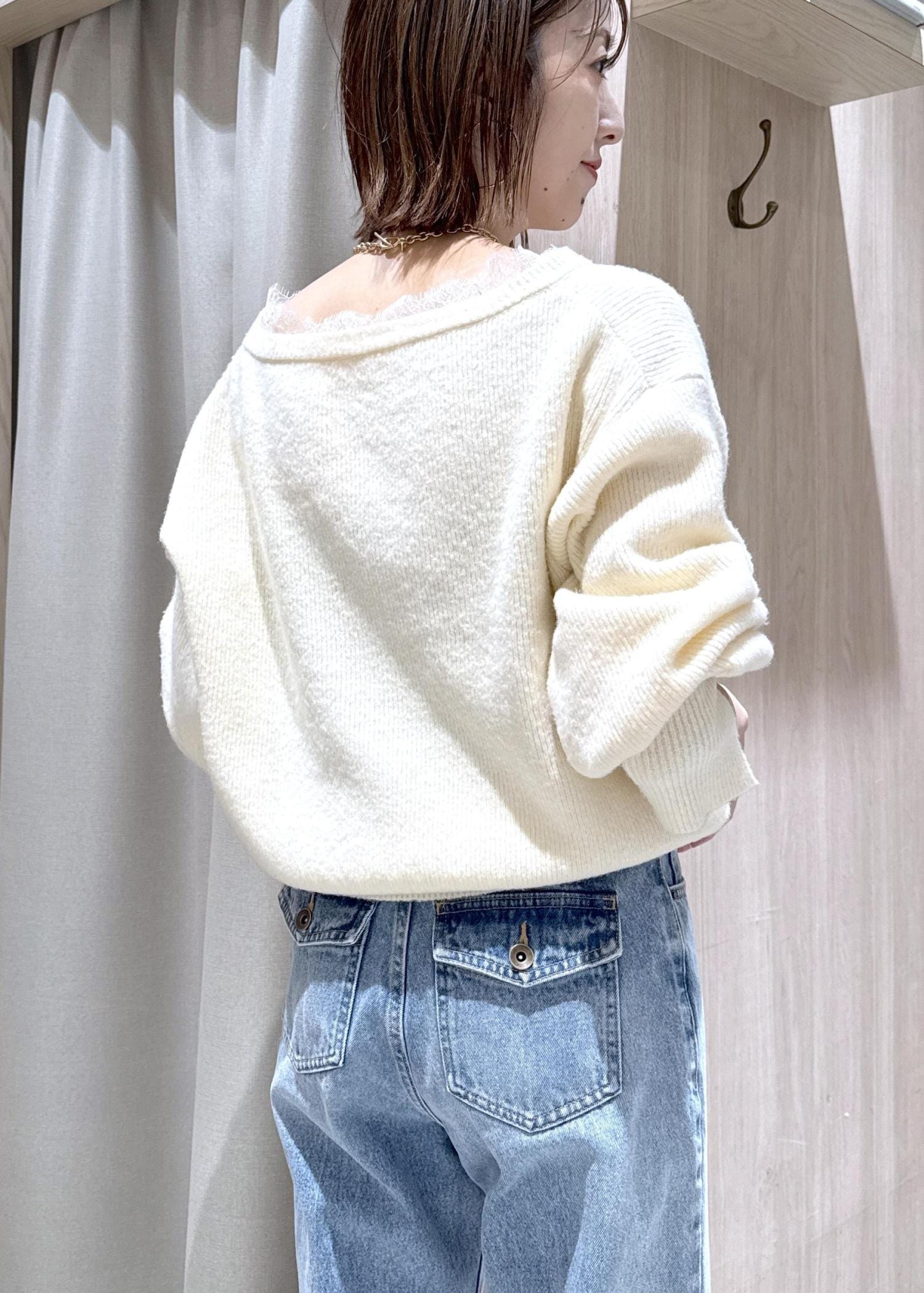 2BUY10%OFFVISVネックレースニットプルオーバーキナリ / F¥4,150レビュー身長166センチでお尻掛かる長さでした。