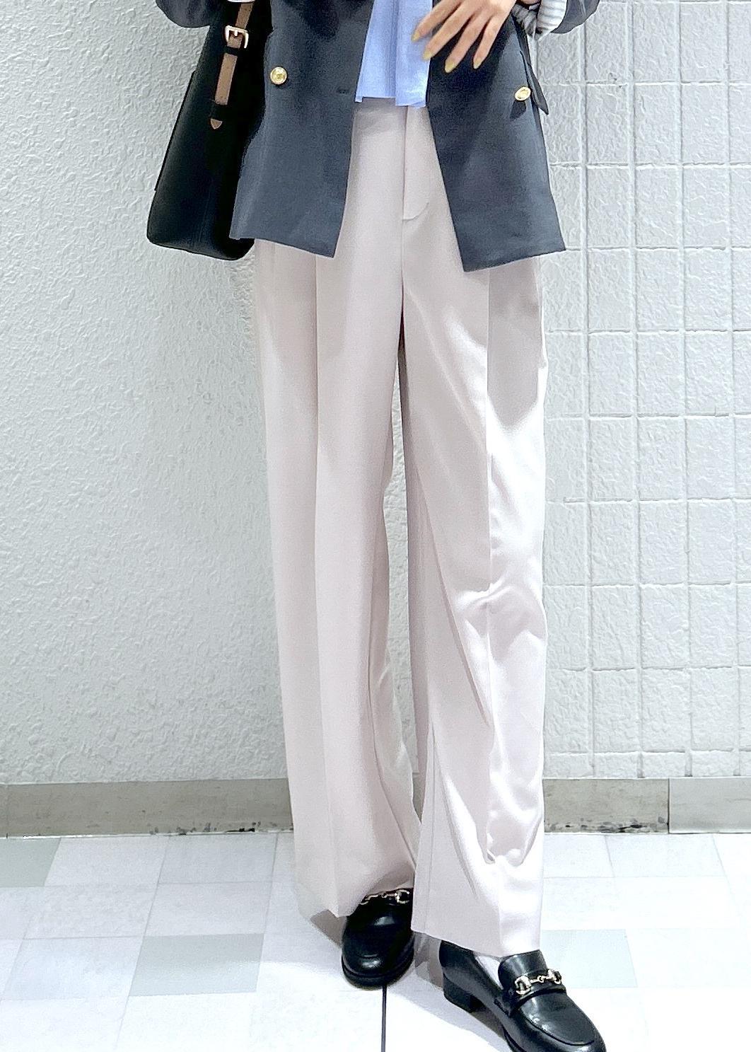 ストレートワイドパンツなのでまっすぐストンと落ちるシルエットでシワになりにくい素材なのでお手入れの面も楽ちんです! -