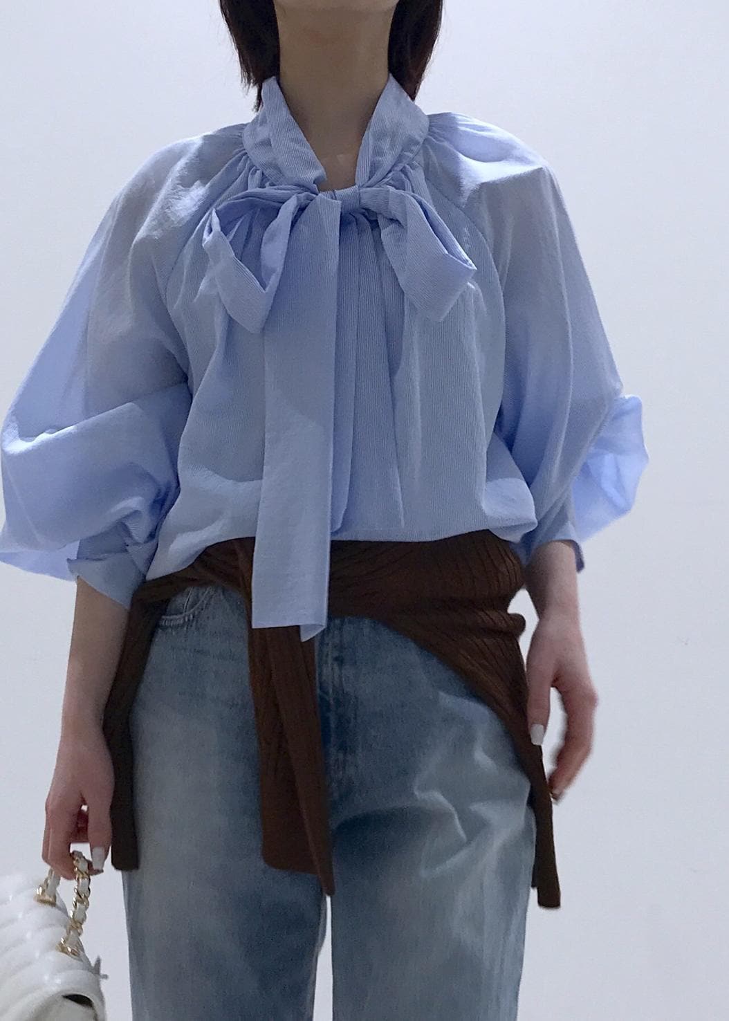 VIS前後2WAYボリュームボウタイブラウス/イージーケアサックス / F¥5,929レビュー150cmでお尻が半分隠れる丈でした。