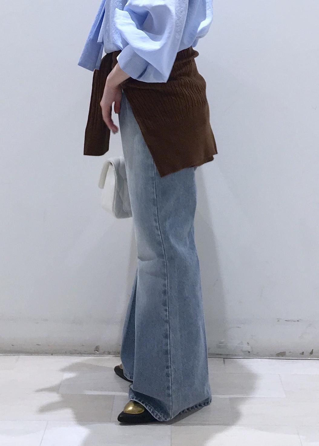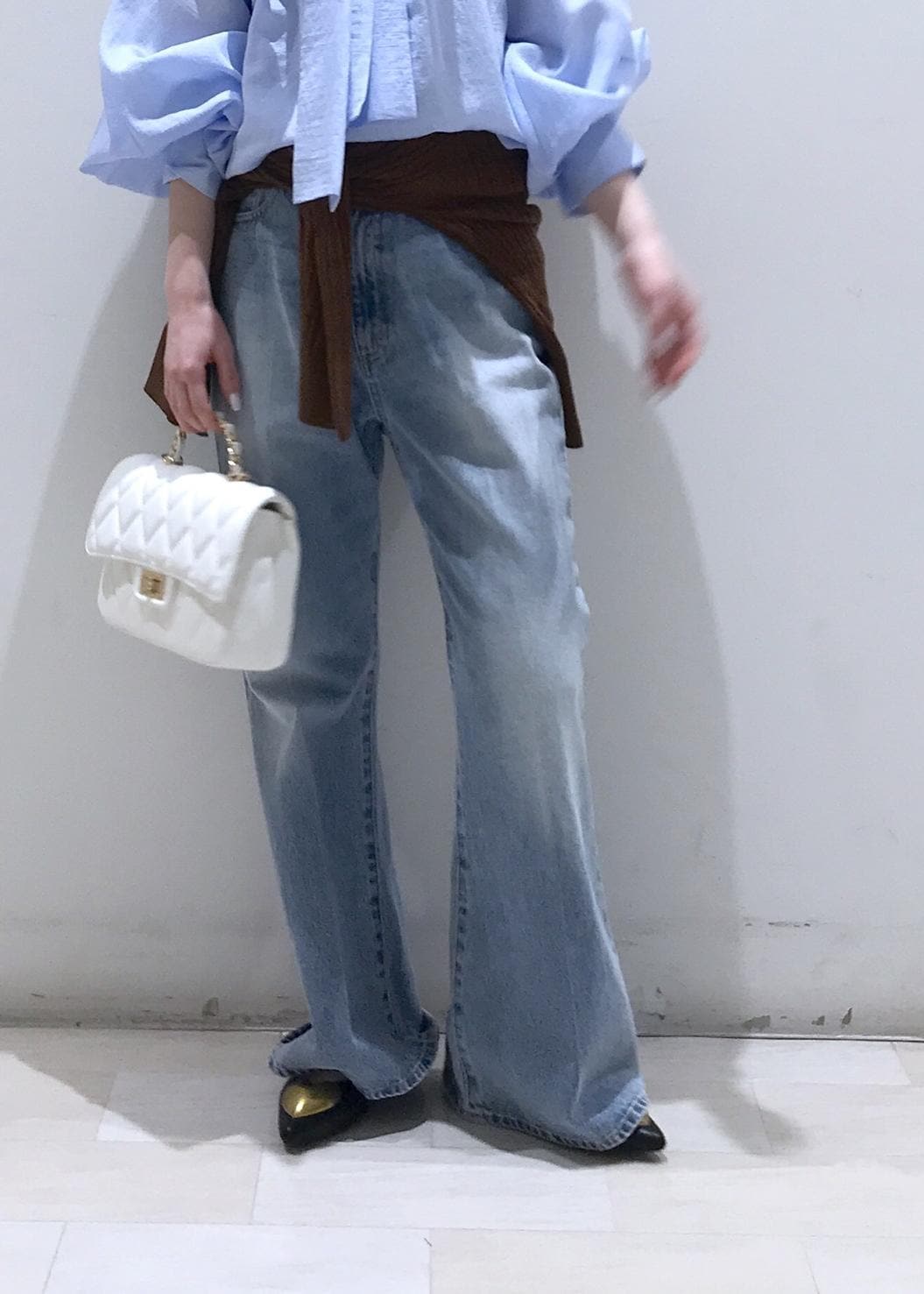 VISフレアシルエットデニムパンツサックス / S¥8,899レビュー150cmでウエストを上げて履くとギリギリ床につかない丈でした。