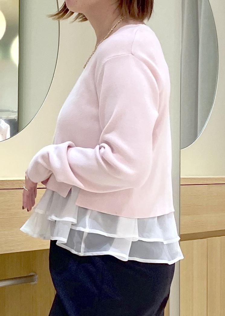 NEW!VIS【美得】ペプラムオーガンジードッキングニットプルオーバーピンク / F¥5,929レビュー人気のペプラムオーガンジーニットに