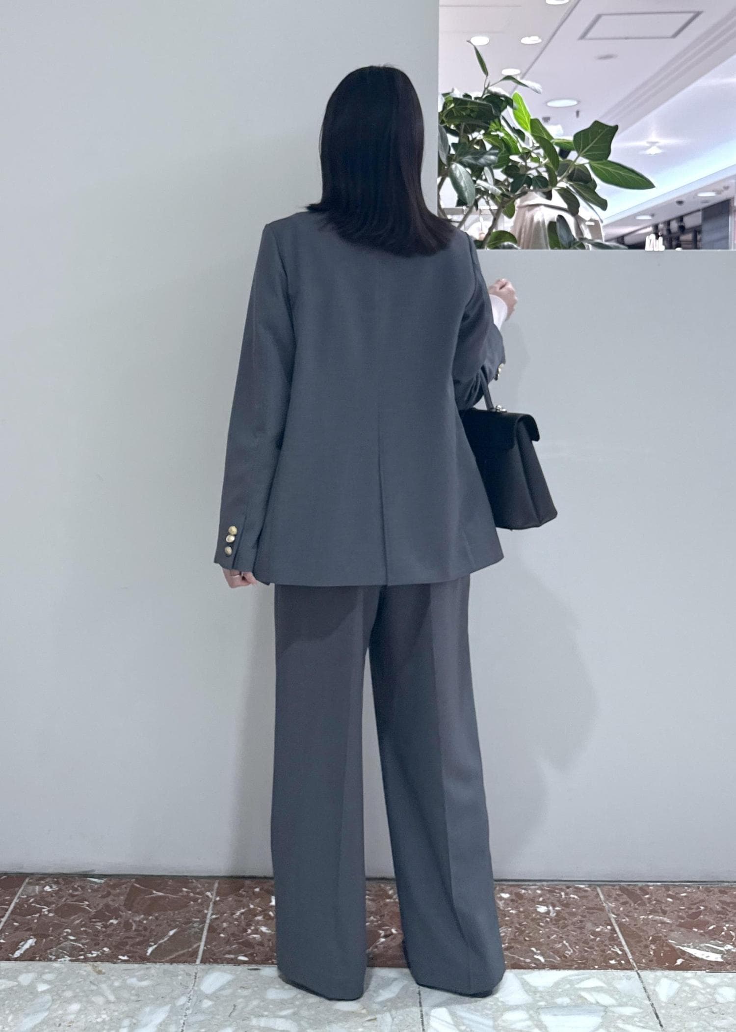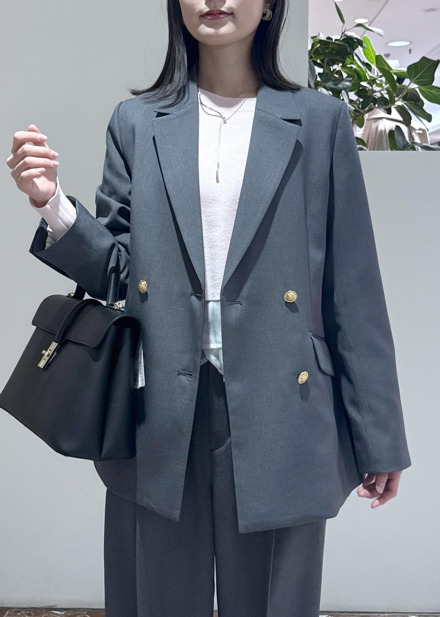 VIS【美easy】コンフォート金ボタンジャケット/イージーケア・UVケア・セットアップ対応グレー / M¥8,899レビュー164cm、Mサイズ着用でヒップが隠れるくらいのゆとりある丈感です。