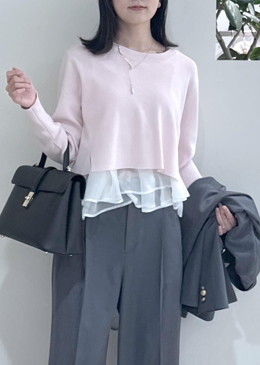 NEW!VIS【美得】ペプラムオーガンジードッキングニットプルオーバーピンク / F¥5,929レビュー164cmで腰にかかるくらいの着丈です。