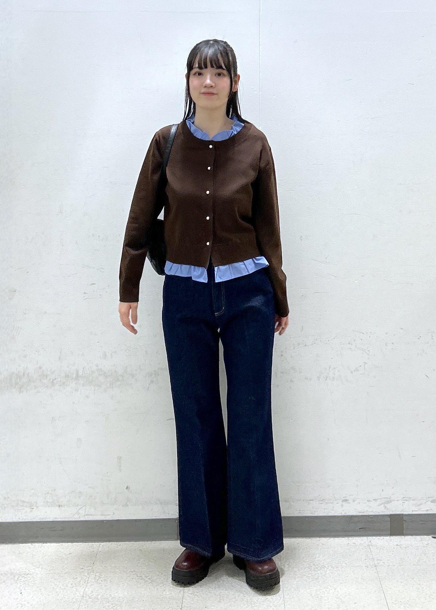 襟と裾から見えるフリルが控えめなので大人女子さんにもおすすめです。尻の上くらいの短め丈感なのでボトムスが着映えします。パンツでもスカートでもなんでも合わせやすいので着回し力◎◎ -
