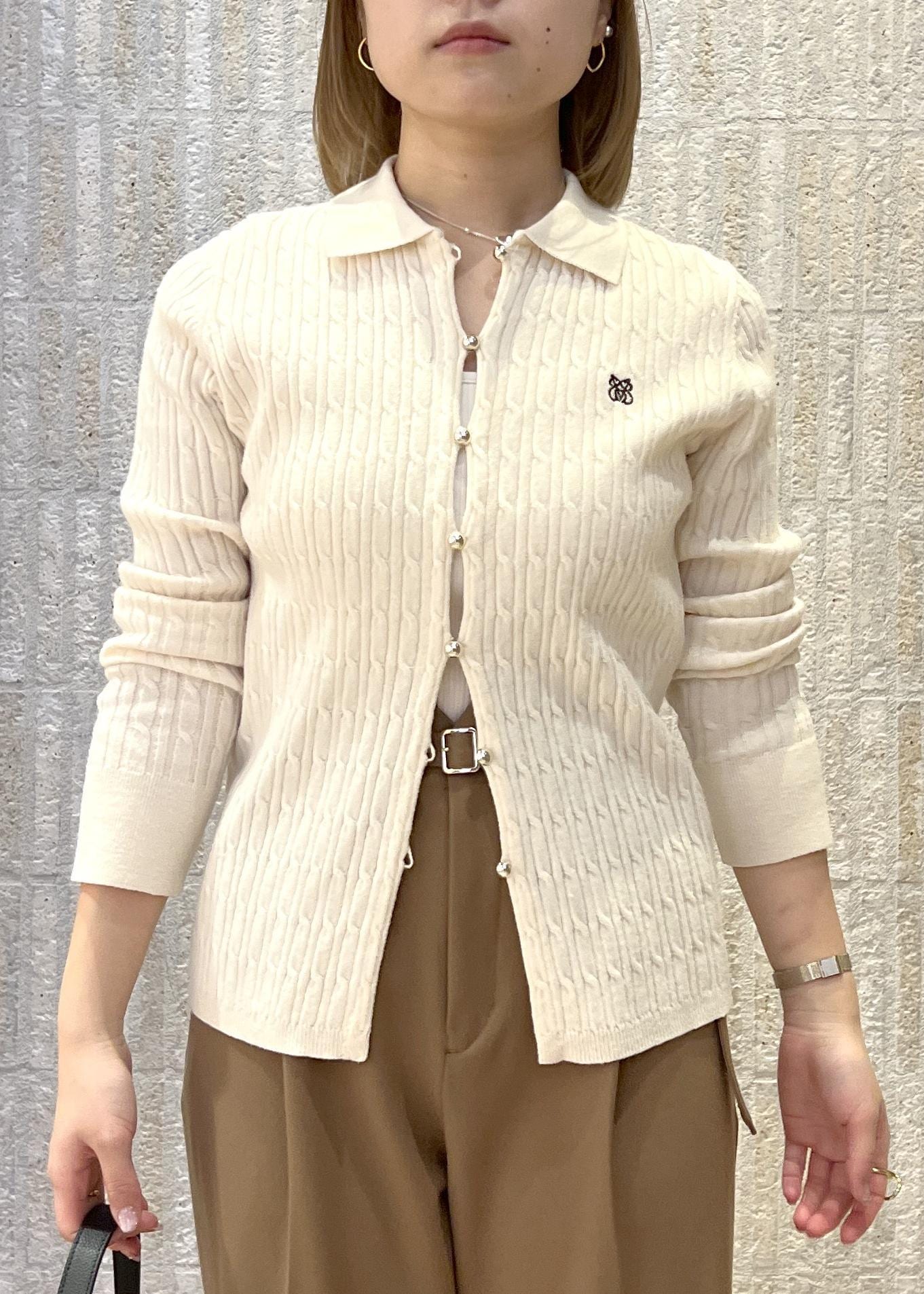 2BUY10%OFFVISポロ衿ケーブルカーディガンキナリ / F¥4,743レビュー一枚でサラッと着用でき、抜け感も出しやすいカーディガンです。