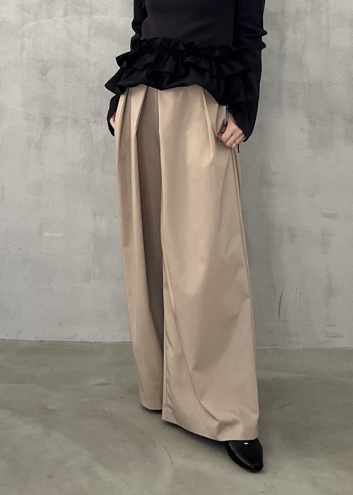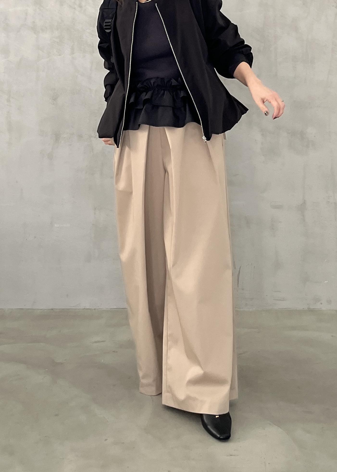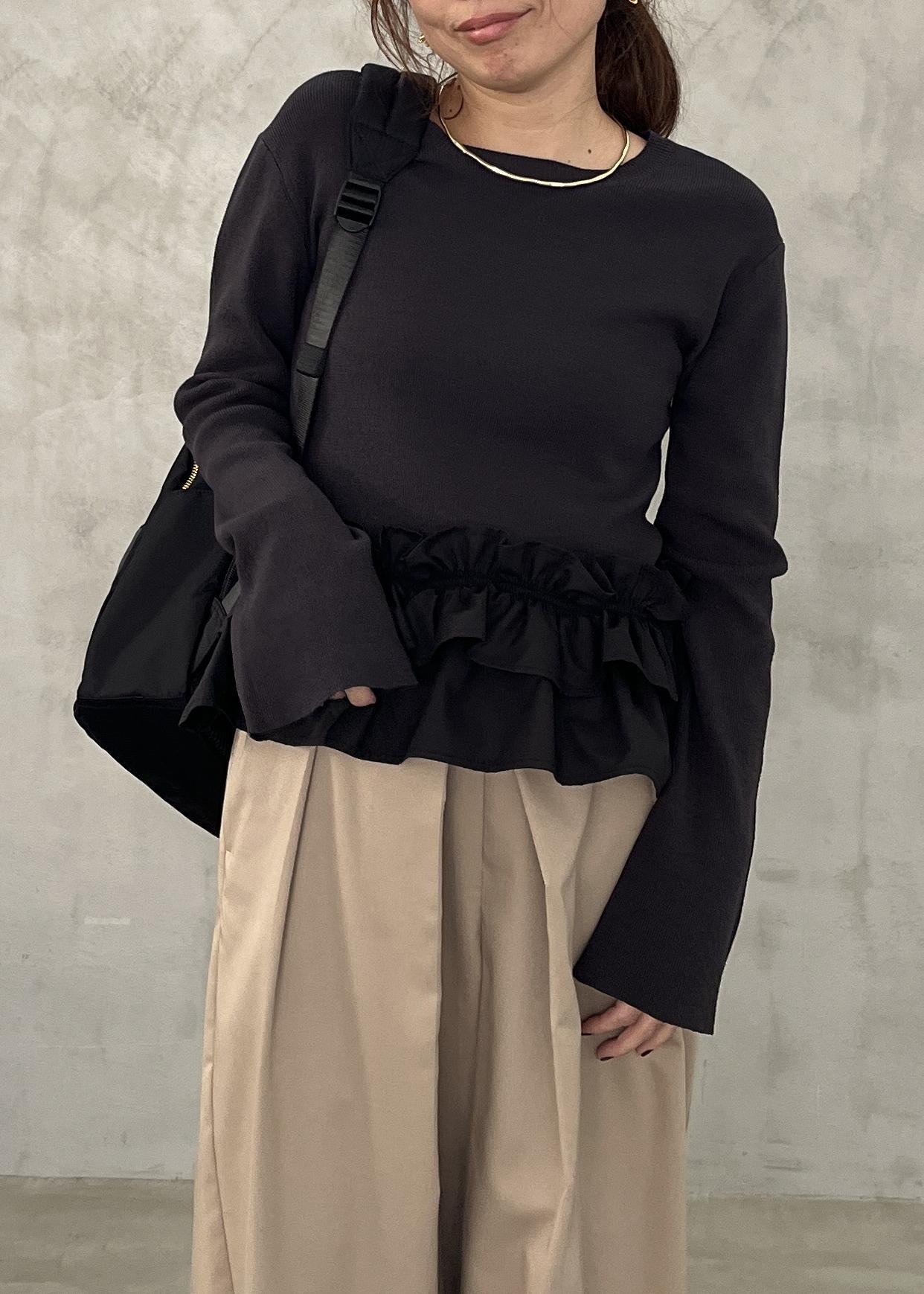 フリルの甘さは、+ワイドパンツで一気に大人見え。