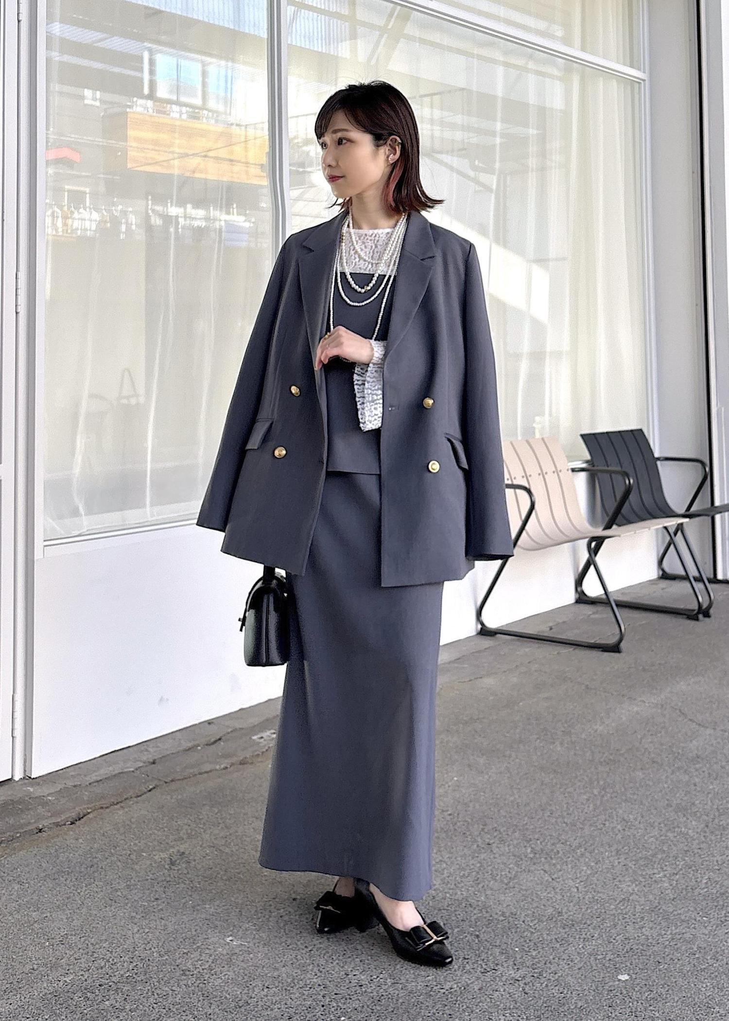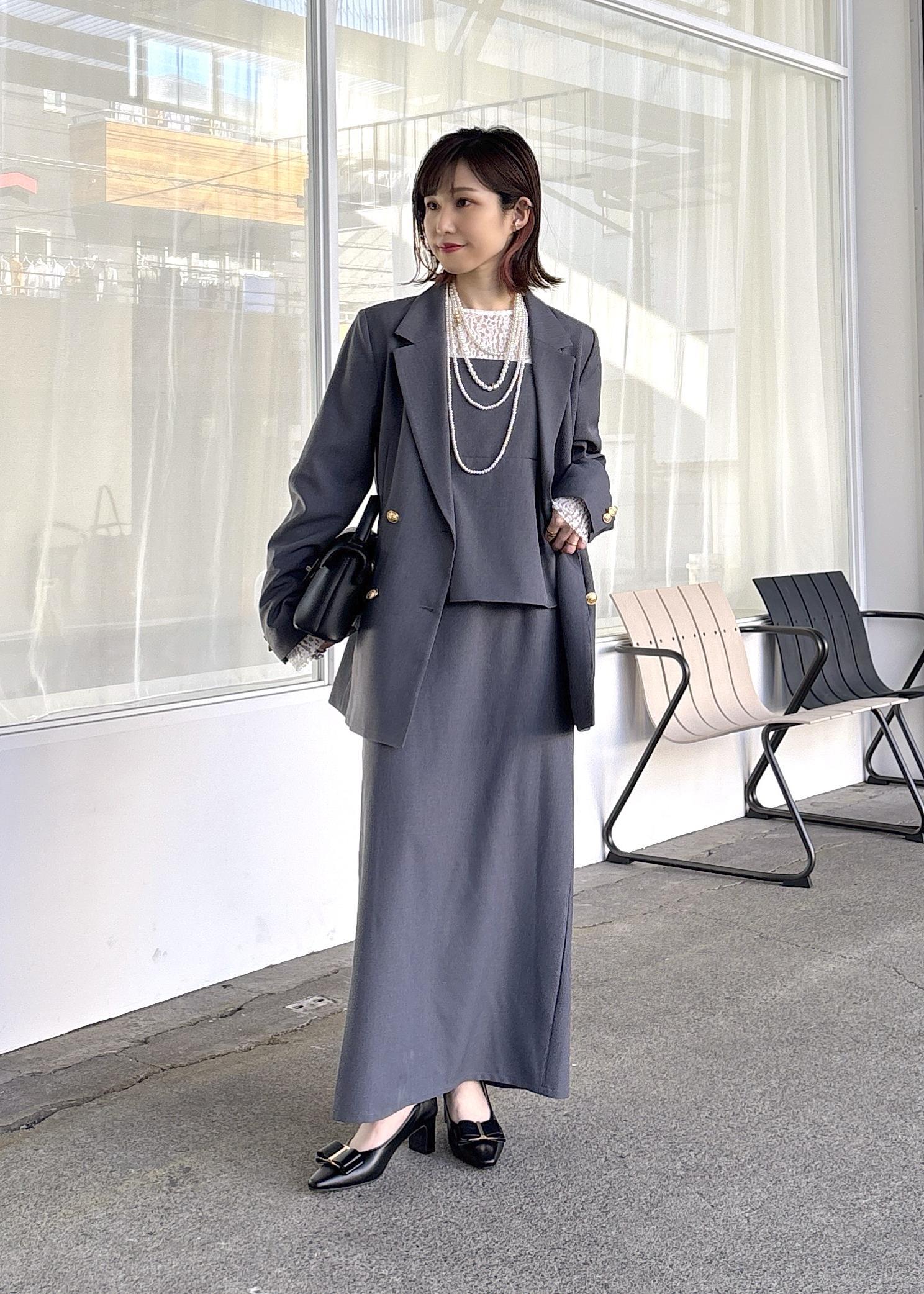 大人気美easyシリーズのセットアップ、グレーは卒業式、入学式ともに使える万能カラー♪オフィススタイルとしても◎ペプラムデザインの大人可愛いワンピースにレーストップス、ジャケットにパールのネックレスで華やかさをプラス。きちんと感+女性らしい好印象見えスタイルにまとめました。これからの新生活、大切なイベントに寄り添ってくれるVISの美easyシリーズ、オススメコーデです。