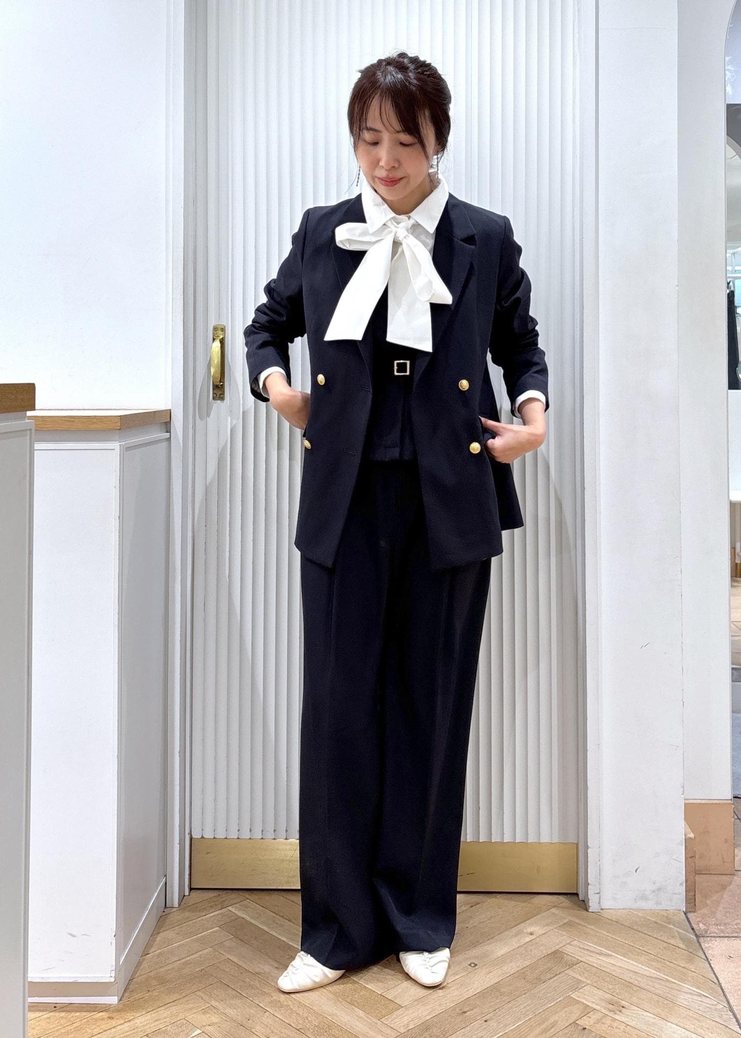 セットアップは新生活やセレモニーの場面でも活躍しますし、ビスのデザインは日常使いもしやすいのがポイントですよ♡