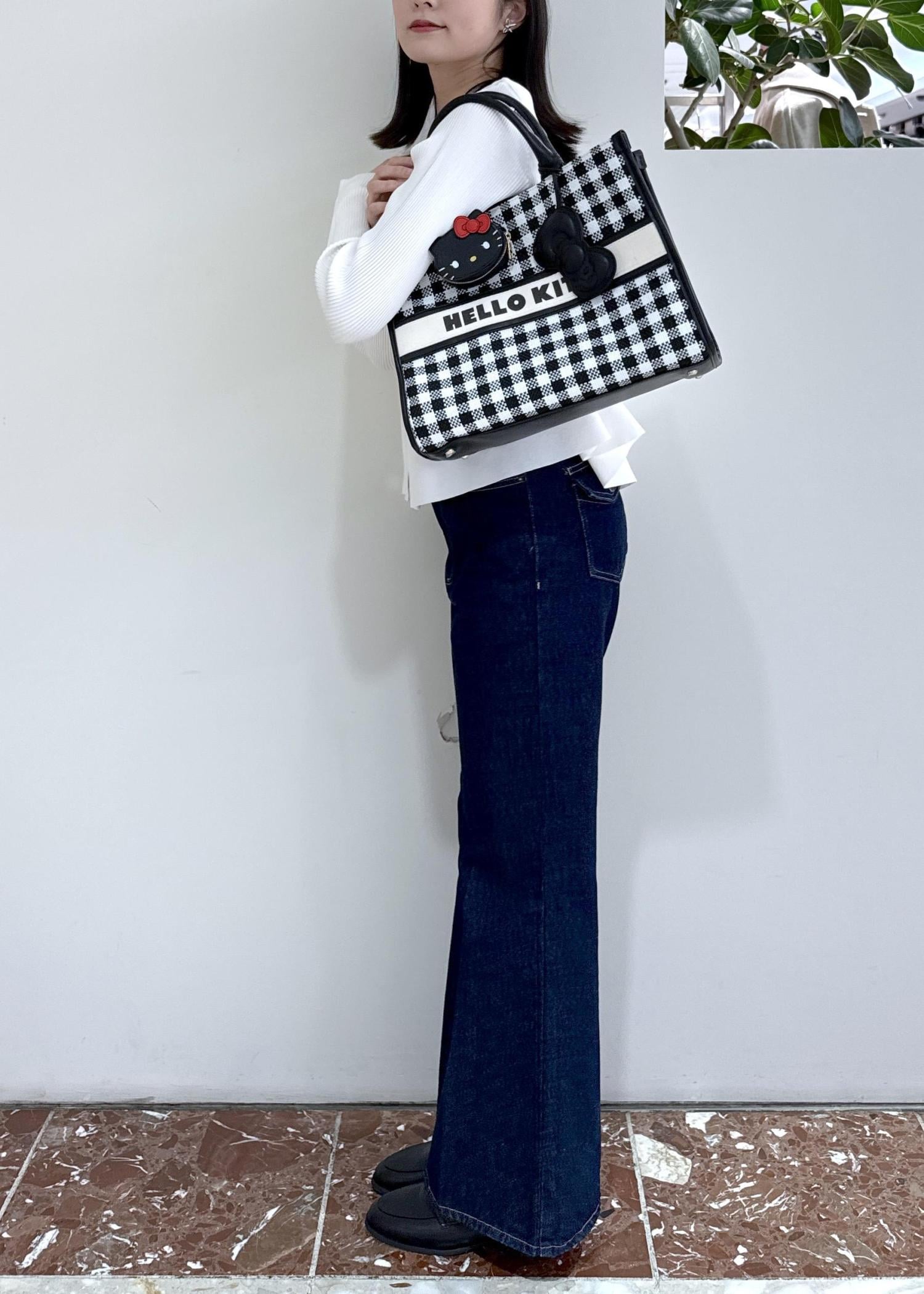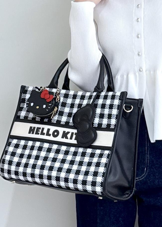 VIS【HELLO KITTY×VIS】リボンチャームトートバッグブラック系 / F¥7,909レビュー型崩れしないスクエア型で、A4サイズやパソコンが入る大容量!大きさの割に軽いです。