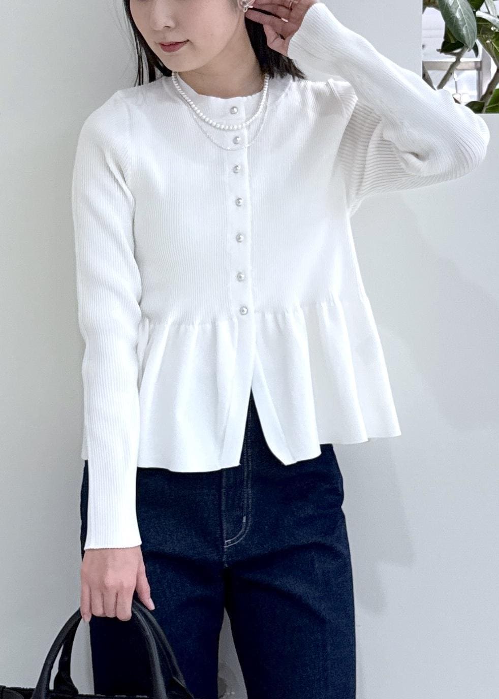 VIS【美得】ペプラムニットカーディガン/イージーケアホワイト / F¥5,929レビュー164cmで腰にかかる丈感です。