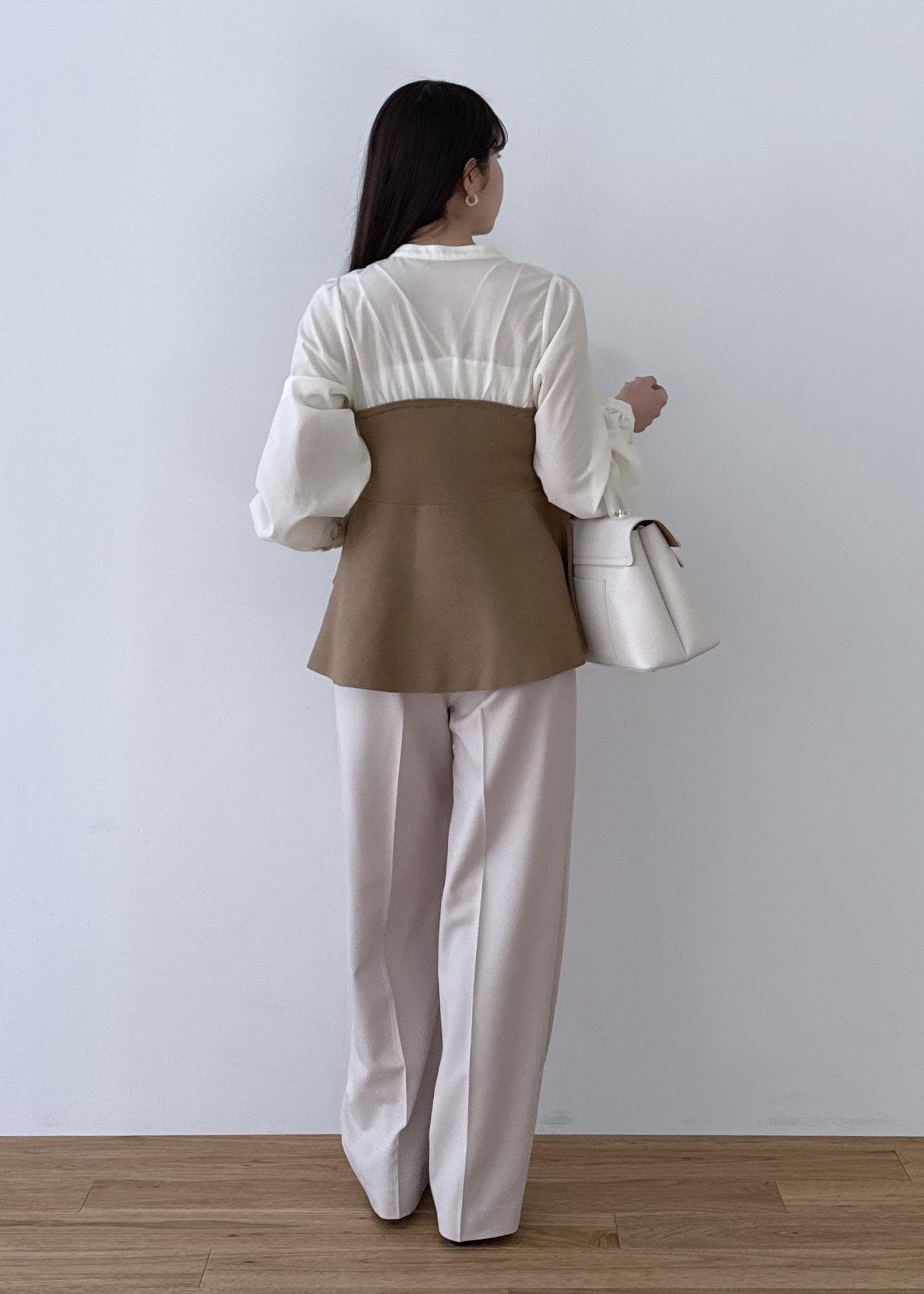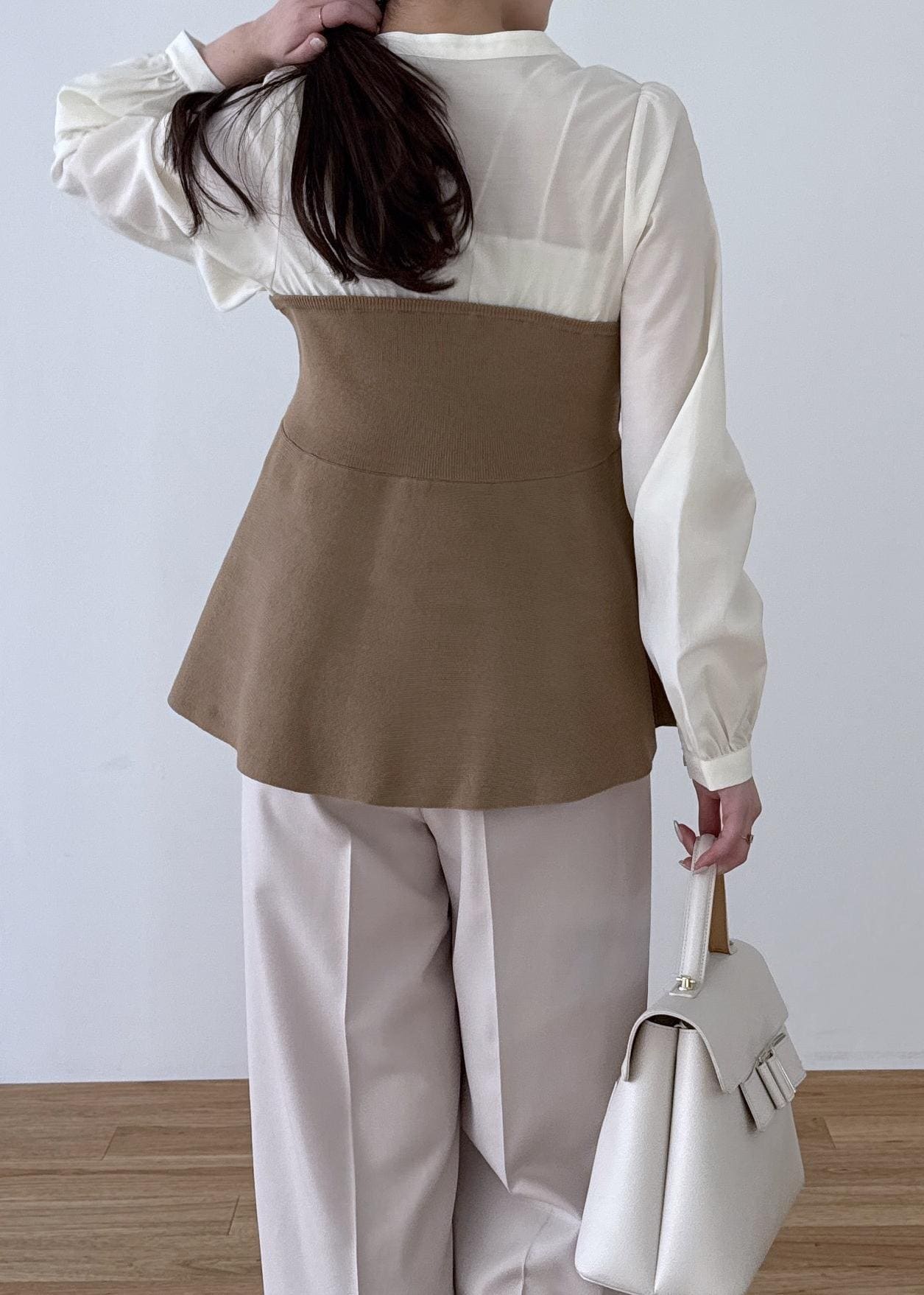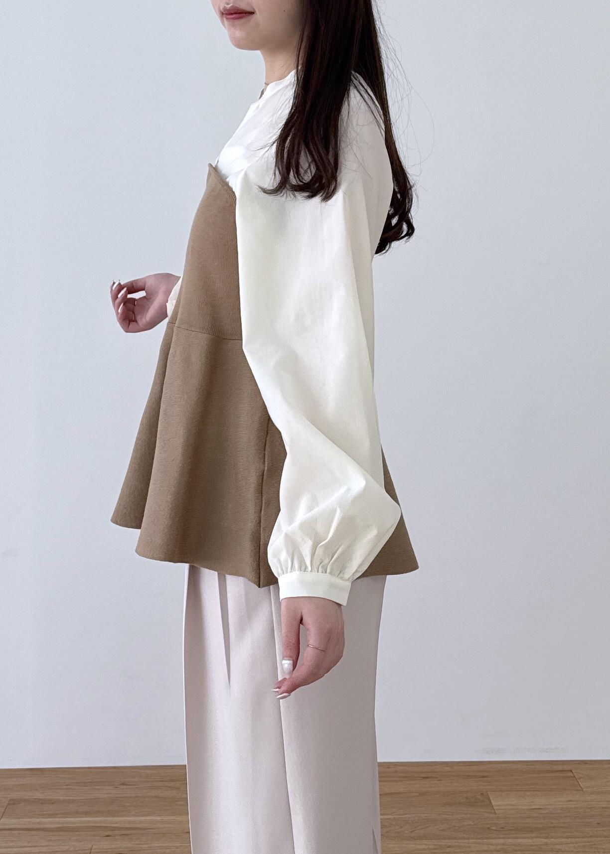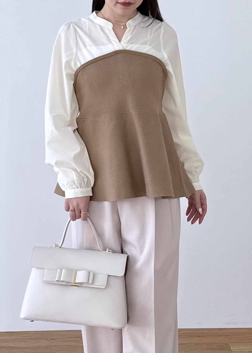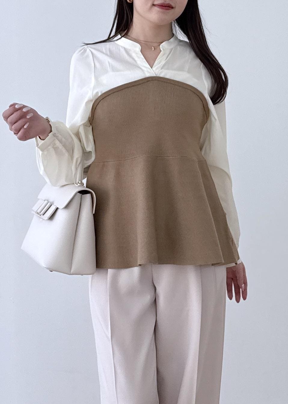 NEW! 予約VISペプラムニットドッキングブラウスベージュ / F¥6,589レビュービスチェ風デザインなので1枚でおしゃれ見えします!